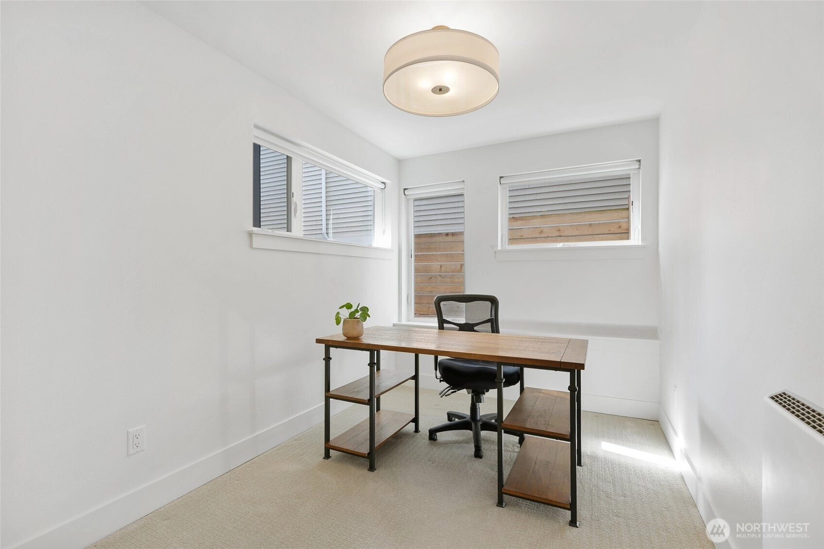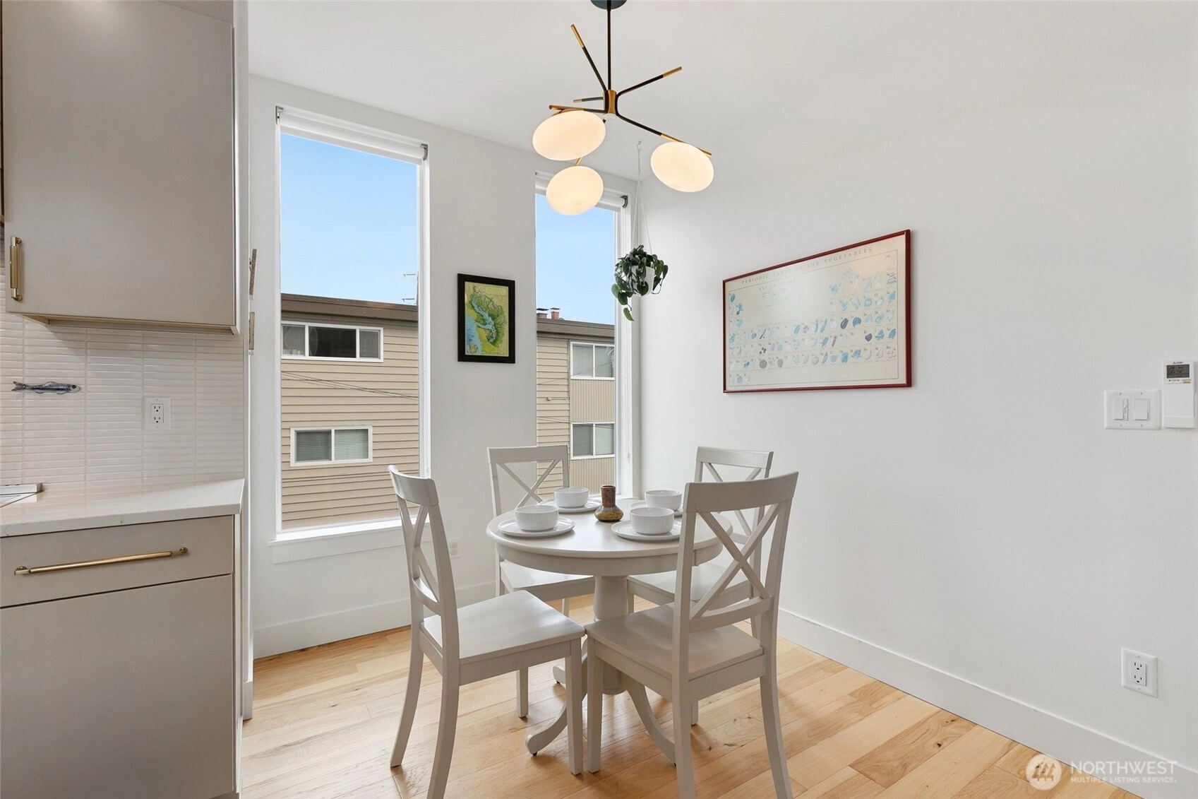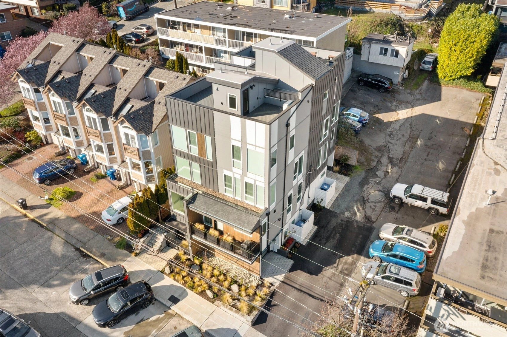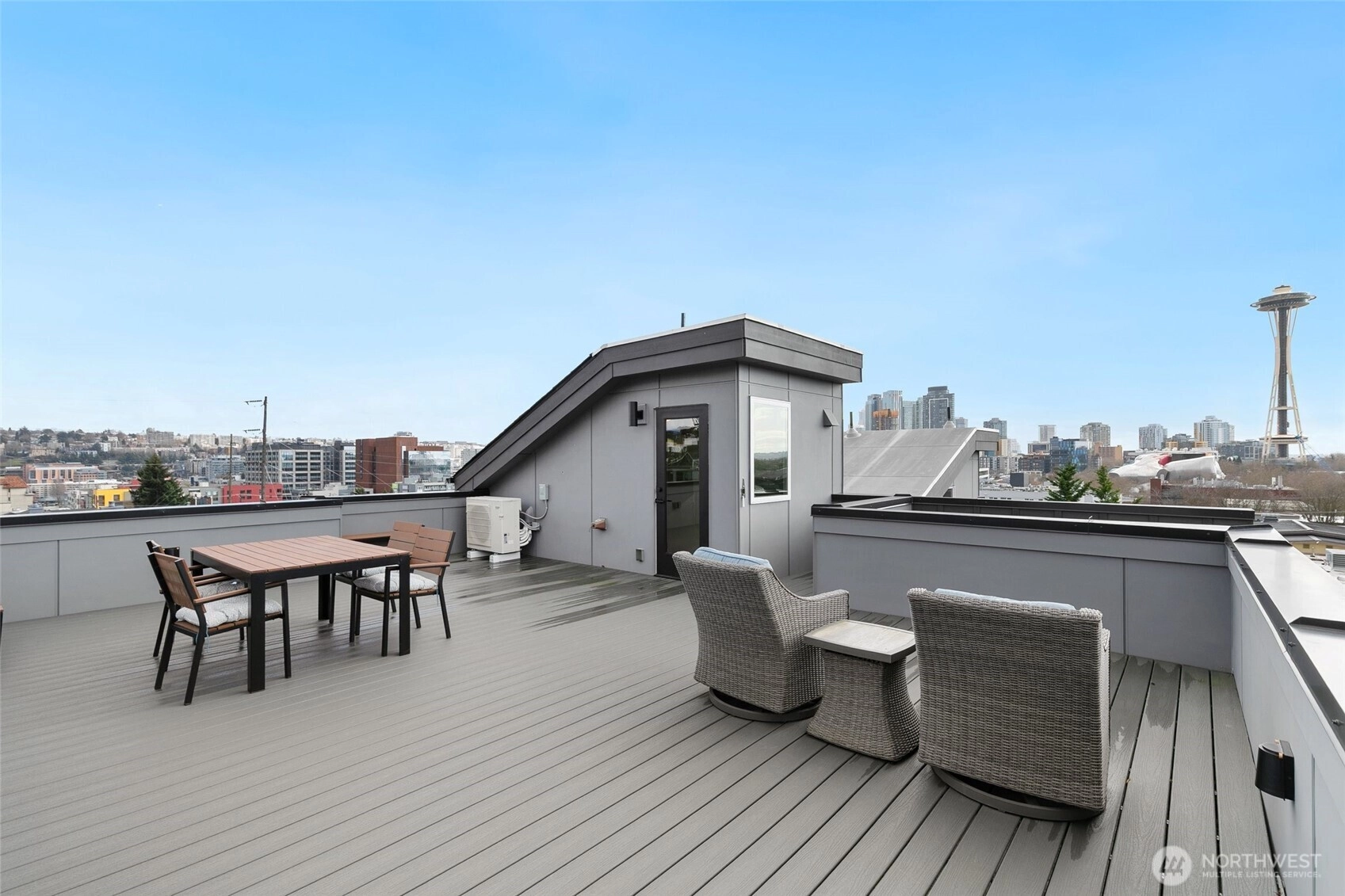 Discover this bright, stylish, and spacious modern townhome, offering more space than a luxury condo without the burden of HOA dues. Perfectly situated in the heart of Lower Queen Anne, the home is set back from the main road, ensuring a peaceful living environment. The interior boasts boutique finishes throughout. Culinary enthusiasts will appreciate the generous kitchen, a true chef’s delight featuring quartz countertops and premium Bertazzoni appliances. Tall ceilings and expansive windows on every floor create wonderfully airy, light-filled spaces. Enjoy stunning city views from the private roof deck. A rare mezzanine level provides versatile bonus space, ideal for a home office, workout area, media room, or game space. Parking is convenient with a private garage plus an additional reserved spot in front for a second car. This prime location is just blocks from neighborhood favorites, including Met Market, Citizen, and Laredo’s Grill.