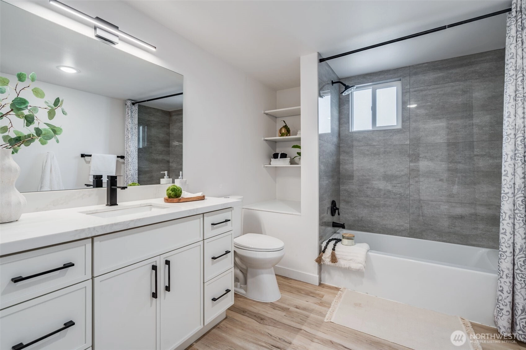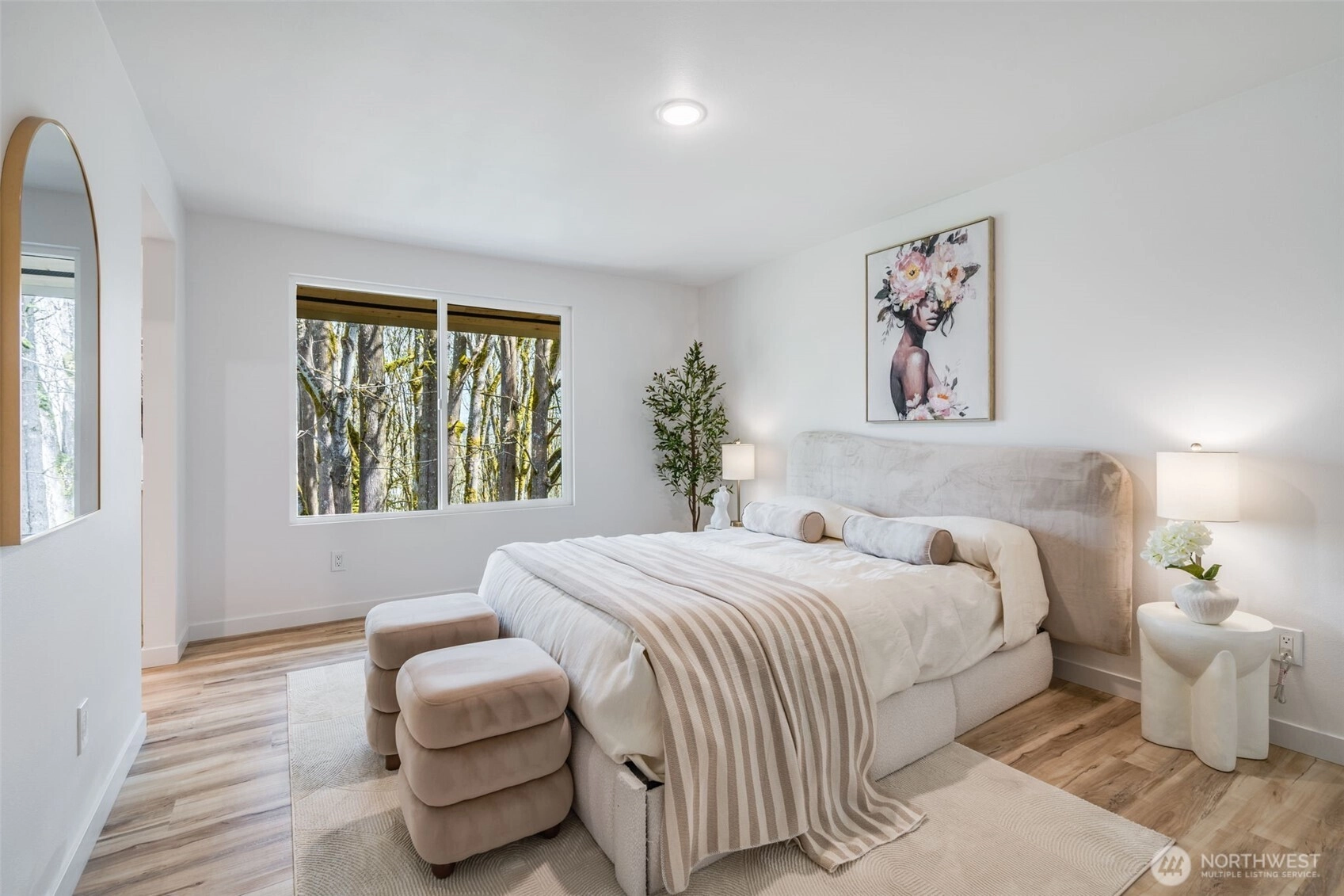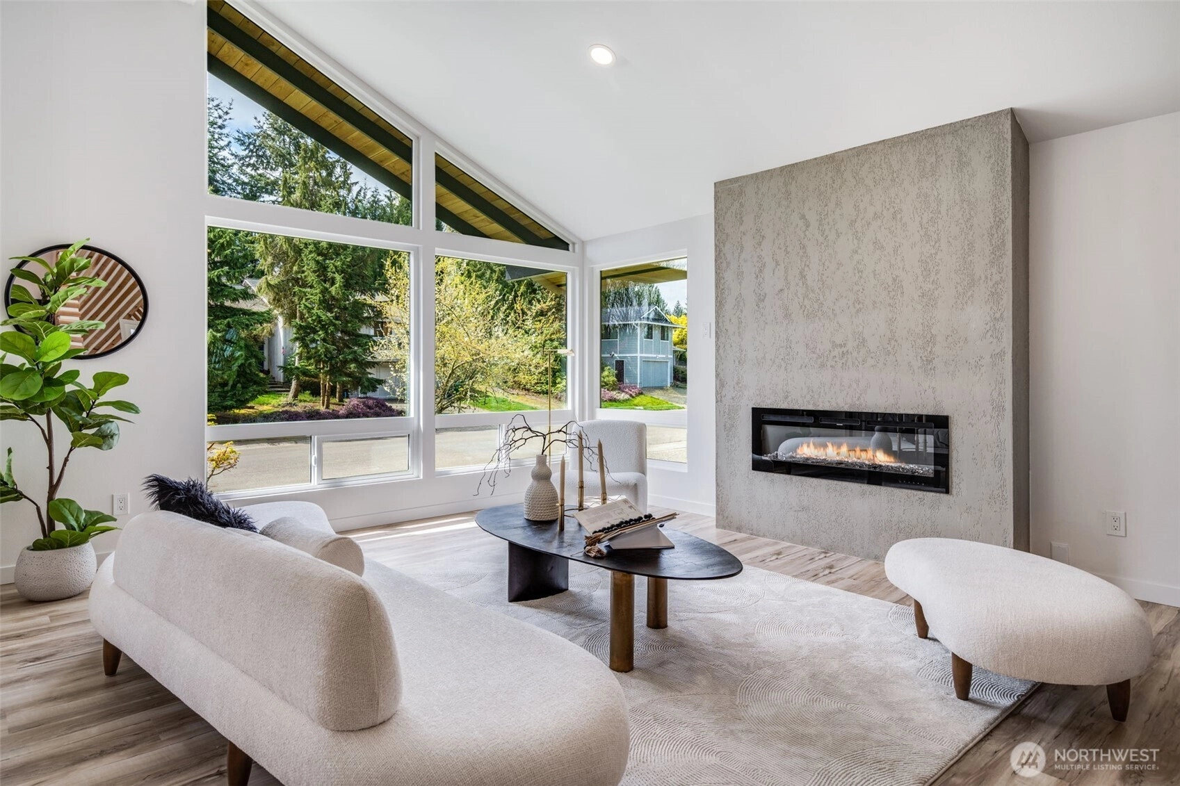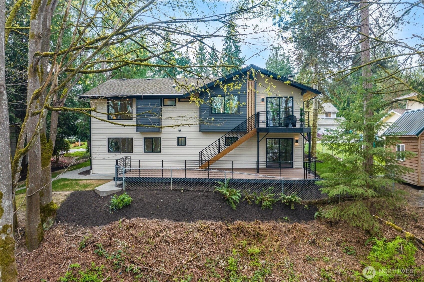 Breathtaking remodeled split-level home in one of Redmond’s most sought-after residential pockets. Quiet, tree-lined streets make this property the best of both worlds: space and privacy yet minutes from everything that makes Redmond highly desirable. This gorgeous property sits on almost 2 acres, including the expansive, wooded backyard, creating a tranquil urban oasis. Additionally, it is zoned for the Lake Washington school district, one of the top-performing districts on the Eastside. Custom, high-end touches throughout the updated home, including lighting, kitchen cabinetry, and unique accent walls. The open concept kitchen, dining, and living room are full of natural light from the expansive front windows. 3 large bedrooms on the upper level, including the primary with a primary en suite bath & large closet, and another full bathroom. Downstairs is also light and bright with an additional living room that includes easy access to the updated deck (perfect for entertaining), a 4th bedroom, a full bathroom AND a gorgeous laundry room. Don't miss the fully fenced dog run and the private fire pit. Exceptional access to recreation: minutes to Sammamish River Trail, 60 Acres Park, and Sammamish Valley Park. Prime Eastside location, as it is close to Downtown, Kirkland, and the Bellevue tech corridor, with easy access to 520 or 405. Do NOT miss this beautiful opportunity!