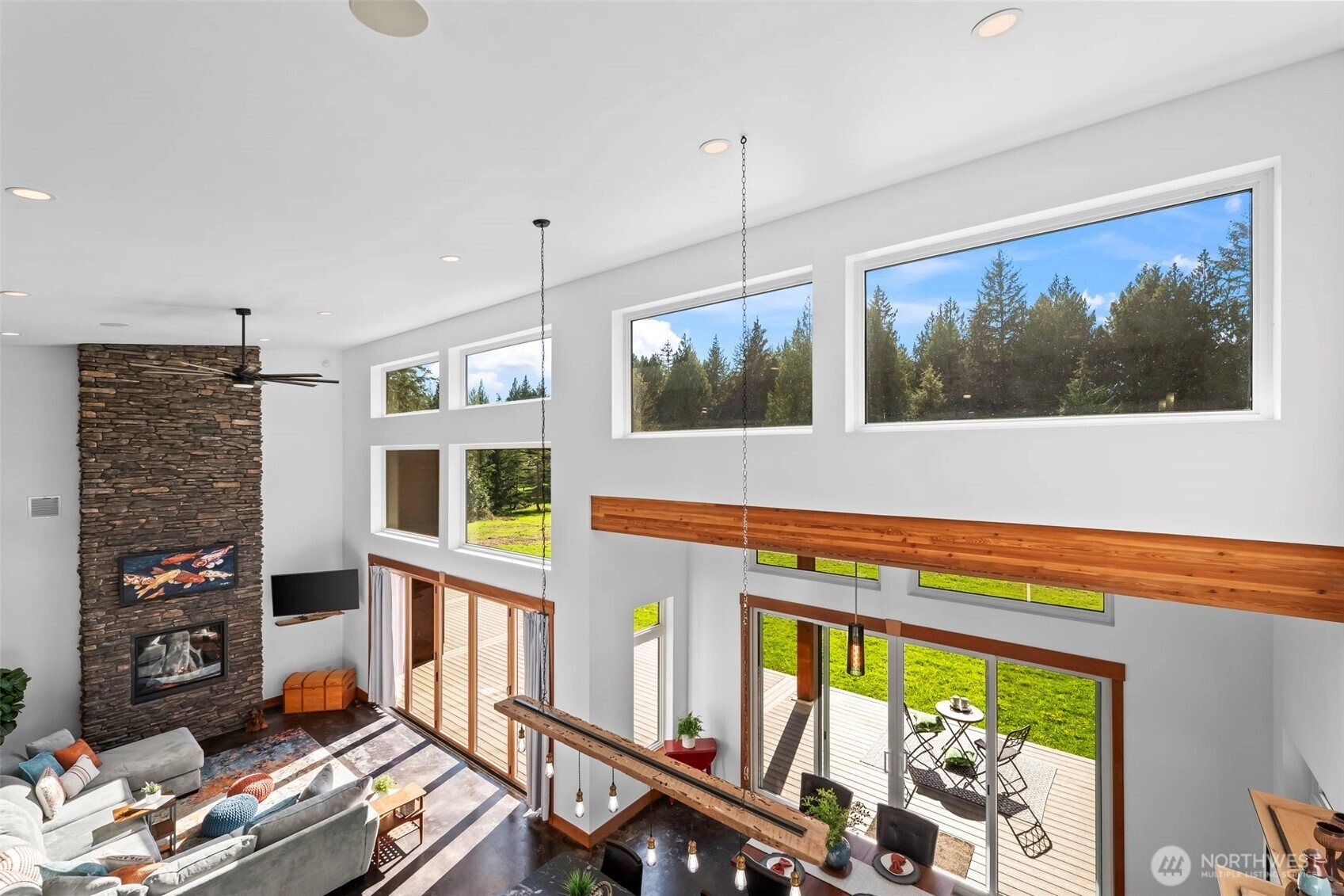 You'll feel at home the moment you walk in. Discover this stunning custom PNW modern contemporary 3 bedroom, 2.5 bath home with main level living designed for comfort and style. Step inside to soaring ceilings, natural wood beam accents, and light-filled open spaces that feel both warm and elevated. The kitchen impresses with a butler's pantry, granite countertops, and premium stainless appliances. Radiant heated floors run throughout the entire home as well as the garage. Outside, unwind on the expansive Trex deck, already plumbed for a hot tub and outdoor kitchen. Enjoy peaceful surroundings just minutes from your own private community beach, the casino, and easy highway access. Set on five peaceful acres, homes like this are a rare find.