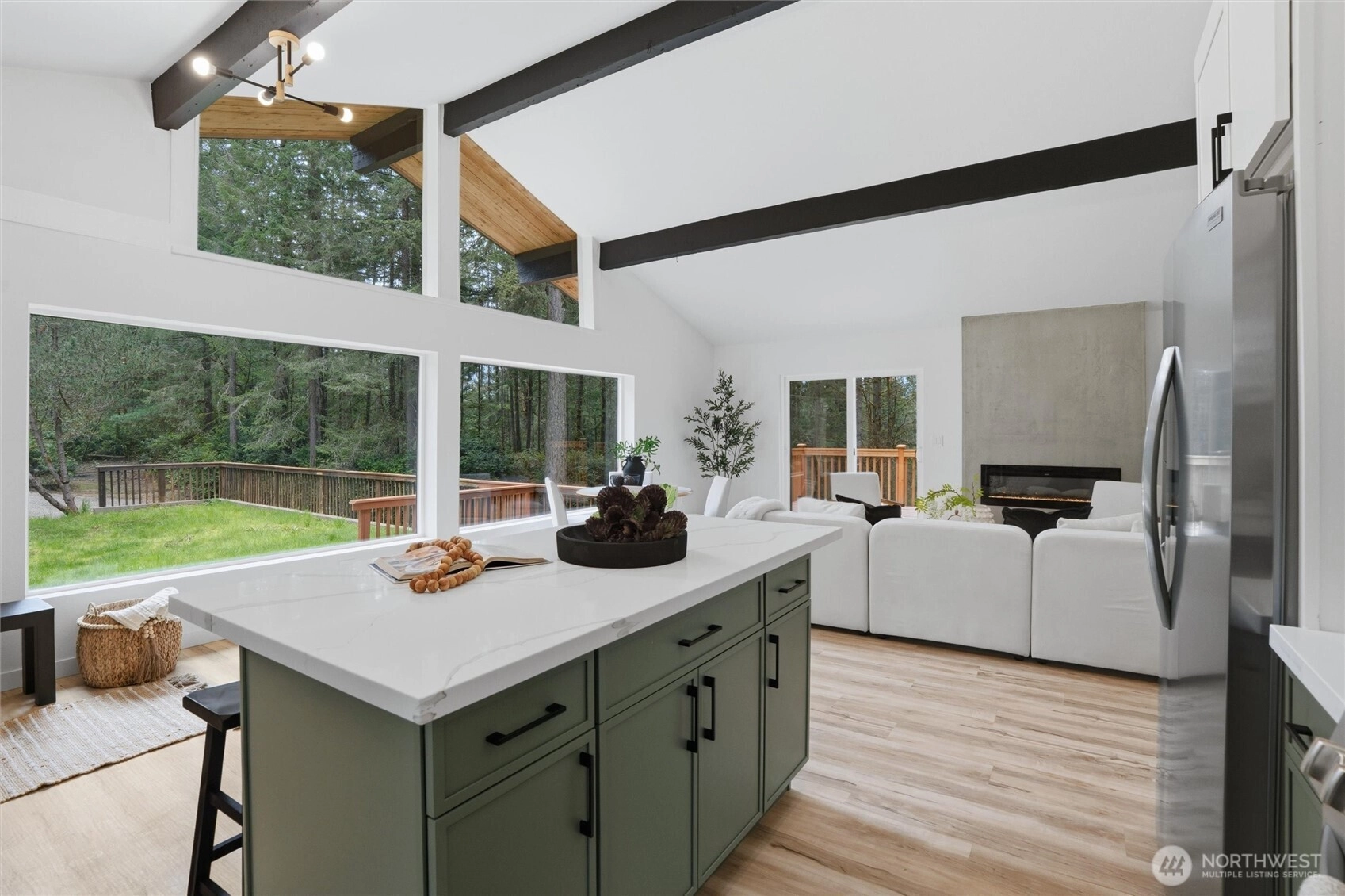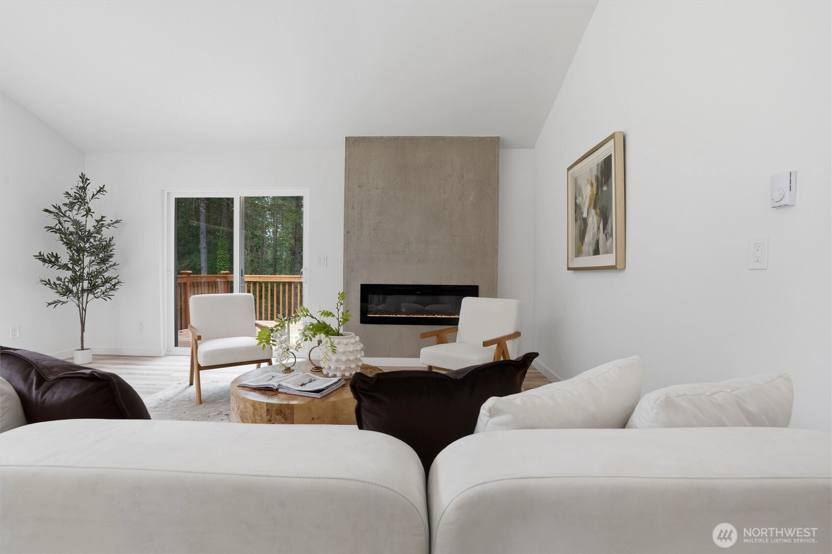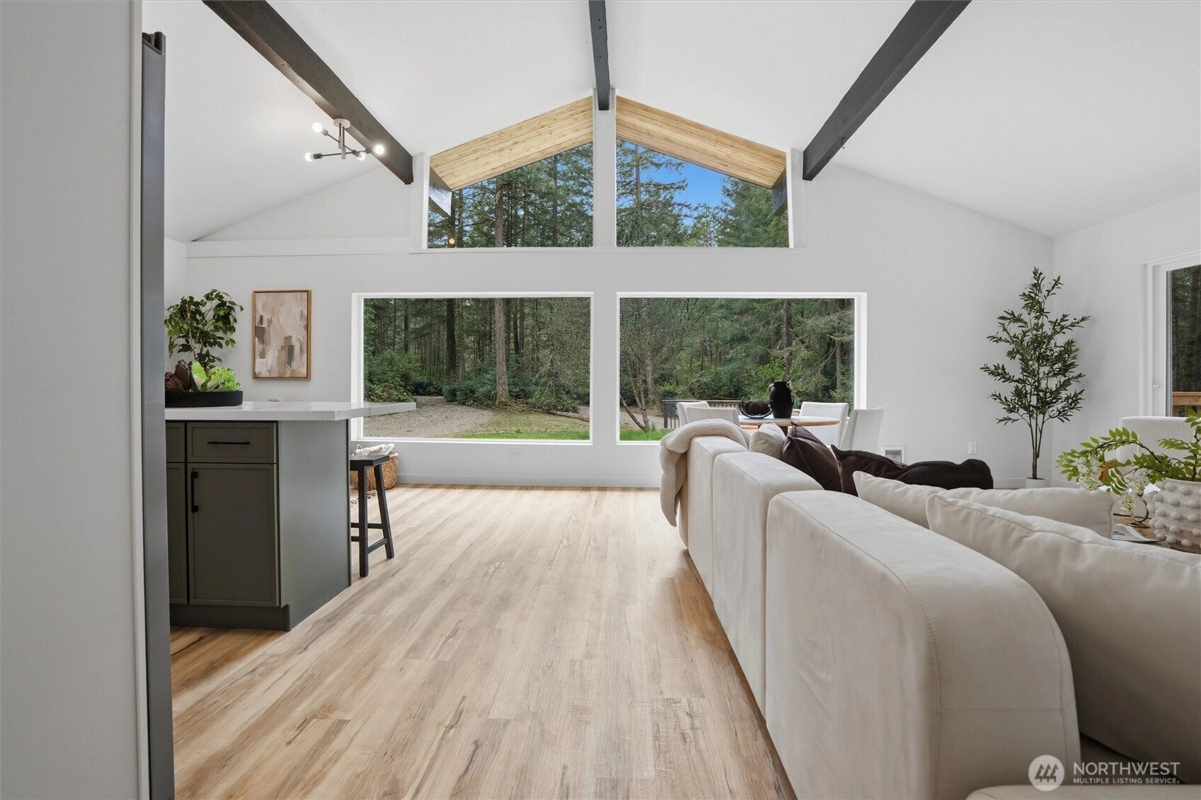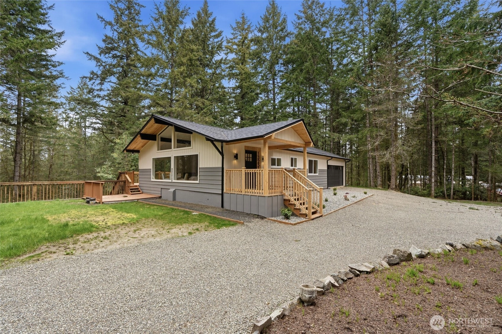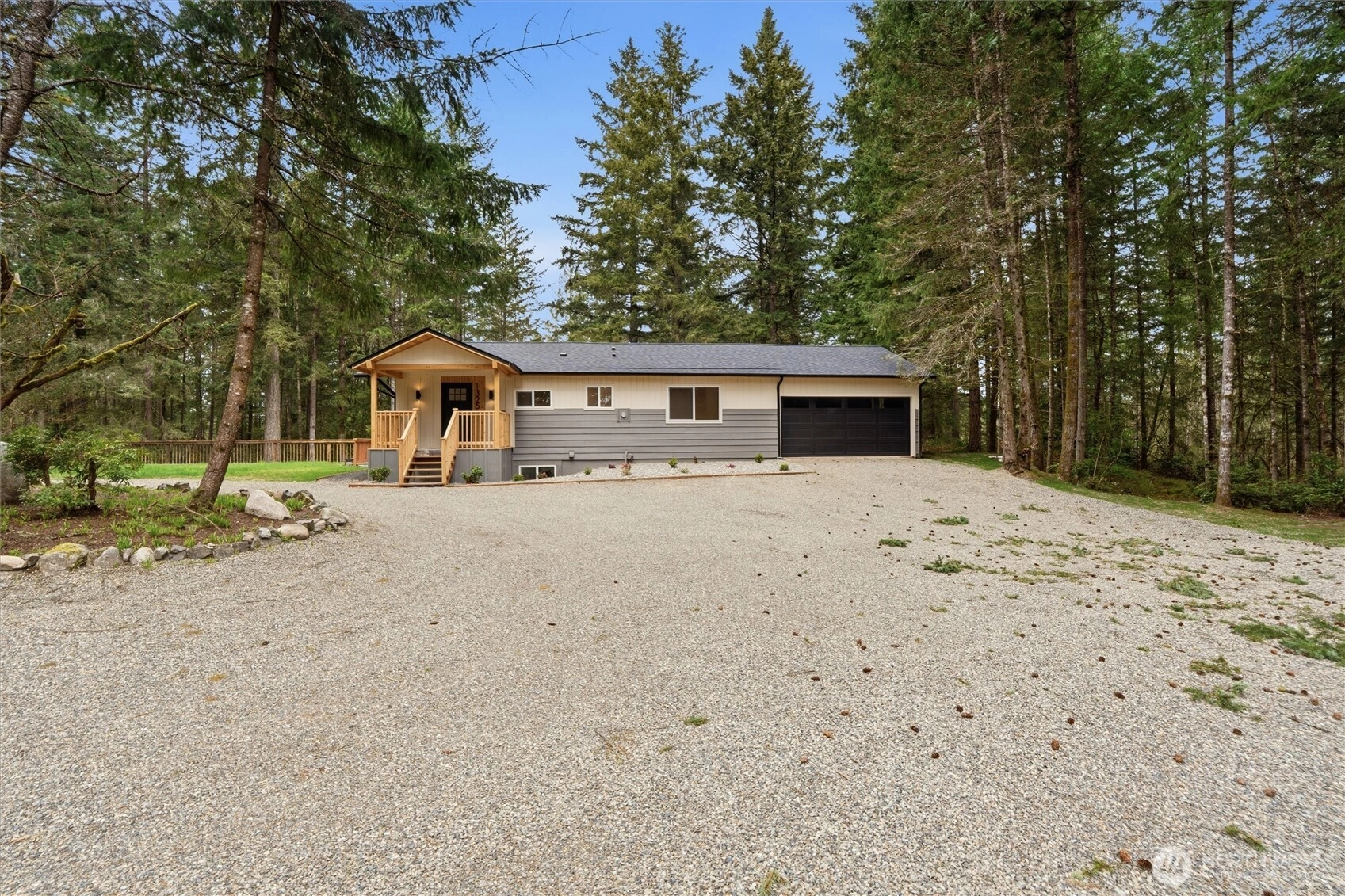 Tucked into the wooded quiet of Olalla, this fully reimagined home on 2.71 private acres has been stripped to the studs and rebuilt into something that stops you mid-scroll. New storm-resistant double-pane windows frame territorial views. Vaulted ceilings lift every room toward the light. And at the heart of it all... a showstopping kitchen where quartz counters sweep across a generous island, custom cabinetry rises clean and confident, and every surface quietly announces: this is not your average renovation. Both bathrooms have been completely transformed. LVP flooring flows throughout the main level with the kind of warmth that makes you want to kick off your shoes and stay. An electric fireplace anchors the living space with cozy intention. Below, a massive unfinished basement ...1,338 square feet of raw potential waits for your vision. A second 3-bedroom septic system already exists on the property, opening a genuine path to a future DADU, subject to permit approval. Build equity. Generate rental income. Or simply let the land breathe around you. South Kitsap schools. RV parking. A deck made for slow mornings. A secluded, paved-street address in Olalla that feels like a private retreat without surrendering convenience. This home got a second chance and didn't waste a single inch of it. The front door is open. Come feel the difference.