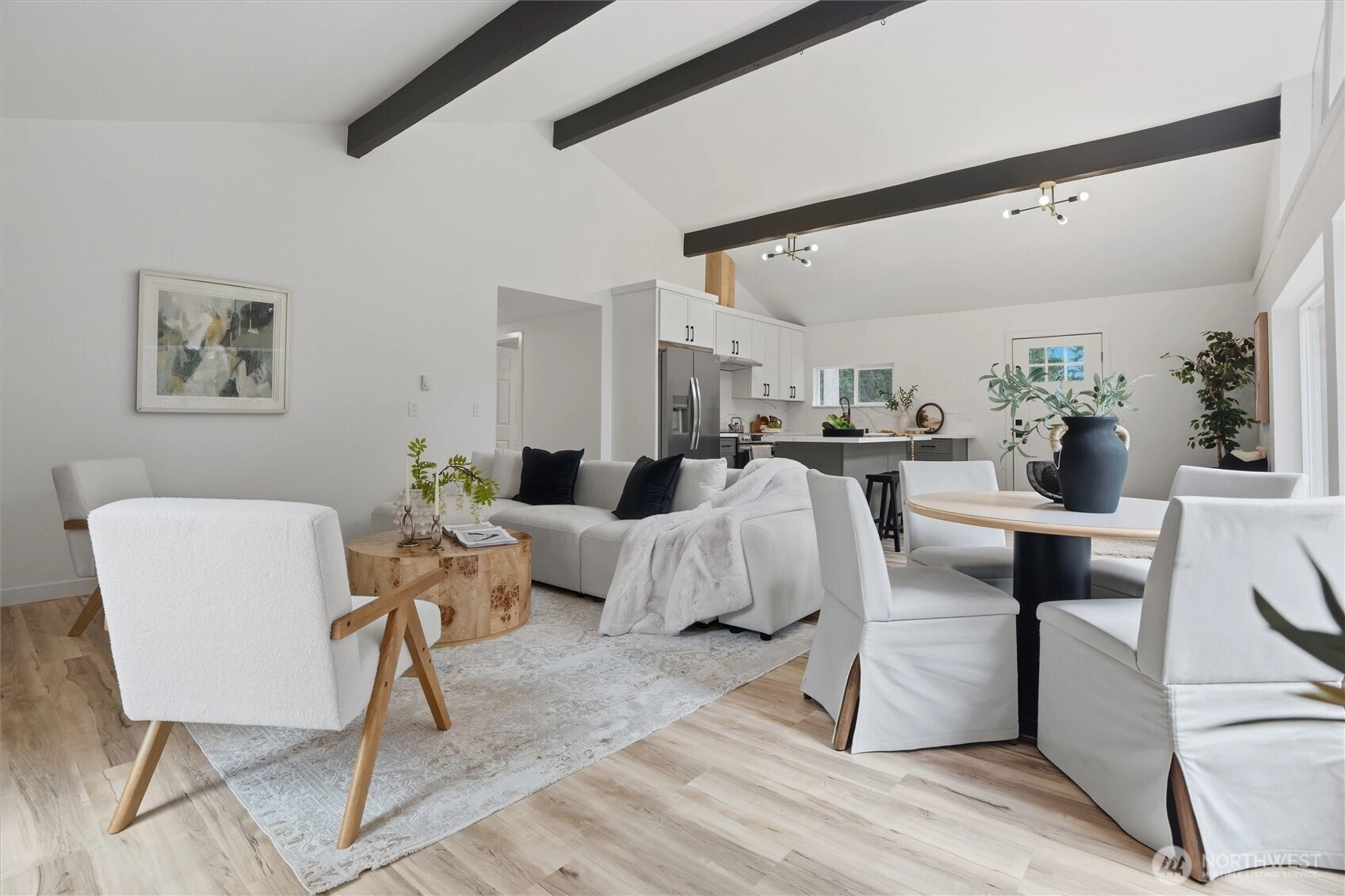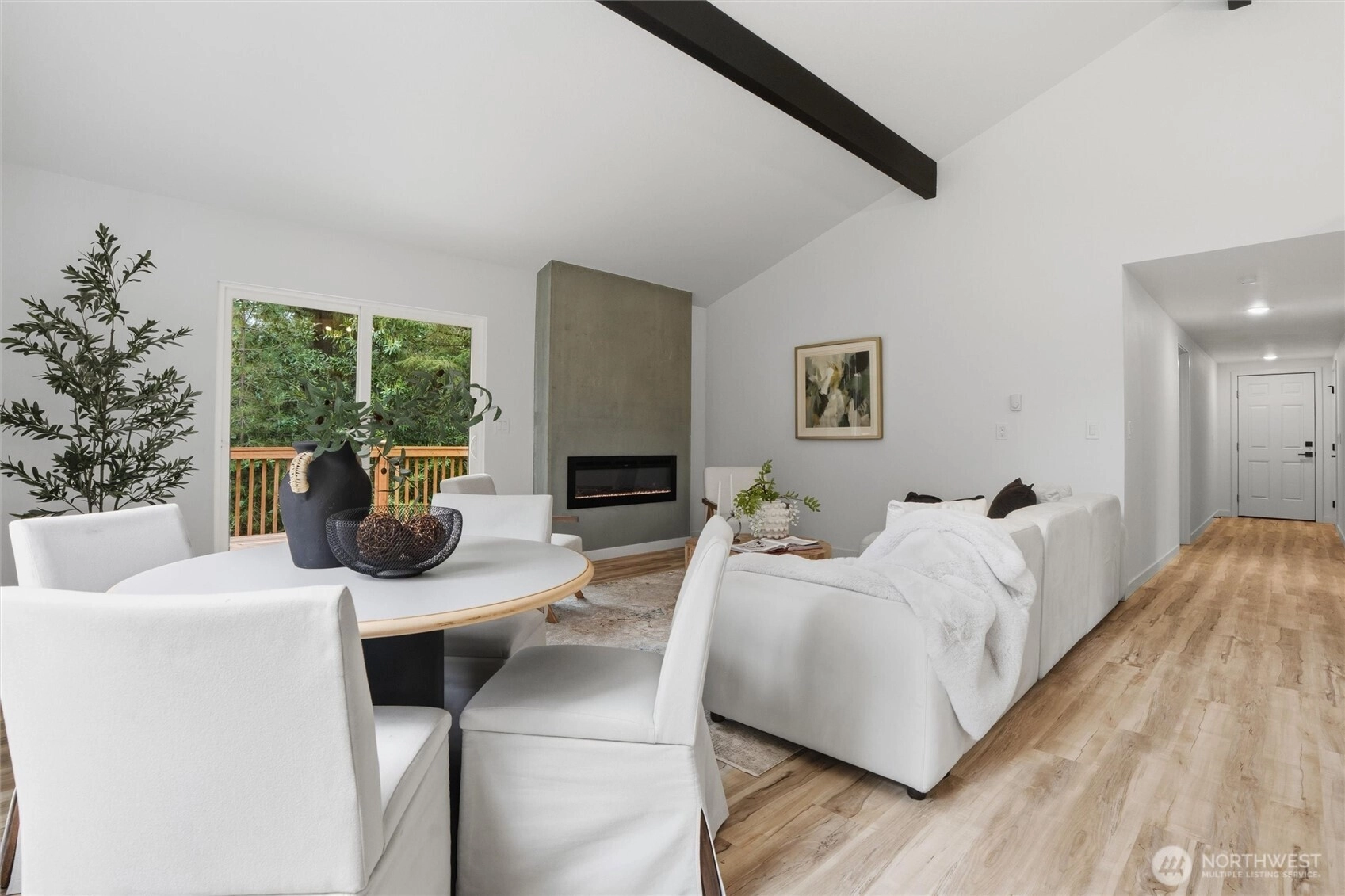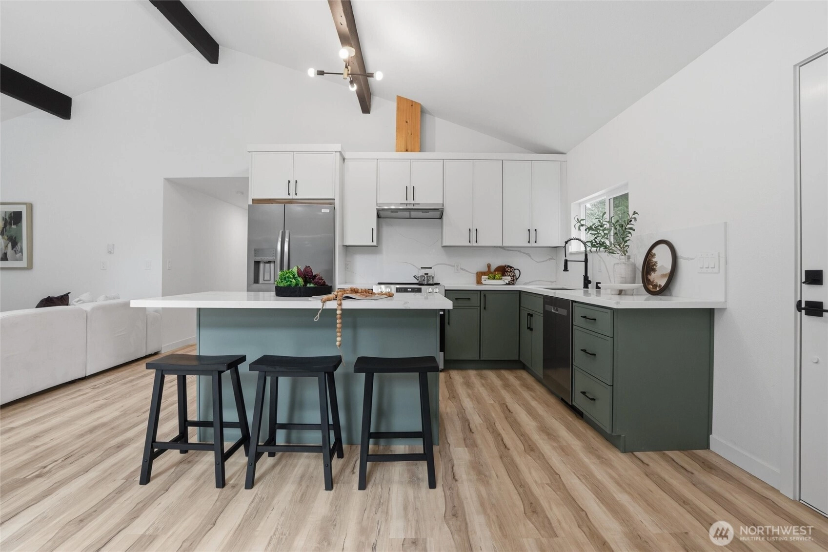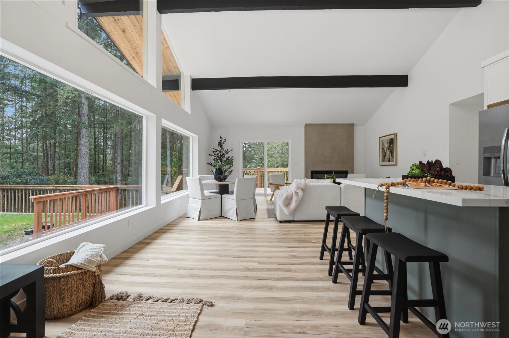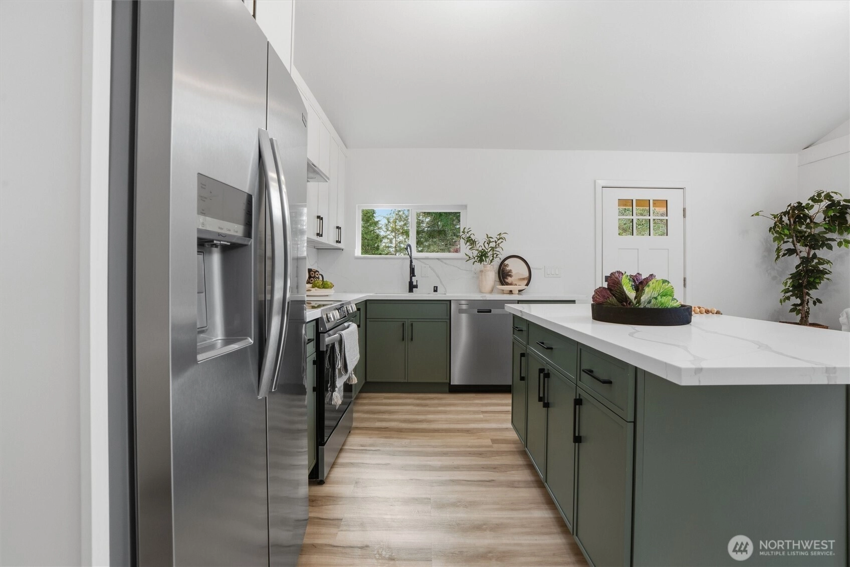 Tucked into the wooded quiet of Olalla, this fully reimagined home on 2.71 private acres has been stripped to the studs and rebuilt into something that stops you mid-scroll. New storm-resistant double-pane windows frame territorial views. Vaulted ceilings lift every room toward the light. And at the heart of it all... a showstopping kitchen where quartz counters sweep across a generous island, custom cabinetry rises clean and confident, and every surface quietly announces: this is not your average renovation. Both bathrooms have been completely transformed. LVP flooring flows throughout the main level with the kind of warmth that makes you want to kick off your shoes and stay. An electric fireplace anchors the living space with cozy intention. Below, a massive unfinished basement ...1,338 square feet of raw potential waits for your vision. A second 3-bedroom septic system already exists on the property, opening a genuine path to a future DADU, subject to permit approval. Build equity. Generate rental income. Or simply let the land breathe around you. South Kitsap schools. RV parking. A deck made for slow mornings. A secluded, paved-street address in Olalla that feels like a private retreat without surrendering convenience. This home got a second chance and didn't waste a single inch of it. The front door is open. Come feel the difference.