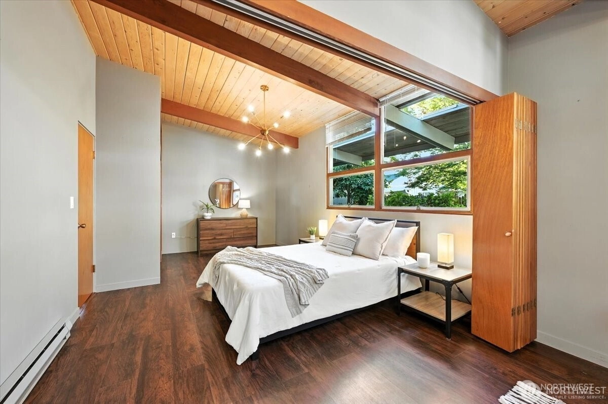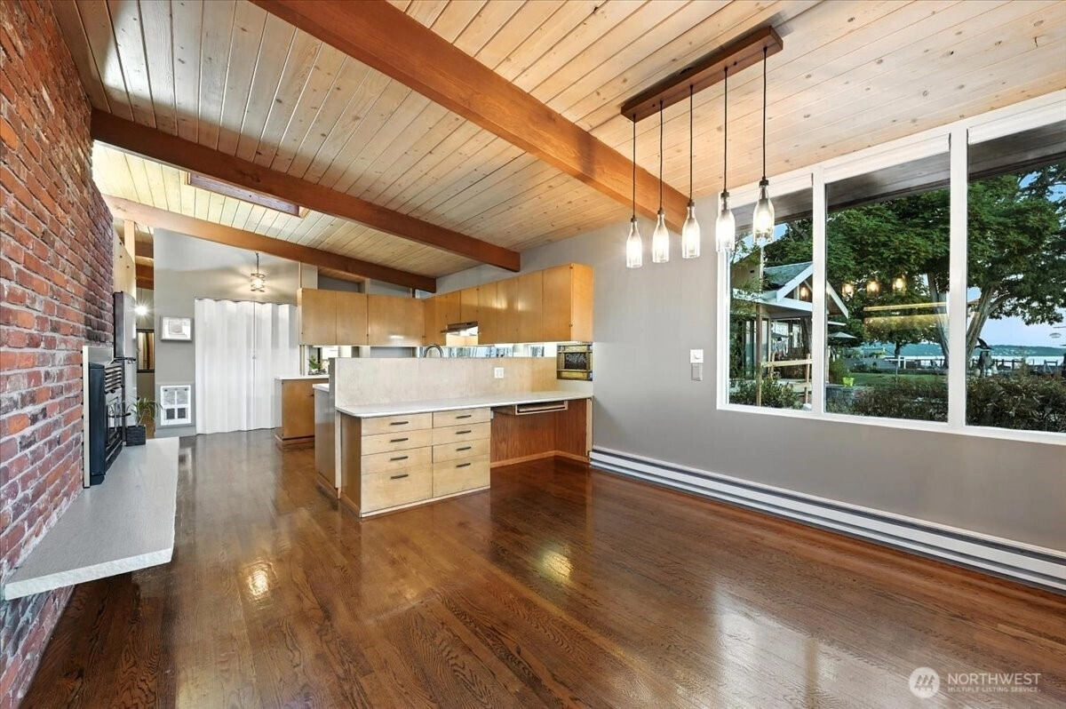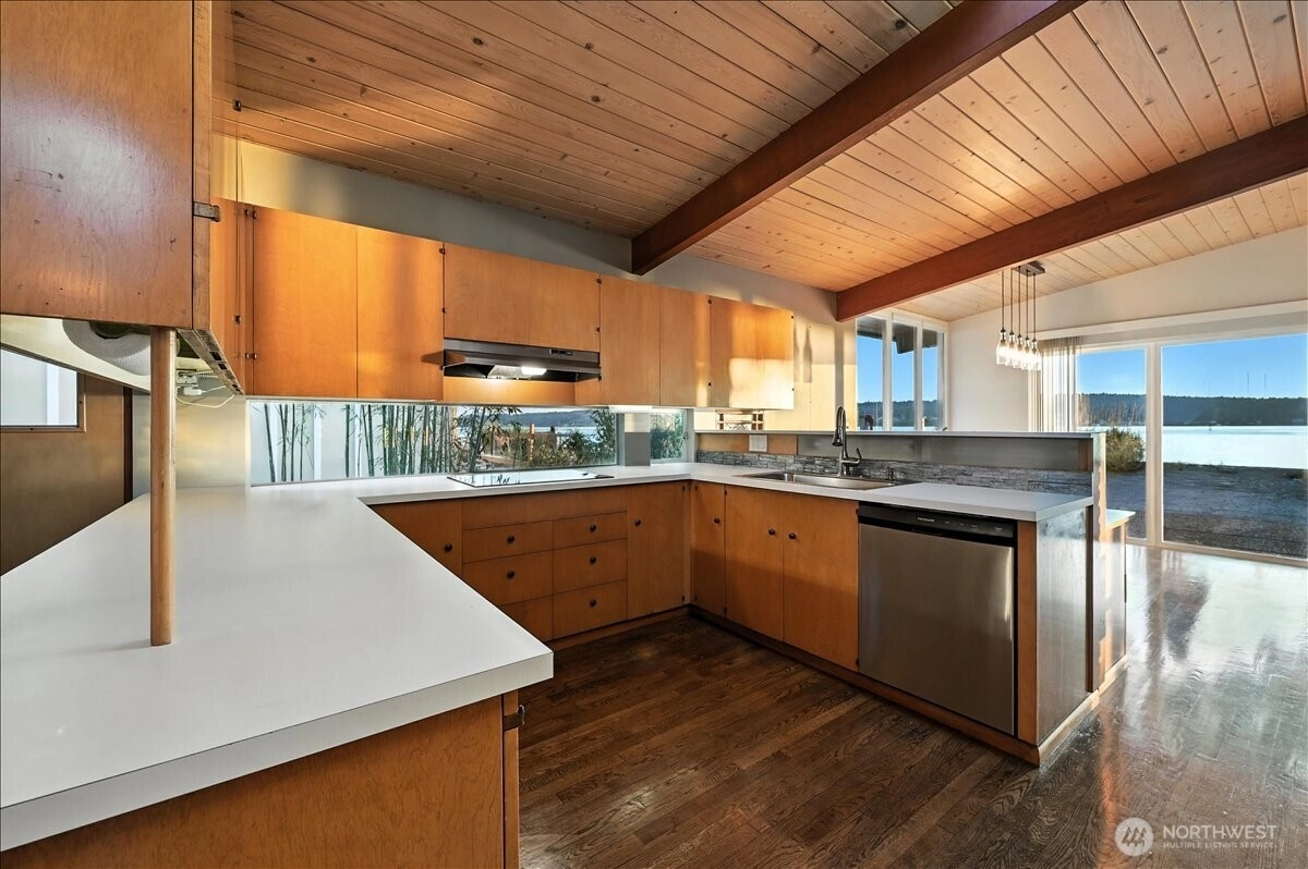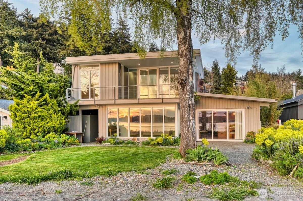 Experience the wonder of this Pt. Fosdick Mid-Century Modern 2-story charmer located on 48 feet of no-bank waterfront. This well-loved home offers iconic views of Hales Pass, the Olympic Mountains, and Chambers Bay. Here by the water, every day feels like a getaway. Bask in the glow of mesmerizing sunsets and cast your eyes on marine traffic and abundant wildlife. Adventure awaits outside your back door, where paddle boarding, kayaking, or beachcombing for treasures is just steps from your private sandy beach. Gathering with friends and loved ones is easy for a weekend or full-time living. Enjoy generous, flexible spaces. The main floor offers a spacious living room with a woodburning fireplace, dining room, and open kitchen. Two bedrooms and a flexible spare non-conforming bedroom and two three-quarter baths complete the main level. Replenish your spirit upstairs in the private primary bedroom with walkout deck. A third bedroom, office, and 3/4 bath complete the second level. Ample storage with garage, shop, and carport. Quick access to the Tacoma Narrows Bridge, only a few miles west of I-5, and 45 minutes to SeaTac for seamless regional travel. Near scenic downtown shops, galleries, and waterfront dining. This is a rare opportunity to create your own waterfront retreat in a place where memories are made year-round.
