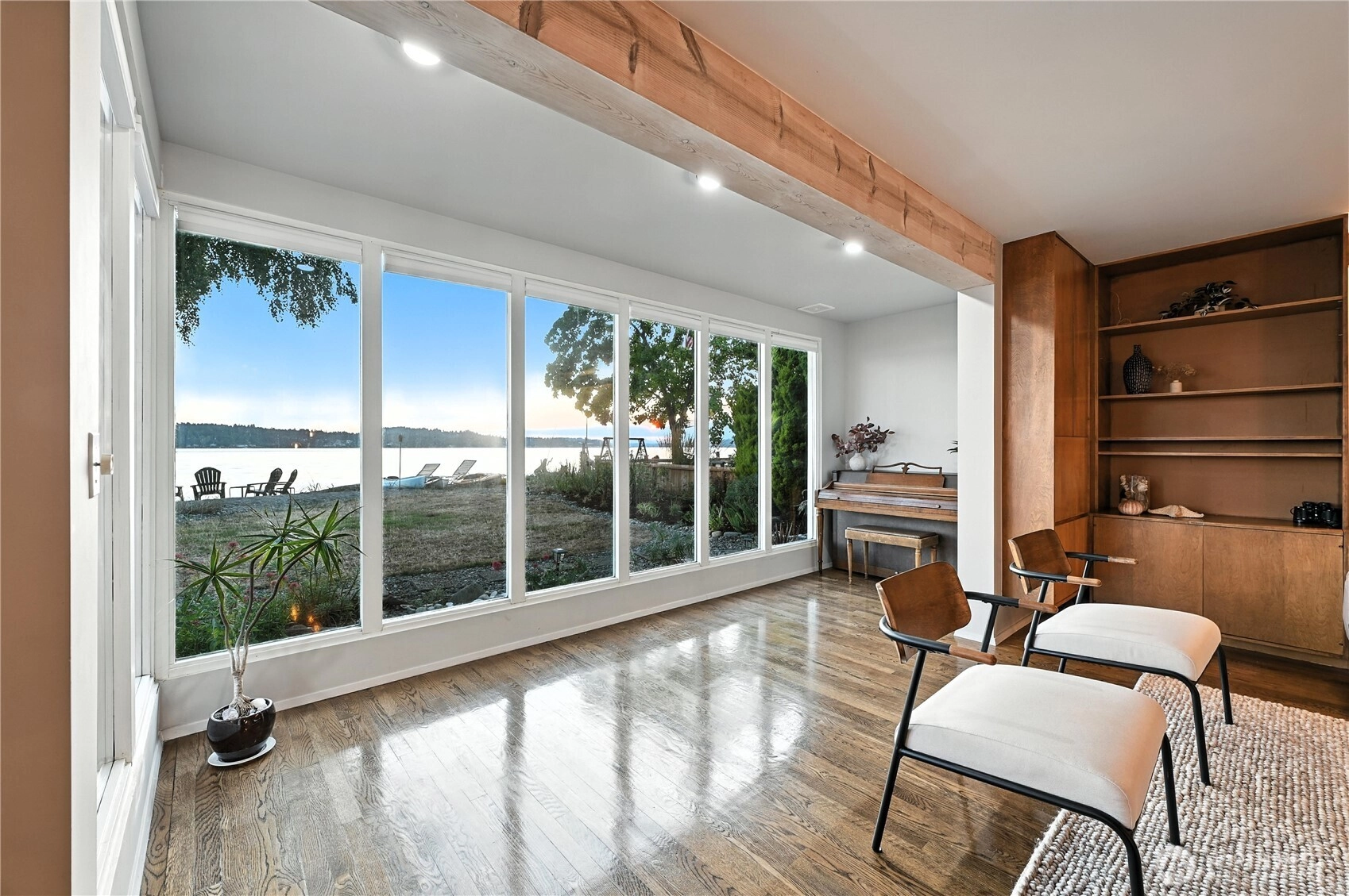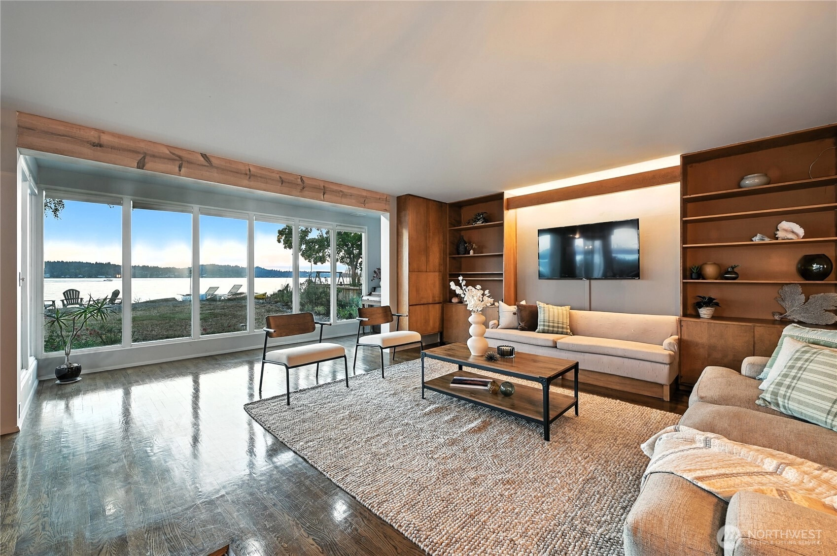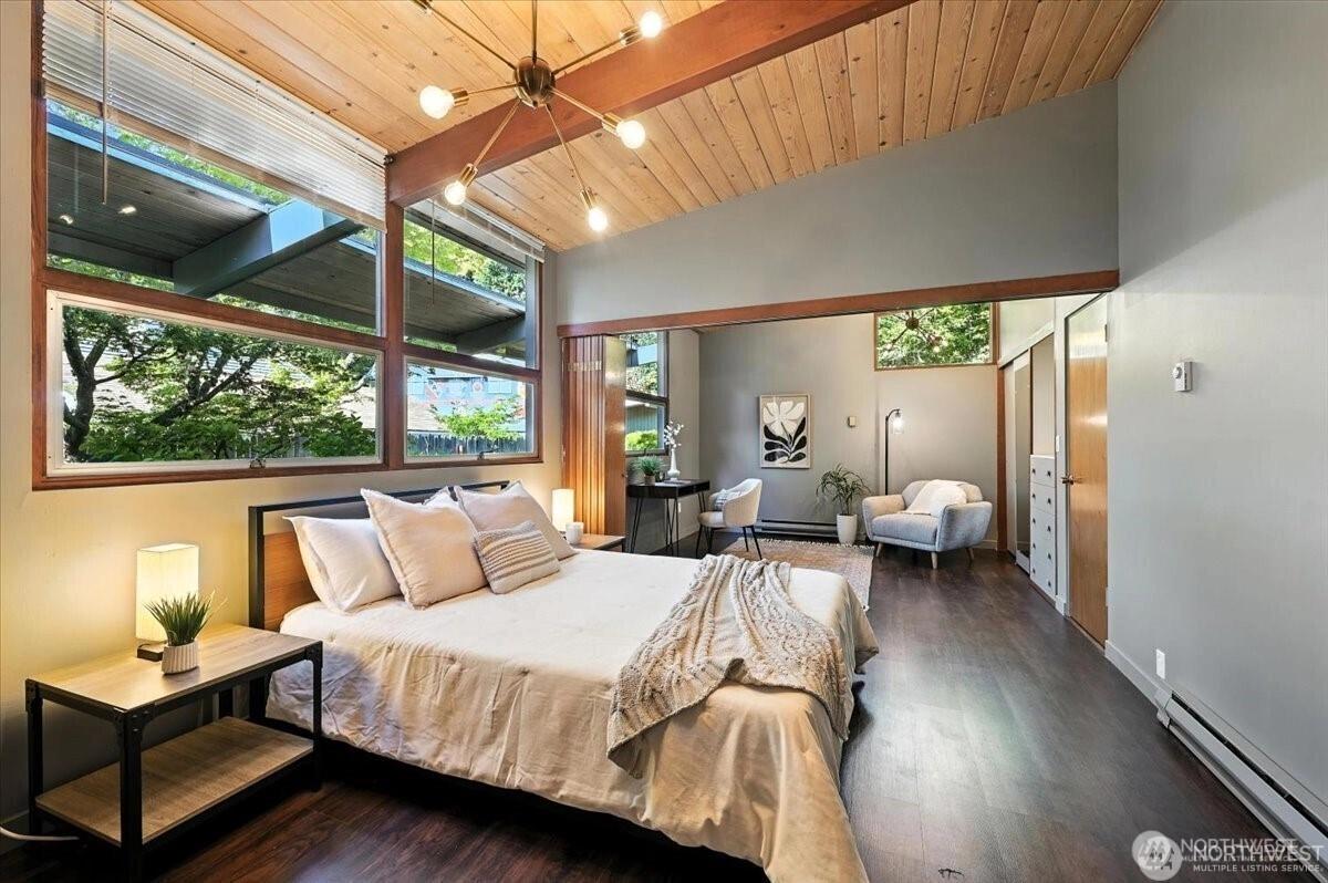 Experience the wonder of this Pt. Fosdick Mid-Century Modern 2-story charmer located on 48 feet of no-bank waterfront. This well-loved home offers iconic views of Hales Pass, the Olympic Mountains, and Chambers Bay. Here by the water, every day feels like a getaway. Bask in the glow of mesmerizing sunsets and cast your eyes on marine traffic and abundant wildlife. Adventure awaits outside your back door, where paddle boarding, kayaking, or beachcombing for treasures is just steps from your private sandy beach. Gathering with friends and loved ones is easy for a weekend or full-time living. Enjoy generous, flexible spaces. The main floor offers a spacious living room with a woodburning fireplace, dining room, and open kitchen. Two bedrooms and a flexible spare non-conforming bedroom and two three-quarter baths complete the main level. Replenish your spirit upstairs in the private primary bedroom with walkout deck. A third bedroom, office, and 3/4 bath complete the second level. Ample storage with garage, shop, and carport. Quick access to the Tacoma Narrows Bridge, only a few miles west of I-5, and 45 minutes to SeaTac for seamless regional travel. Near scenic downtown shops, galleries, and waterfront dining. This is a rare opportunity to create your own waterfront retreat in a place where memories are made year-round.