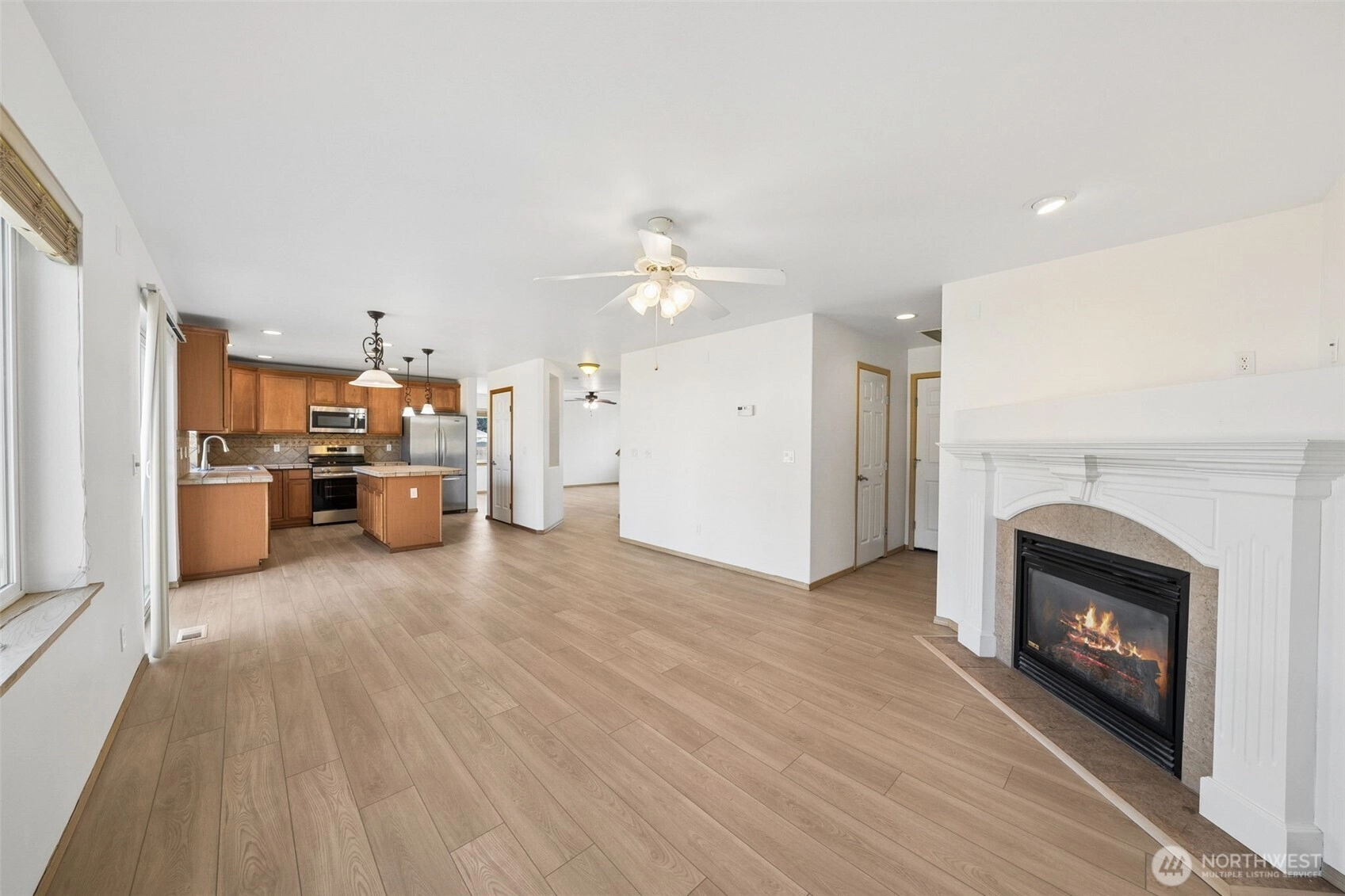 Remarkable home tucked in a quiet cul-de-sac in the desirable Rainier Place Estates neighborhood! This beautifully updated home shines with NEW interior paint, NEW LVP flooring, and NEW carpet on the stairs. Inviting entry leads to the formal living and dining rooms—perfect for entertaining. The spacious kitchen features ceramic tile countertops with full-height tile backsplash, a walk-in pantry, stainless steel appliances, and a NEW range. Cozy family room with gas fireplace and mantle creates the perfect gathering space, plus a convenient main-floor office for work or study. Upstairs, the expansive primary suite offers a walk-in closet and luxurious 5-piece bath with NEW vinyl flooring and a relaxing jacuzzi tub. Three additional guest bedrooms include a Jr. primary suite with its own full bath and walk-in closet, along with a bonus room for added flexibility. Guest bathroom also updated with NEW vinyl flooring and a NEW fiberglass tub/shower. Don't miss the views of Mt. Rainier from the primary bedroom and front guest bedroom!!! Enjoy the outdoors with NEW backyard fencing and grass, plus a 3-car garage complete with custom flooring and built-in cabinets for extra storage. A perfect blend of space, comfort, and thoughtful updates—this home is move-in ready and truly a must-see!