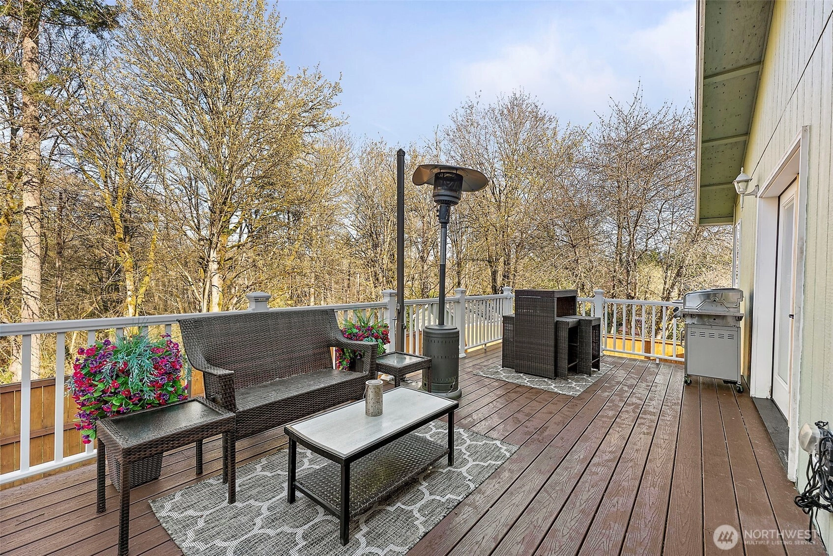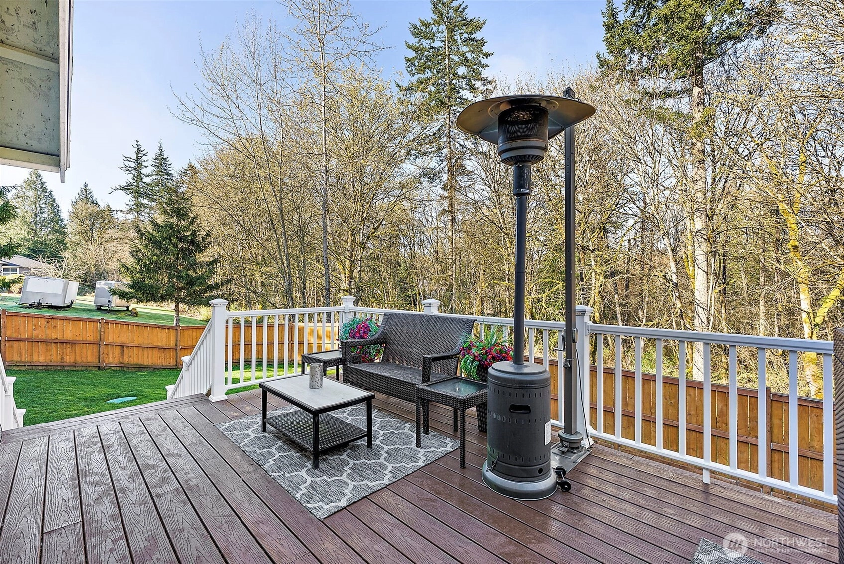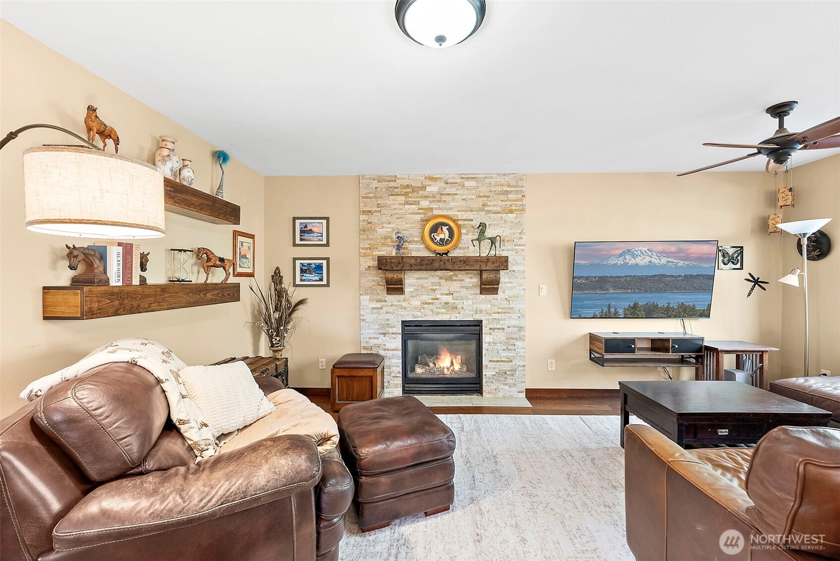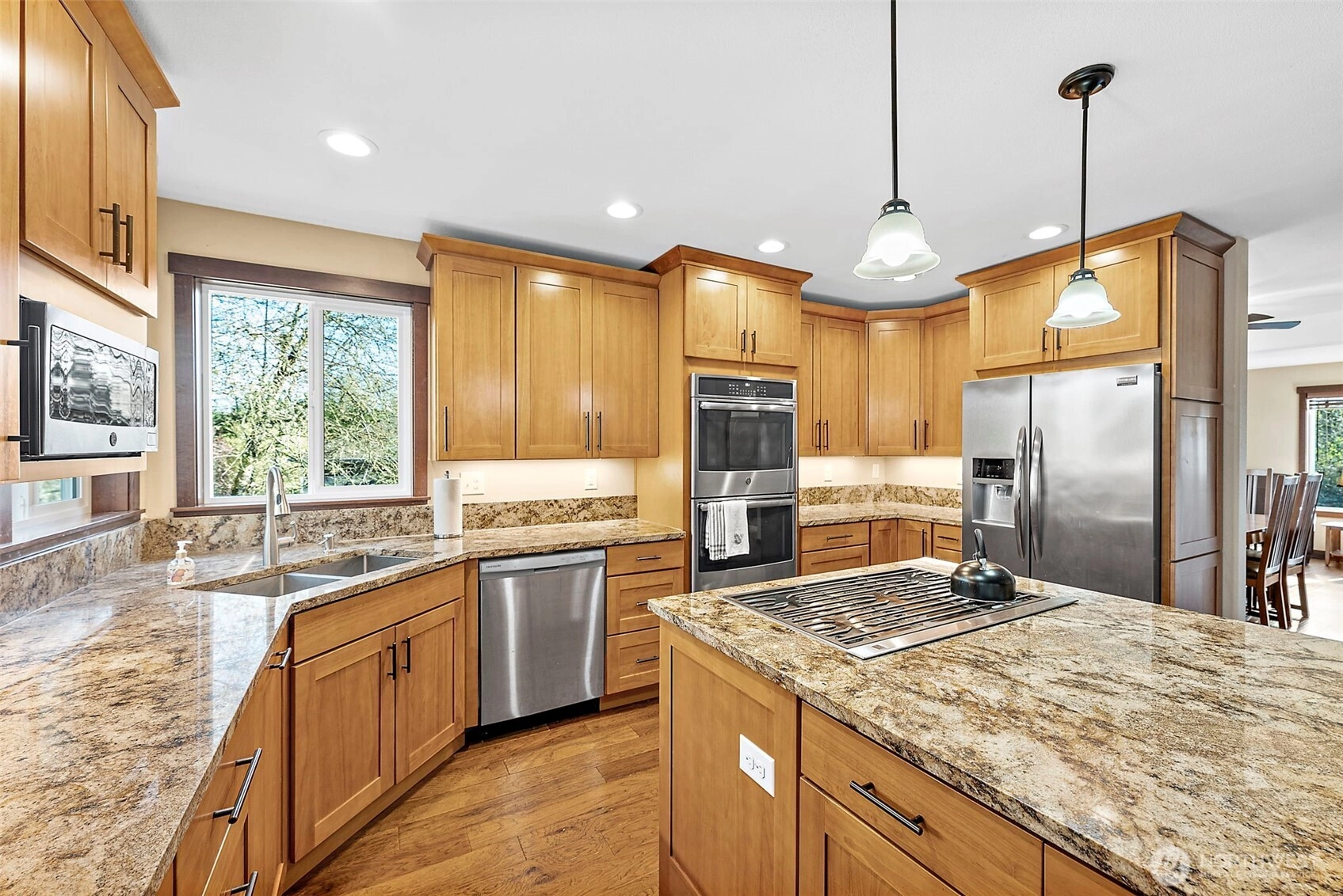 Set on a spacious acre+ lot just a short stroll to Lake Tapps Park, this beautifully maintained two-story home offers flexibility, comfort, and room to grow. The light-filled kitchen features granite counters, stainless steel appliances is open concept with an eat-in island, and a walk-in pantry, and a large gathering room with gas fireplace—perfect for everyday living and effortless entertaining. The versatile floor plan includes a main floor office, designated laundry, formal living and dining spaces. Upstairs has been thoughtfully configured as a secondary living space with private access, electric fireplace, second washer/dryer, and kitchen prep area offering incredible potential for multi-generational living or an easy conversion back to a luxurious primary suite with a walk-in closet and en suite bath. In total, enjoy three bedrooms, a large bonus room, and 2.5 bathrooms. Step outside to a fenced backyard with an expansive deck—ideal for entertaining or relaxing. The outbuilding provides additional flexibility for a future office, studio, or storage. With RV parking, two car garage, no HOA, mature landscaping, and charming curb appeal, this property blends lifestyle, space, and versatility in a very private and serene setting in a prime location.