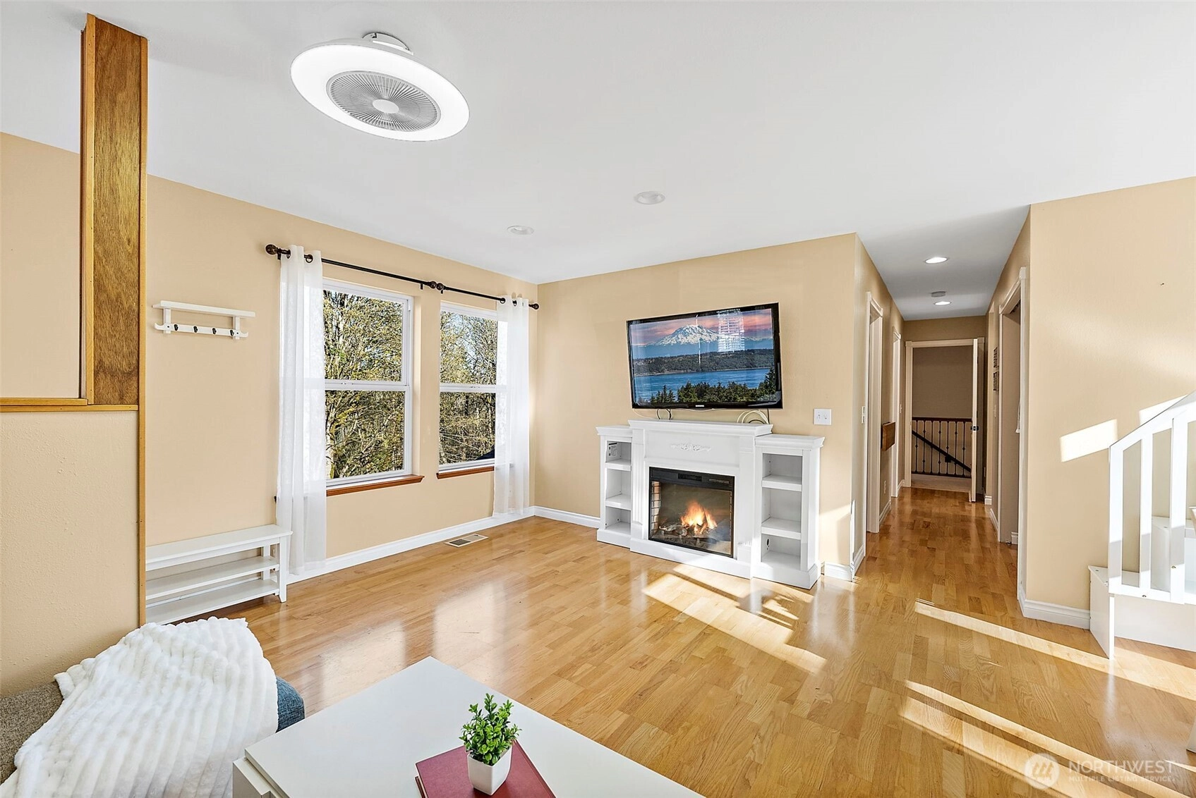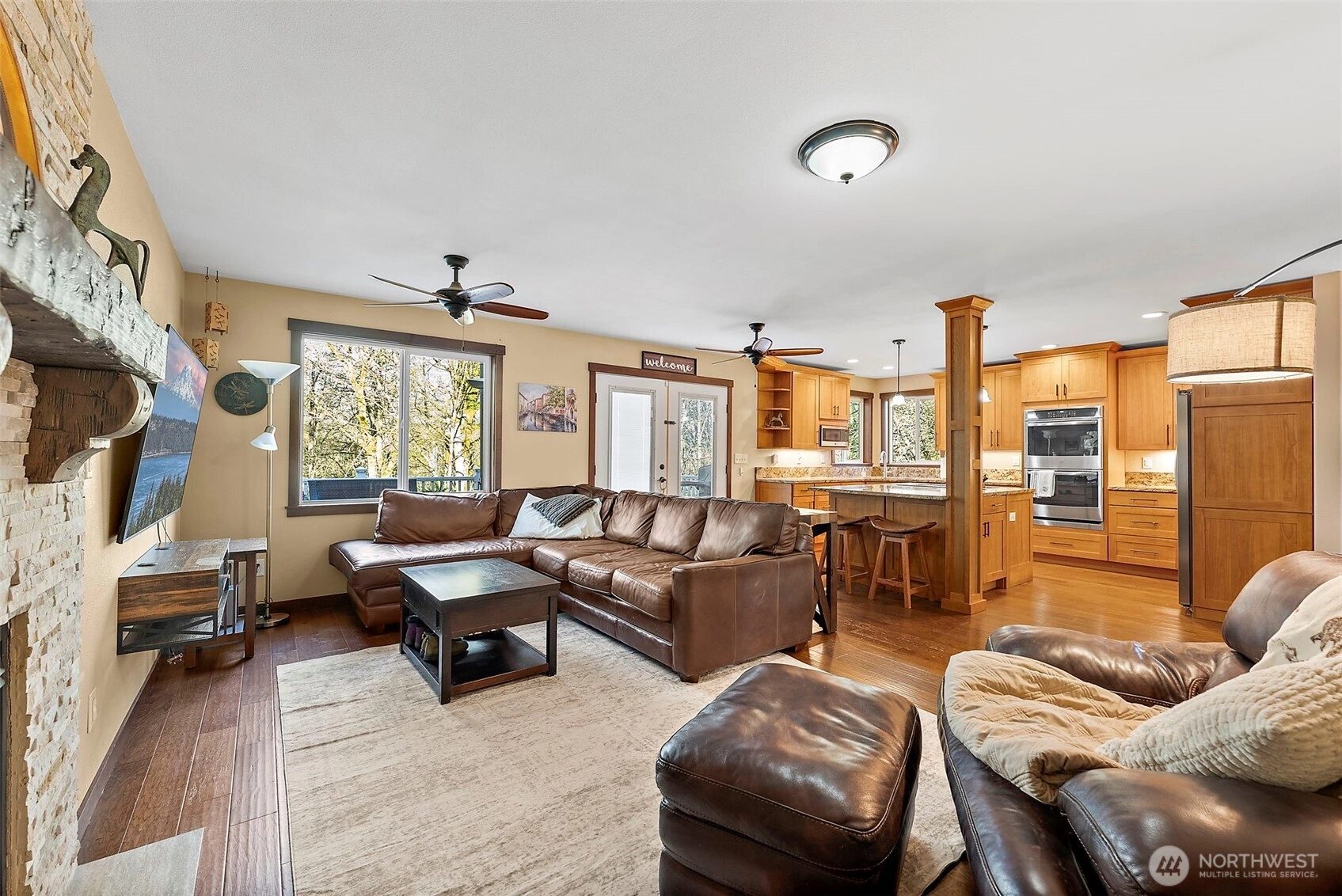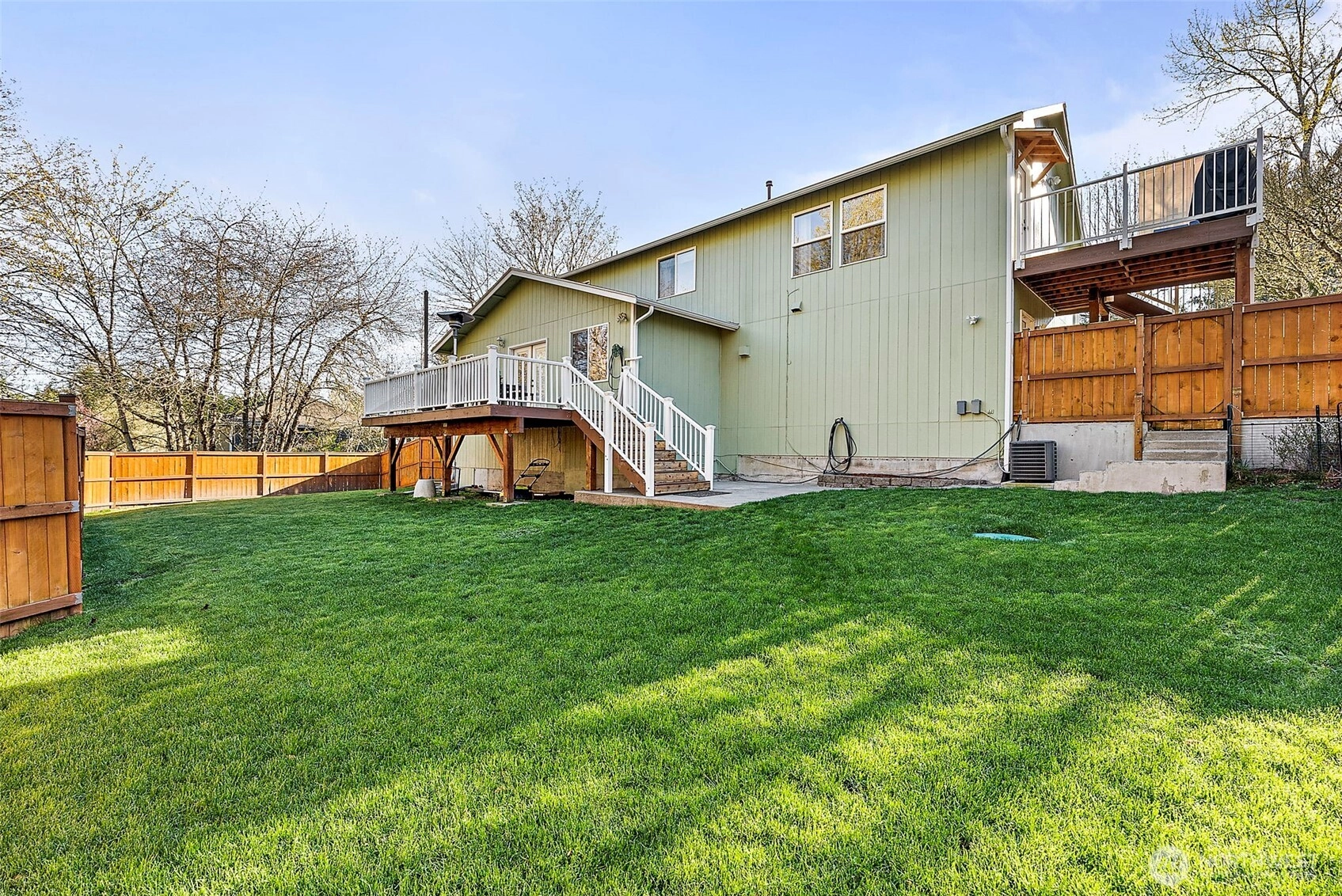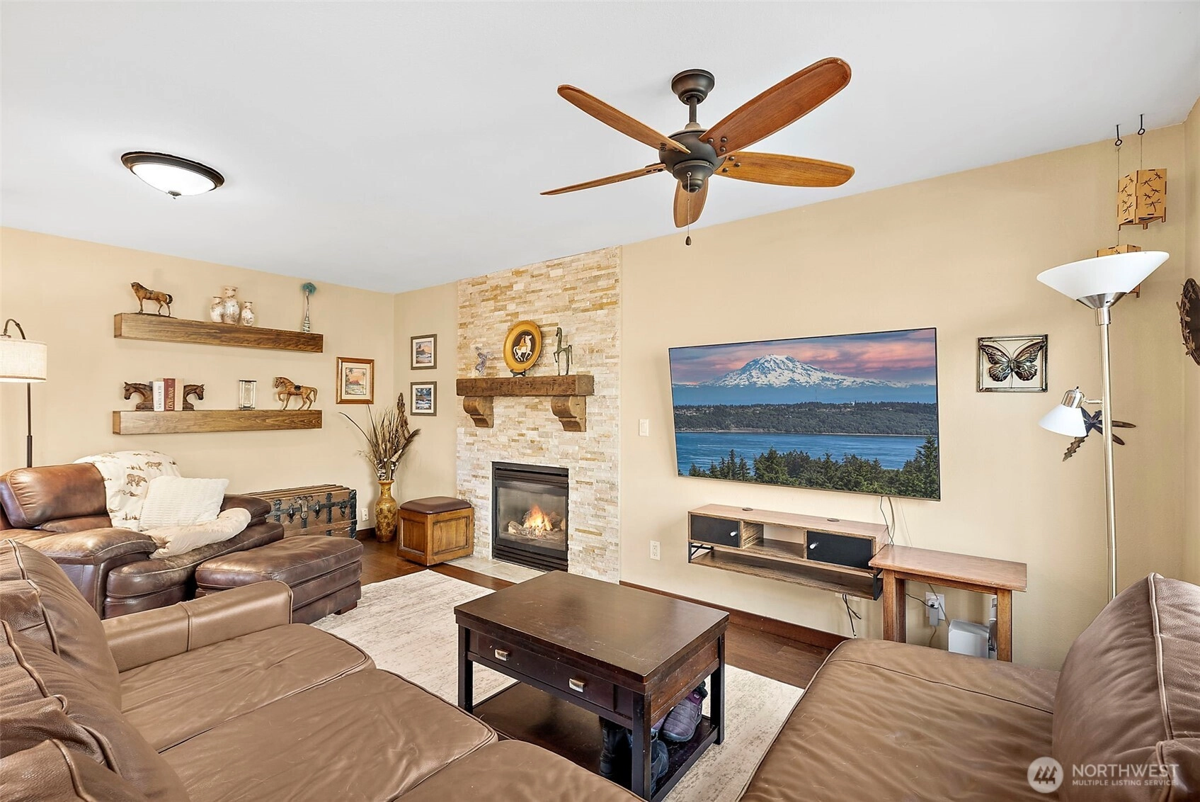 Set on a spacious acre+ lot just a short stroll to Lake Tapps Park, this beautifully maintained two-story home offers flexibility, comfort, and room to grow. The light-filled kitchen features granite counters, stainless steel appliances is open concept with an eat-in island, and a walk-in pantry, and a large gathering room with gas fireplace—perfect for everyday living and effortless entertaining. The versatile floor plan includes a main floor office, designated laundry, formal living and dining spaces. Upstairs has been thoughtfully configured as a secondary living space with private access, electric fireplace, second washer/dryer, and kitchen prep area offering incredible potential for multi-generational living or an easy conversion back to a luxurious primary suite with a walk-in closet and en suite bath. In total, enjoy three bedrooms, a large bonus room, and 2.5 bathrooms. Step outside to a fenced backyard with an expansive deck—ideal for entertaining or relaxing. The outbuilding provides additional flexibility for a future office, studio, or storage. With RV parking, two car garage, no HOA, mature landscaping, and charming curb appeal, this property blends lifestyle, space, and versatility in a very private and serene setting in a prime location.