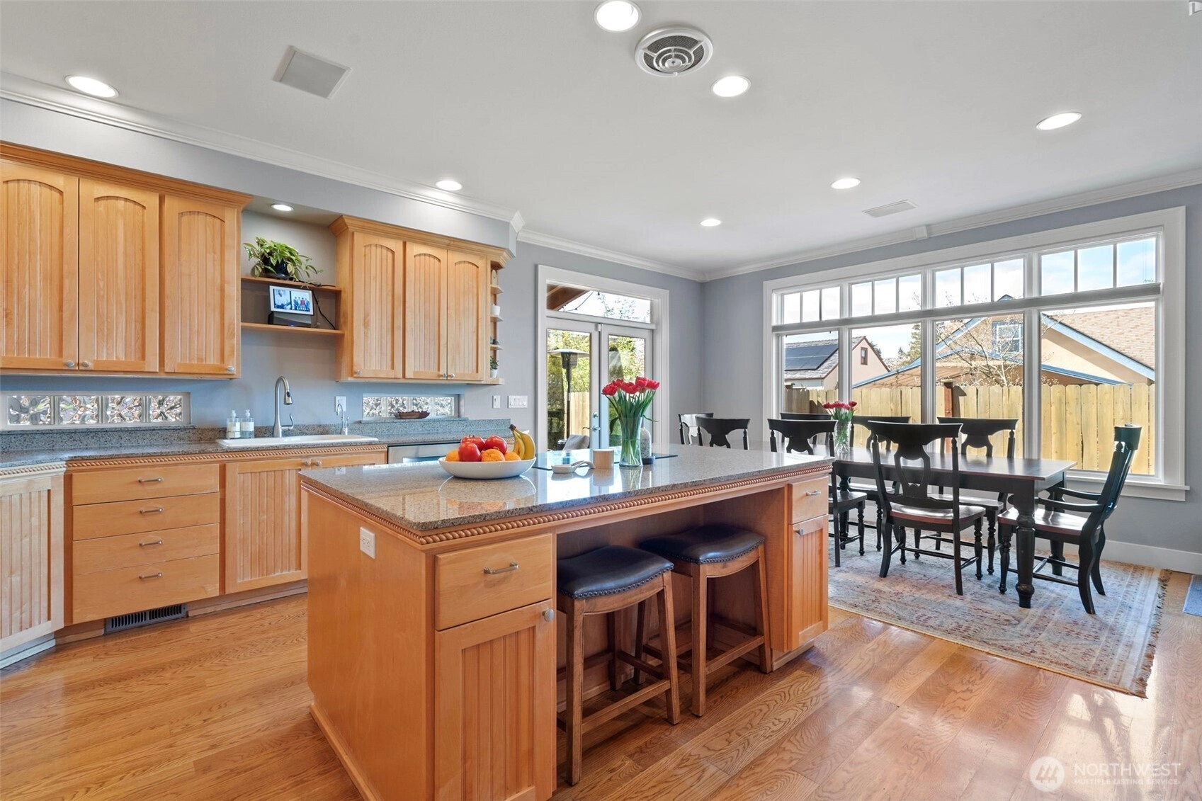 There is nothing “old” about this exceptional Old Town residence. Built in 2001, the home was thoughtfully designed for modern living, offering a seamless main-level layout that allows for effortless entertaining while still providing quiet, comfortable spaces for everyday life. A private office just off the entry creates an ideal setting for meeting clients or working from home. The spacious kitchen is beautifully appointed with abundant cabinetry and expansive prep surfaces, making storage simple and gathering around meals a natural centerpiece of the home. Upstairs, the home transitions into its peaceful retreat spaces, complete with a conveniently located laundry room. Outdoor living is equally impressive, featuring a covered dining area, dedicated hot tub space, fire pit, room for gardening, and a low-maintenance turf yard designed for year-round enjoyment. Parking is a rare luxury in North Tacoma, and this property delivers with a three-car alley-entry garage plus additional off-street parking in front. Perfectly situated- you'll have an easy walk to schools, restaurants, the tennis club, and neighborhood amenities - this home truly offers the complete package.