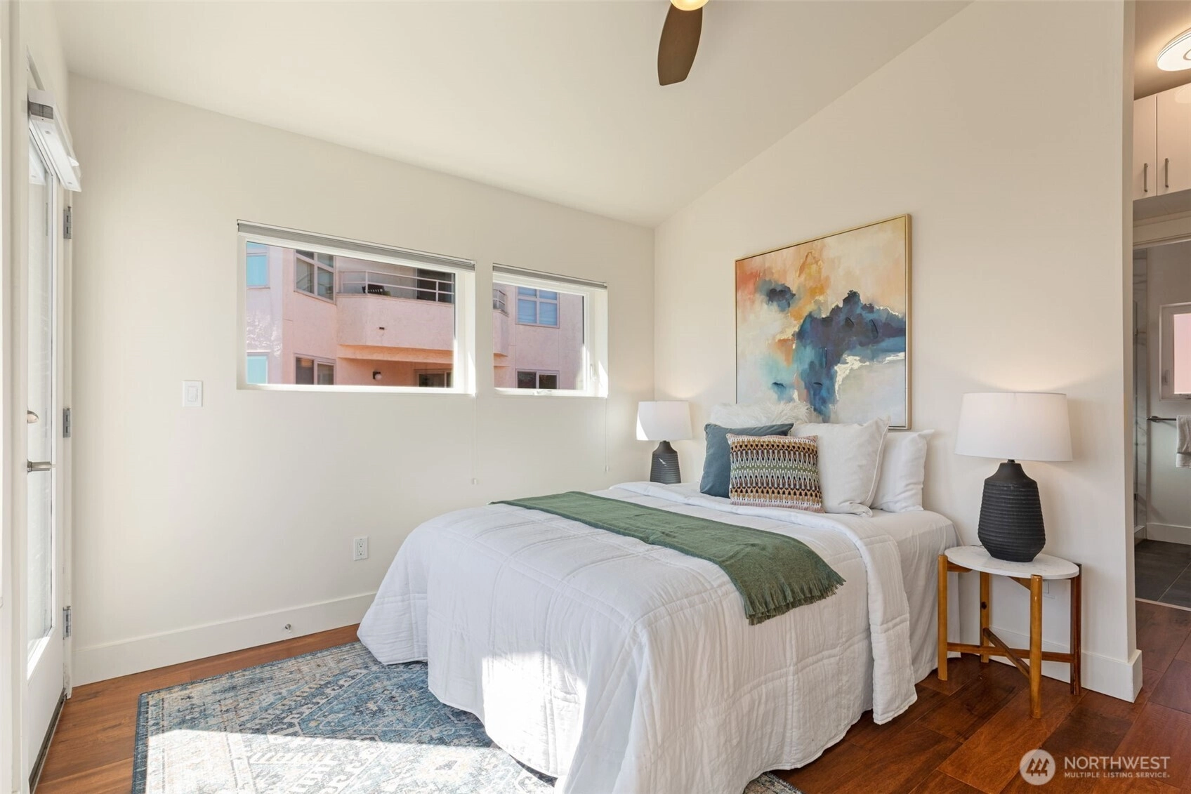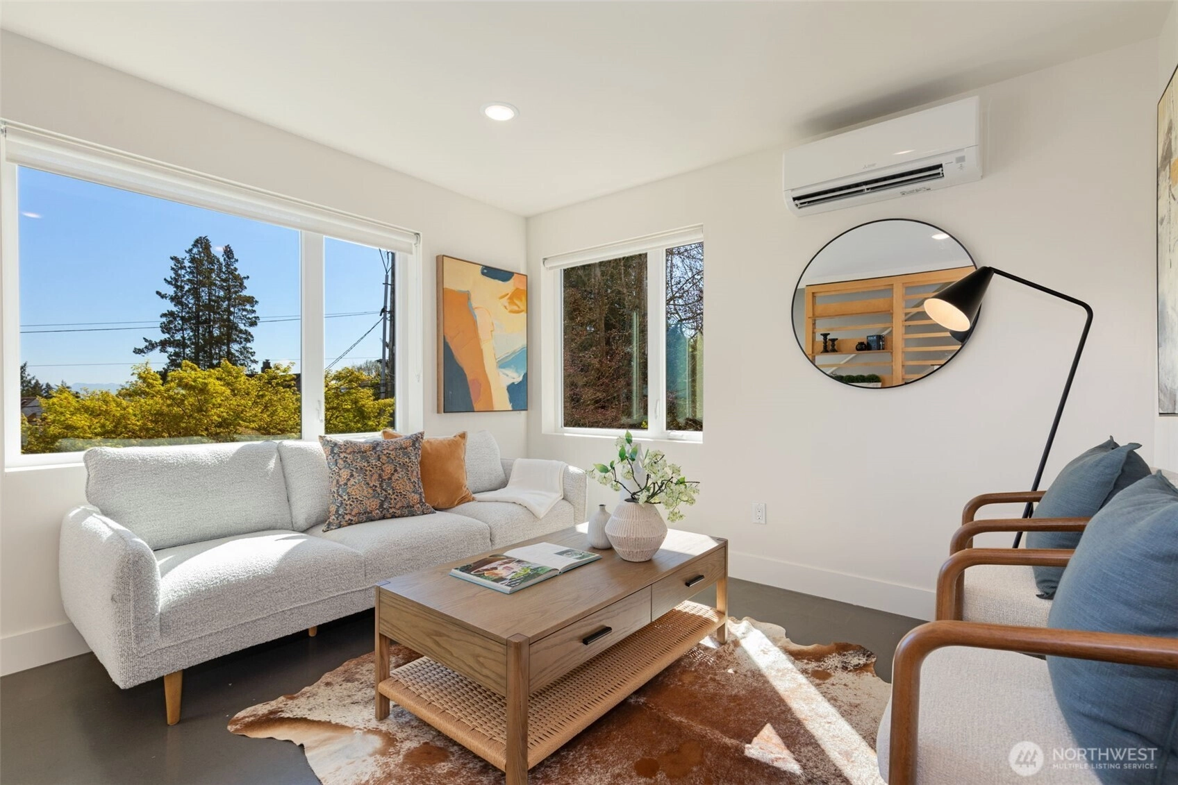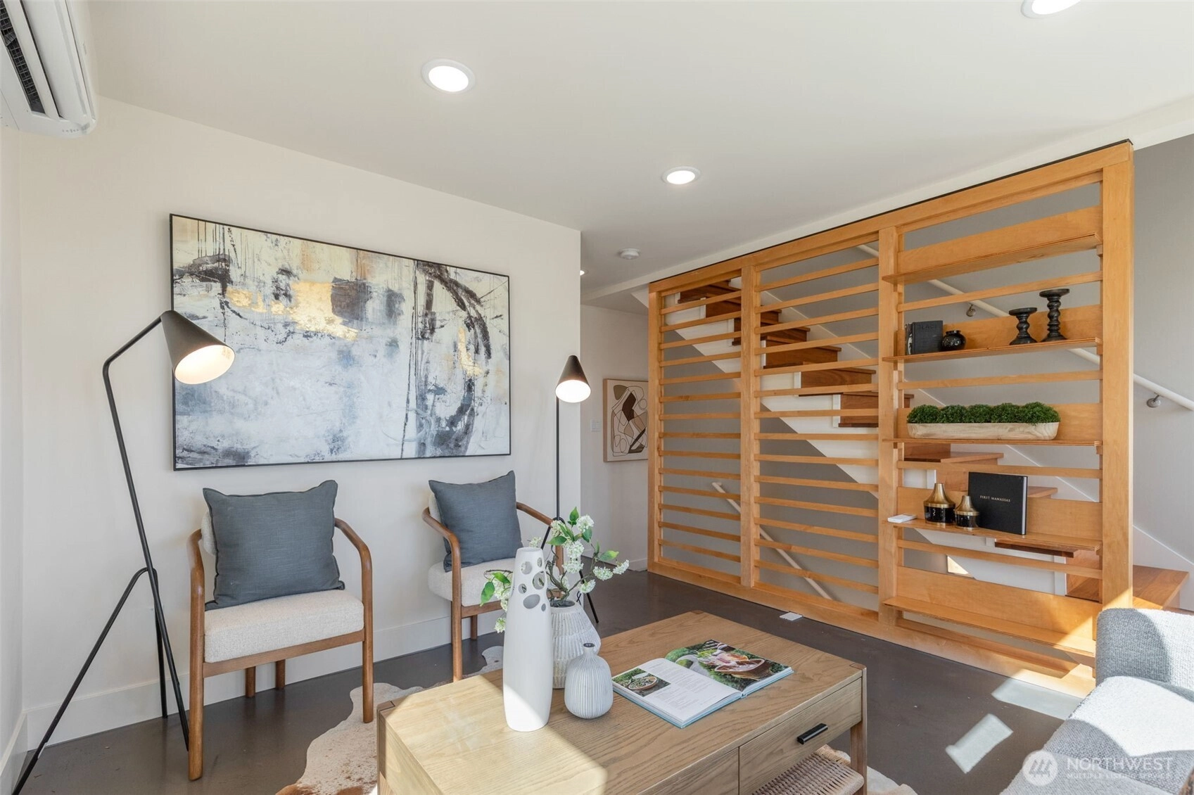 Peacefully sited just blocks from the vibrant amenities of North Capitol Hill, this exceptional townhome offers rare versatility and seamless indoor-outdoor living. The main level features a spacious, modern kitchen with Wolf/Sub-Zero appliances, an eating bar, and open dining and living areas that flow to a serene patio—perfect for gardening or entertaining. Upstairs, the second level includes a generous office, guest bedroom, and full bath. The top floor is dedicated to a stunning primary suite with a walk-in closet, spa-inspired bath, and a private balcony showcasing Bellevue, lake, and mountain views. The lower level adds flexibility with a bonus room ideal for a media space, gym, or additional office, plus a true laundry room and abundant storage. Step outside the lower level to your secure garage parking with EV charging. Enjoy peace of mind in a well-maintained, energy-efficient community with recent siding and envelope upgrades (2021) and rainwater recycling. Leave your car in the garage and stroll through Volunteer Park across the street or head down charming 15th Ave to the many restaurants and cafes plus connections to multiple transit options.