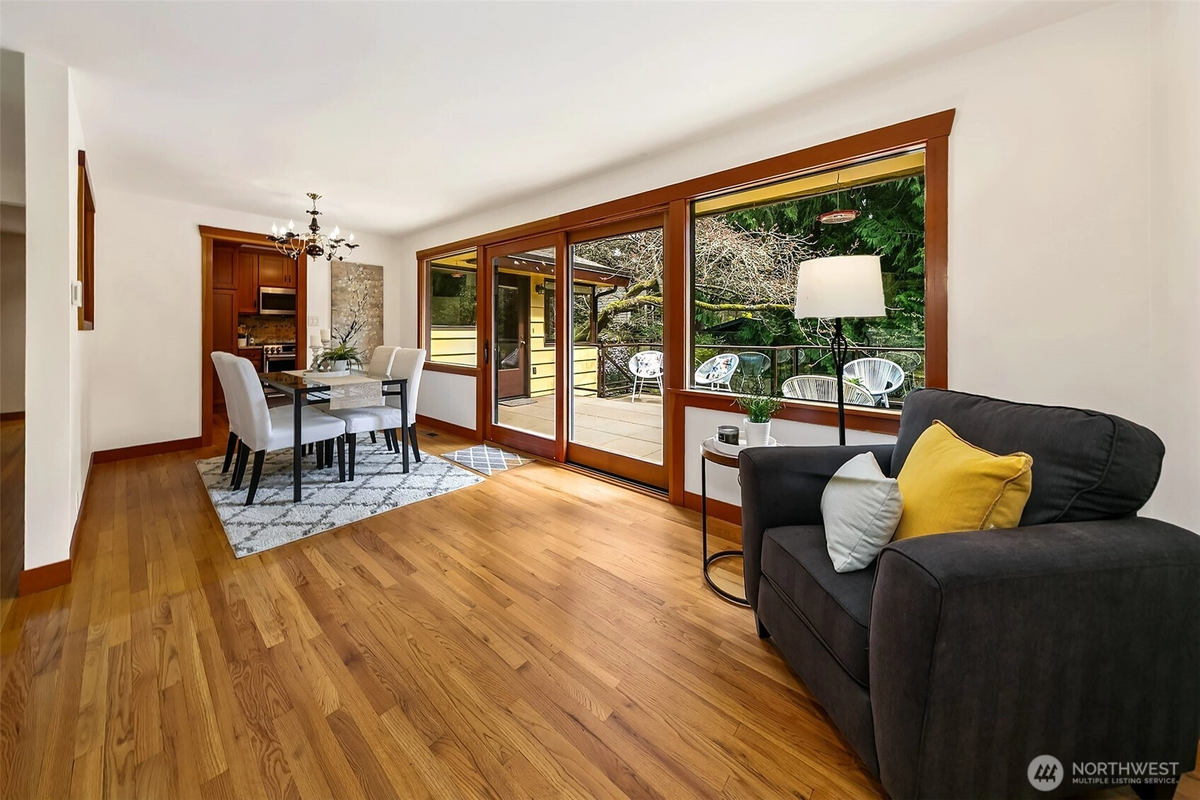 Nestled in a quiet Richmond Beach neighborhood, just blocks from Saltwater Park and surrounded by greenery, this classic beauty is ready to welcome you home! Spacious upper level is full of inviting spaces and period touches. Let the exposed brick fireplace and feature wall guide you to bright and welcoming living room! With gorgeous hardwoods floors & flooded with natural light from wood wrapped picture windows, you’ll want to stay a while! Dining room features huge windows and slider to sunshine drenched deck, perfect for dining al fresco or soaking in your peaceful and verdant surroundings. Beautifully appointed kitchen will check all your boxes with granite countertops, stainless appliances, storage galore, natural light and easy access to deck! Just down the hall, find 2 lovely bedrooms, ¾ guest bathroom and Primary suite with full bathroom. Recently remodeled, daylight lower level, with fireplace, is bright and welcoming! Perfect for game nights/movie nights or hosting friends! Walk out to covered patio and magical backyard. Plus-laundry, ½ bathroom, wine storage and oversized 2 car garage! Well maintained, with A/C, fresh paint, new carpet & more... you've found the ONE!