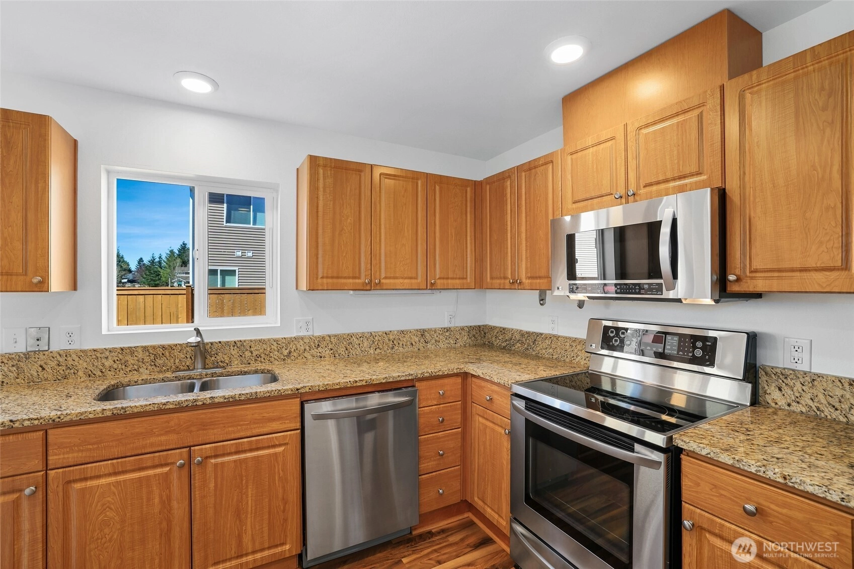 Tucked away on a quiet dead-end street in a welcoming Maple Valley neighborhood, this beautifully updated 2-bedroom, 2.5-bath home offers the perfect blend of comfort, style, and convenience. The interior was just completely and professionally painted throughout, the interior feels crisp and move-in ready, complemented by a modern kitchen that shines with both function and design. The inviting living area is open to the island kitchen and dining area and is filled with natural light from the home’s stunning westerly exposure—perfect for enjoying warm, sunset-filled evenings. Step outside to a fully fenced backyard with an extended patio, ideal for entertaining, relaxing, or letting pets play. Upstairs, you’ll find a thoughtfully designed layout with 2 bedrooms and 2 bathrooms, one with a walk in closet! There is also a versatile alcove—perfect for a home office or desk space—along with the convenience of an upstairs laundry room. Additional highlights include a spacious 1-car garage with ample driveway parking and a brand-new roof installed in October 2024—providing peace of mind for years to come. Located just minutes from 4 Corners shopping area and there is a a community park featuring dog area and playground, this home offers both tranquility and accessibility in one of Maple Valley’s most desirable area. Tahoma Schools!