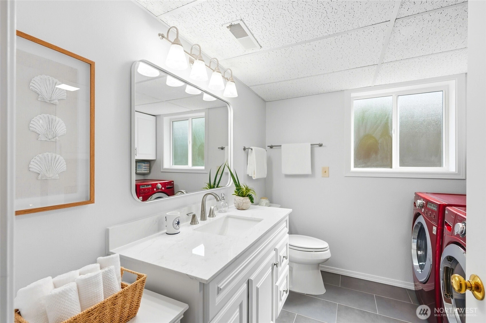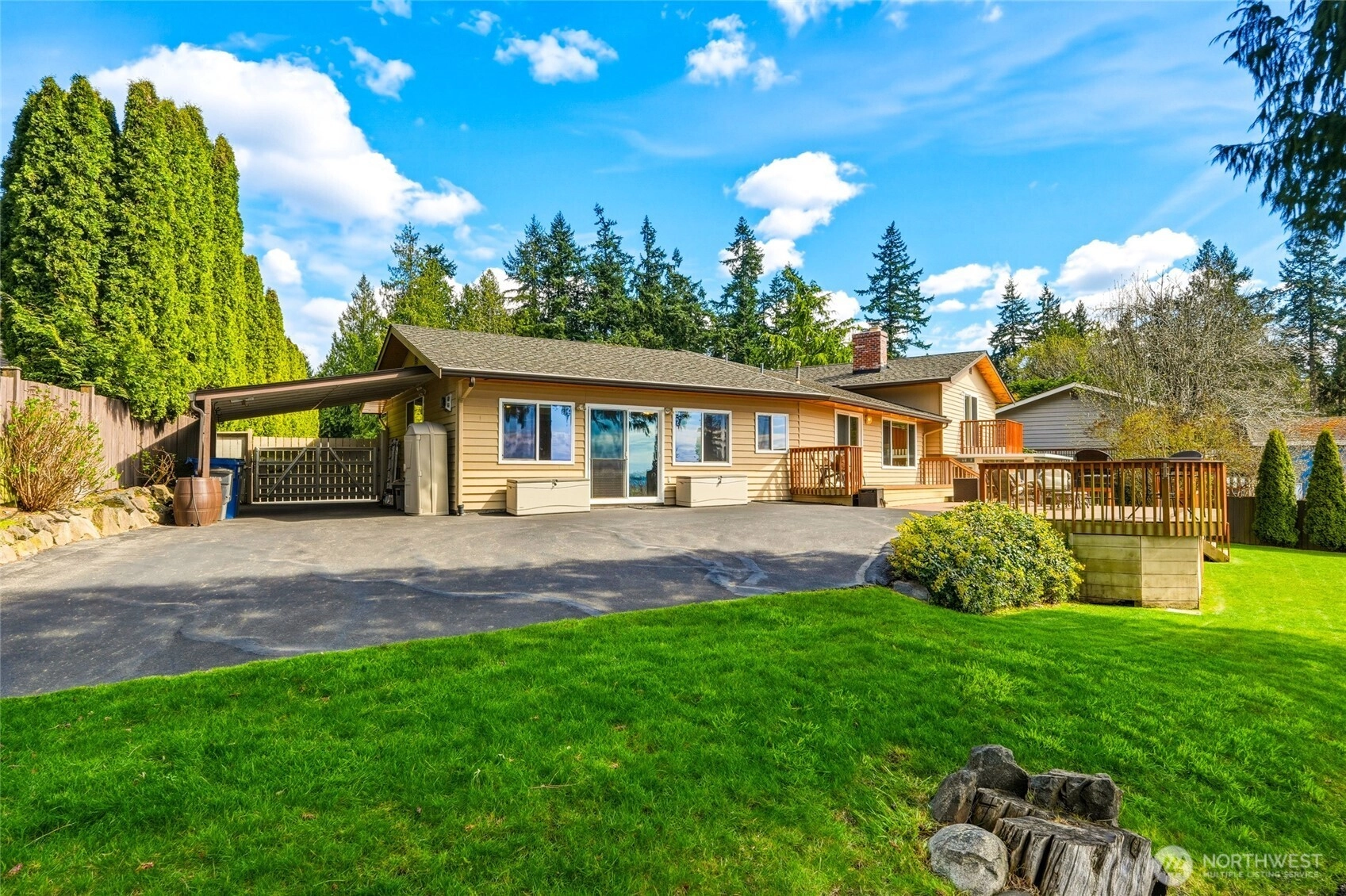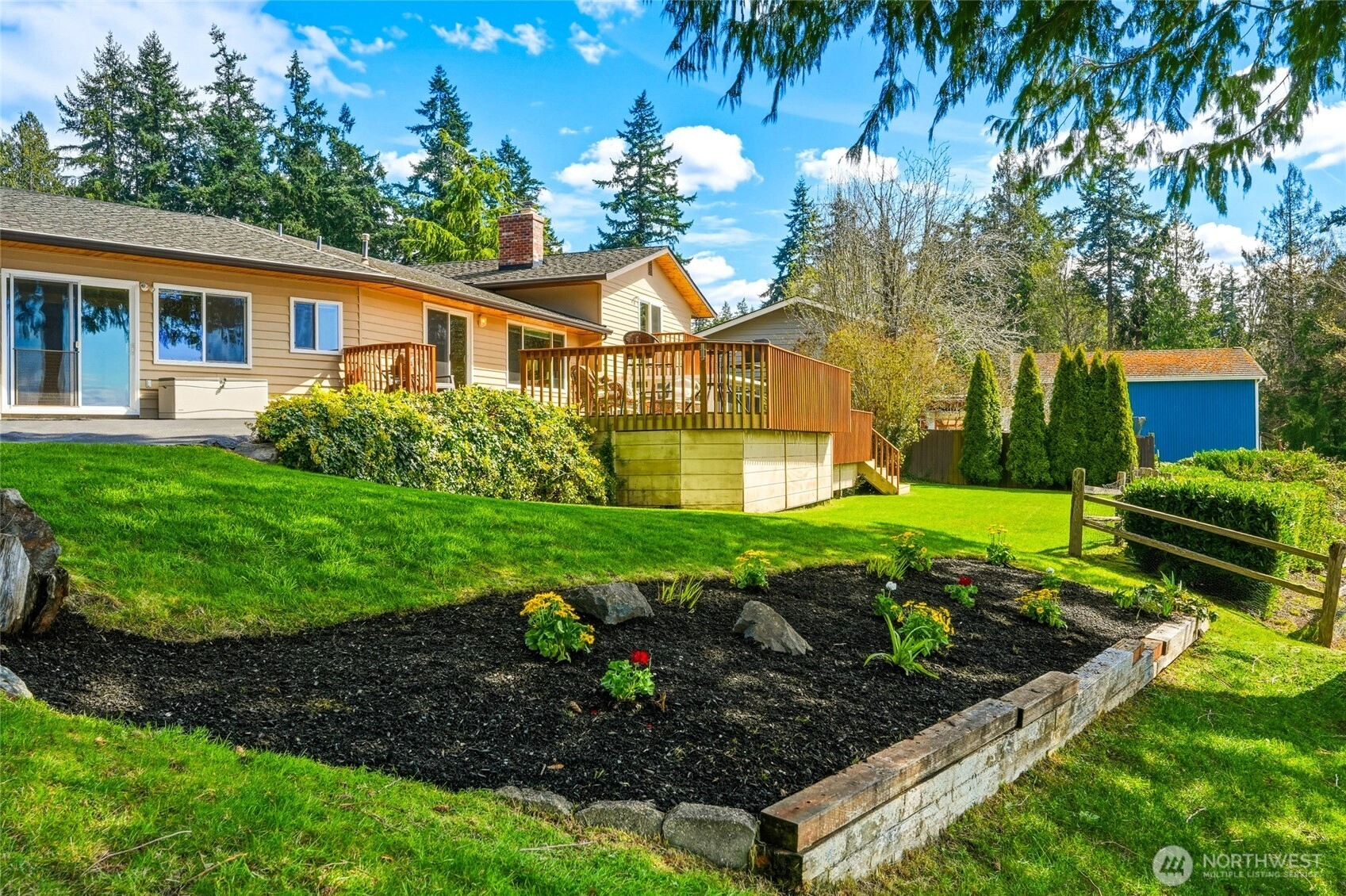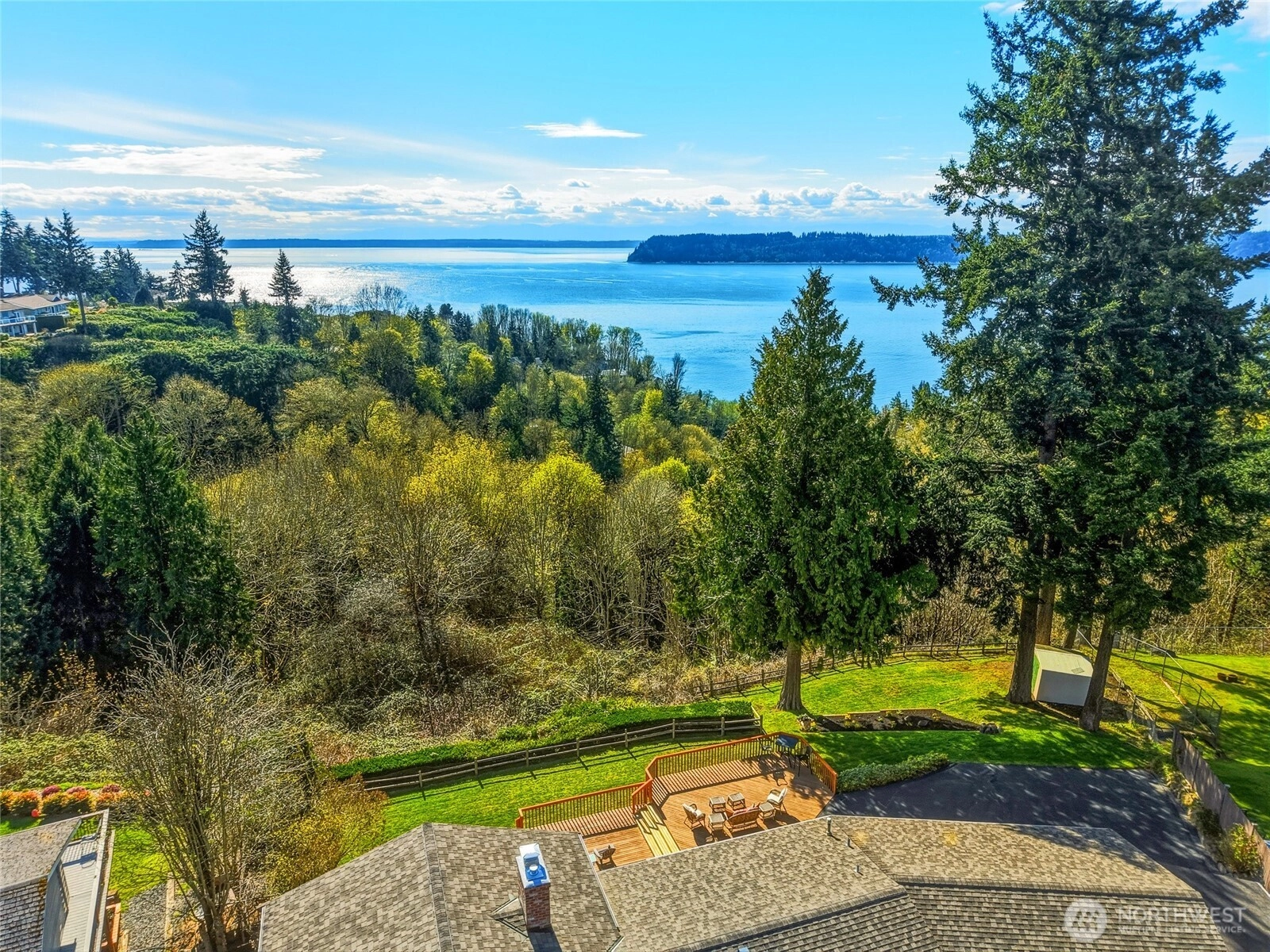 Discover a rare blend of luxury, privacy, and unforgettable Northwest beauty in this exceptional 4 bedroom, 3 bath view home set on a sprawling .76 acre lot. Tucked away on a quiet dead-end cul-de-sac in the highly sought-after Mukilteo School District, this remarkable property offers 2,356 square feet of thoughtfully designed living space framed by sweeping views of the Sound, the Olympic Mountains, and the southern tip of Whidbey Island. The beautifully updated kitchen is both stylish and functional, featuring newer cabinetry, quartz countertops, tiled backsplash, stainless appliances, gas cooktop, undermount stainless steel apron sink, and a moveable island ready for everyday living or effortless entertaining. The primary suite is a true retreat with a private bath and its own veranda deck where the views steal the show. Downstairs, a spacious second primary suite offers ideal flexibility for guests or multi-generational living, alongside a bathroom with laundry and a generous bonus room with gas fireplace and access to the attached sun room. Outdoor living shines with a multi-tiered entertainment deck, fully fenced grounds for your furry friends, large level driveway, and RV parking. A fully finished 575 sq ft garage, Presidential 50-year roof, gas furnace, gas fireplaces, gas hot water tank, pre-inspection already completed, and an incredible setting combine to create a home that is as impressive as it is inviting.