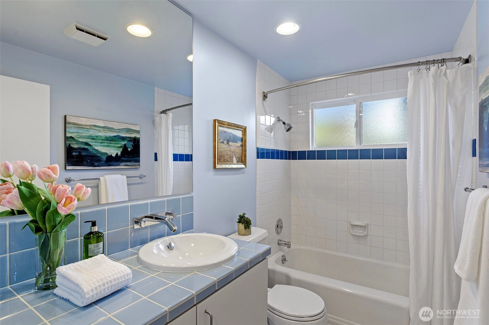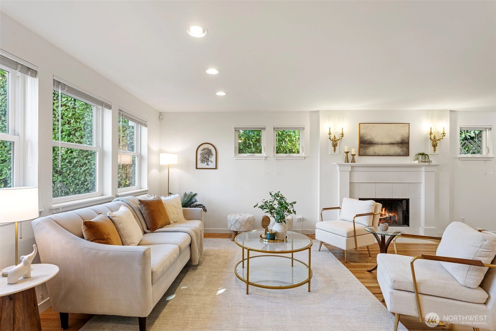 This beautifully reimagined 1955 Bryant home blends timeless mid-century charm with thoughtful modern expansion. A desirable main-floor layout features a stunning updated chef kitchen, convenient main-level bedroom suite, 2nd bedroom & bathroom, all while preserving the home’s original character. Upstairs features a 2nd primary suite & bedroom/office, creating flexible or multi-generational living. Enjoy the stunning Mt. Rainier view from the upstairs! Space & flow are maximized throughout with custom built-ins that add both beauty & smart storage. An additional eating nook seamlessly connects to outdoor living, making everyday life & entertaining effortless. The former garage has been converted into a versatile workshop, complemented by a separate laundry/utility room. The backyard is designed for gathering & relaxation, featuring a newer hot tub & an enchanting little reading cottage. Solar panels & A/C provide energy efficiency & year-round comfort. Ideally located in highly desirable Bryant with easy access to parks, playfields, & Magnuson Park. Enjoy walkability to nearby shops & eateries, sought-after schools, and an easy commute in every direction. A rare opportunity to own a beautifully expanded mid-century home in one of NE Seattle’s most beloved neighborhoods. This is more than a house — it’s a place to gather, grow & truly feel at home.