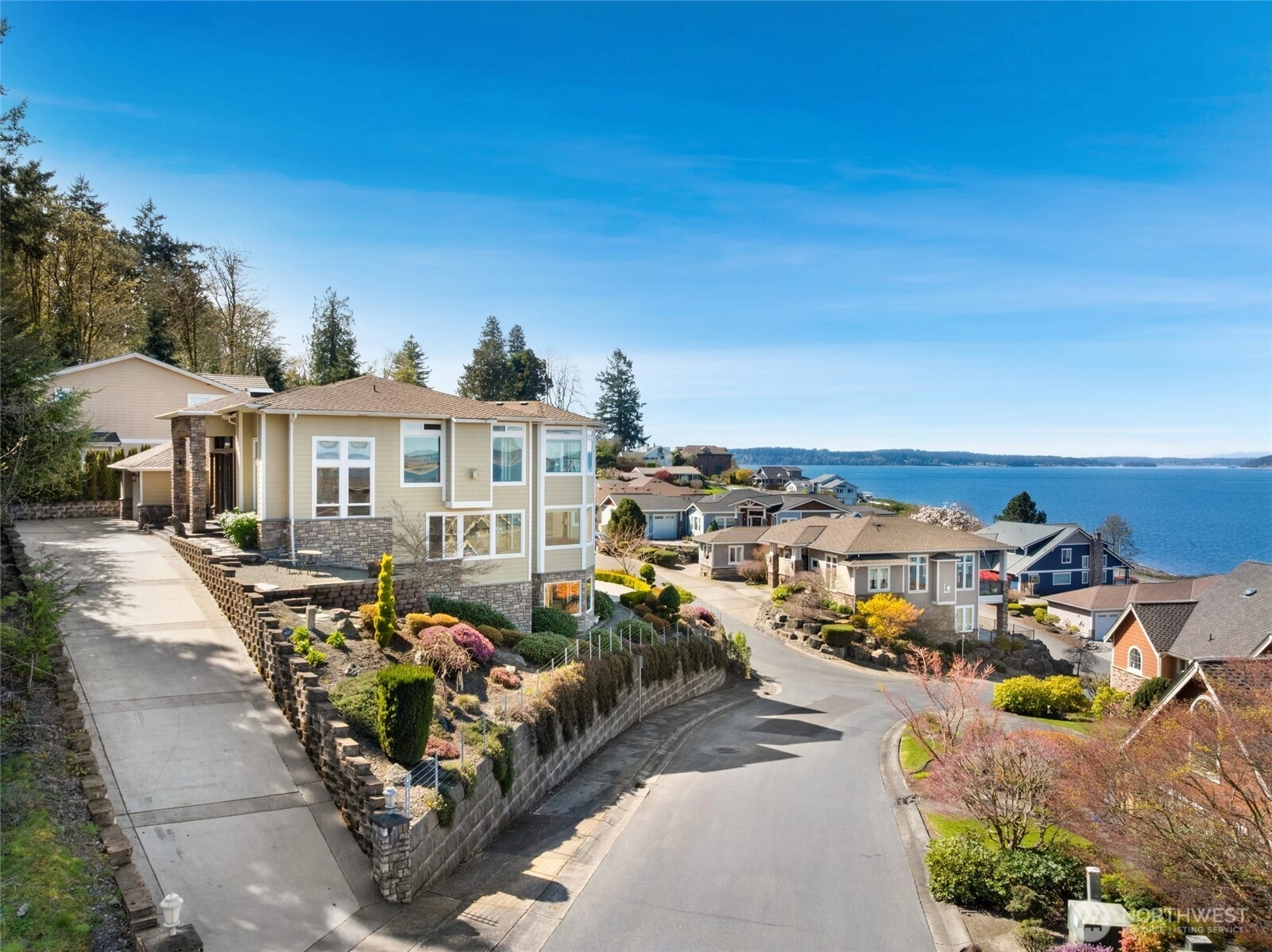 Refined elegance meets the charming quaint city of Steilacoom. Truly a one of kind property nestled into the hillside that provides sweeping views of Puget Sound, Olympic Mt's & Islands from every vantage point. At modest 8,283sq ft, this statement piece of a home features 2 separate units in one. Featuring separate entrances for both, each with its own 2-bay garage. Enter through the grand top-floor entrance into an impressive foyer w/a dual staircase, soaring ceilings, & a dazzling Swarovski chandelier that instantly sets the tone for something special. Off the foyer is an elegant office w/a wood desk & custom built cabinetry. Up the grand staircase, is an open-concept kitchen featuring top-of-the-line appliances, a formal living & dining room, a spacious family room, & a media room complete w/a one-of-a-kind secret door. The middle level features an indoor hot tub retreat w/oversized windows that capture panoramic views. This floor includes a luxurious owner’s suite, complete w/a spa-inspired 5-piece en-suite bath that makes every day feel like you just woke at the Four Seasons. Is there more? Perhaps, modest was an understatement... Yes, there is an entire LL MIL suite (1650sq ft - 2bdrms, 2.5 bth) that features similar amenities to the top floor & wine cellar. Hidden gems around every corner, featuring EV charging & a custom, whisper-quiet Unico heating & cooling system. Welcome to the pinnacle of living in one of the Pacific Northwest’s most charming hidden gem cities.