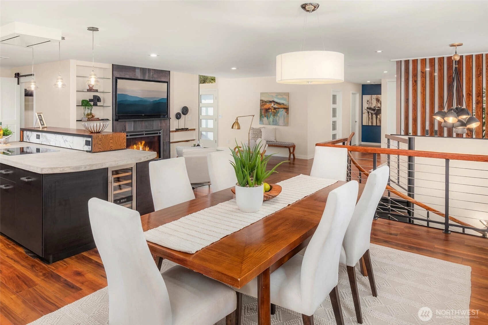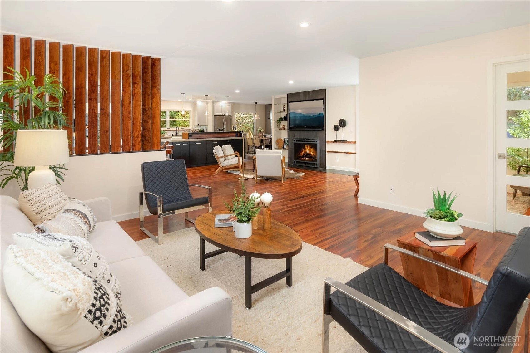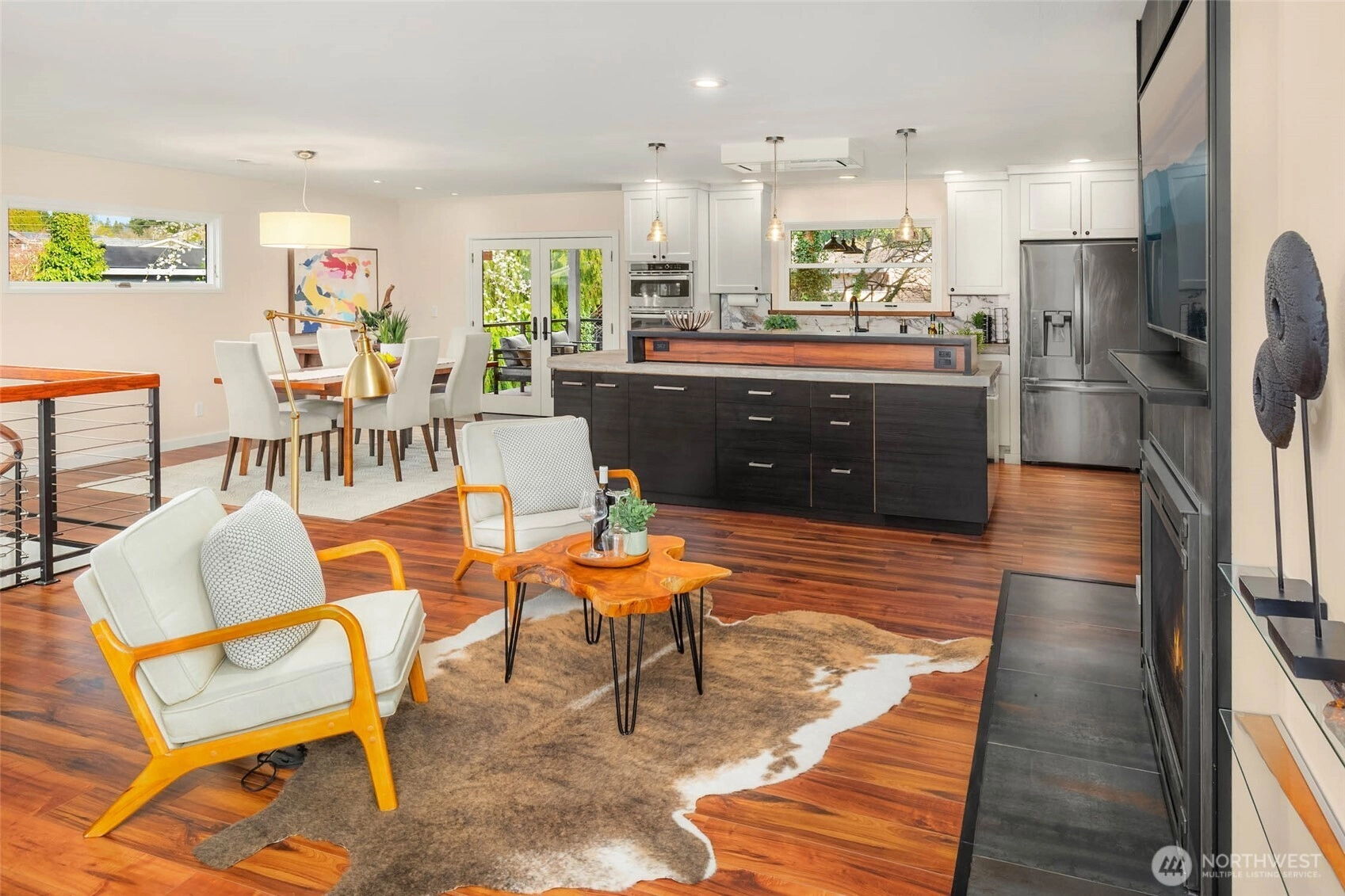 A masterclass in modern luxury, a fully reimagined residence taken down to the studs & rebuilt to today’s highest standards. Originally built in 1963, every detail thoughtfully curated to live like new while maintaining warmth & character. A no-stair entry, expansive front deck, clean architectural lines, and refined finishes create a welcoming first impression. Inside, natural light fills the open-concept layout, anchored by a gas fireplace. The chef’s kitchen features custom concrete countertops, professional-grade ventilation, and a statement island w/ abundant storage. The main level includes a private office with built-ins, a guest retreat, an accessible bath, custom storage, layered lighting, voltaic film windows, & intentional sightlines. A sculptural spiral staircase leads to the private lower level, featuring a luxurious primary suite w/ gas fireplace, and spa-inspired bath with heated floors, soaking tub, dual vanities, and multi-head shower. Remodeled extensively to an exceptional level of infrastructure and efficiency. All new electrical, plumbing, gas lines, insulation, windows, doors & more. A high-efficiency mini-split system, on-demand recirculating hot water, and advanced ventilation & circulation systems. Outdoors, enjoy tiered landscaping, hardscaping, private patio, & firepit area. Low-maintenance plantings provide year-round greenery with minimal upkeep. A rare combination of thoughtful design, modern convenience, and elevated luxury. Truly exceptional!