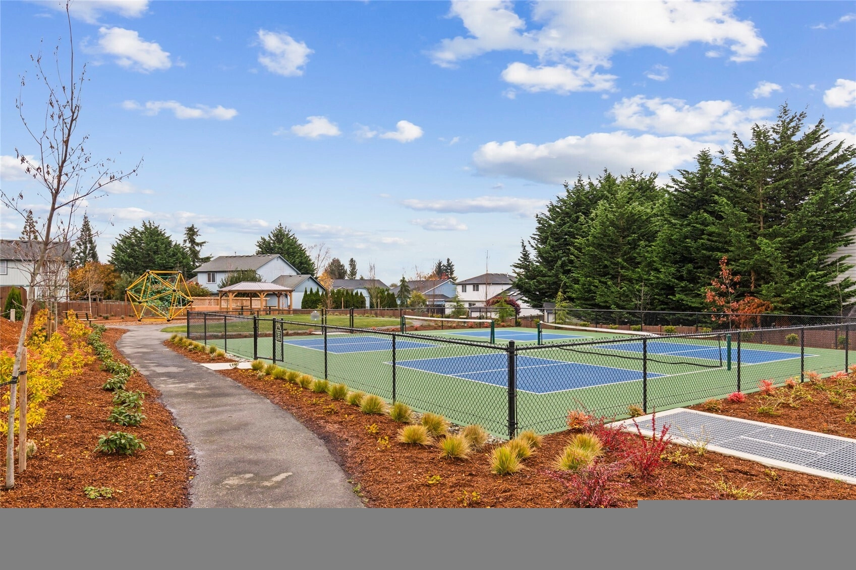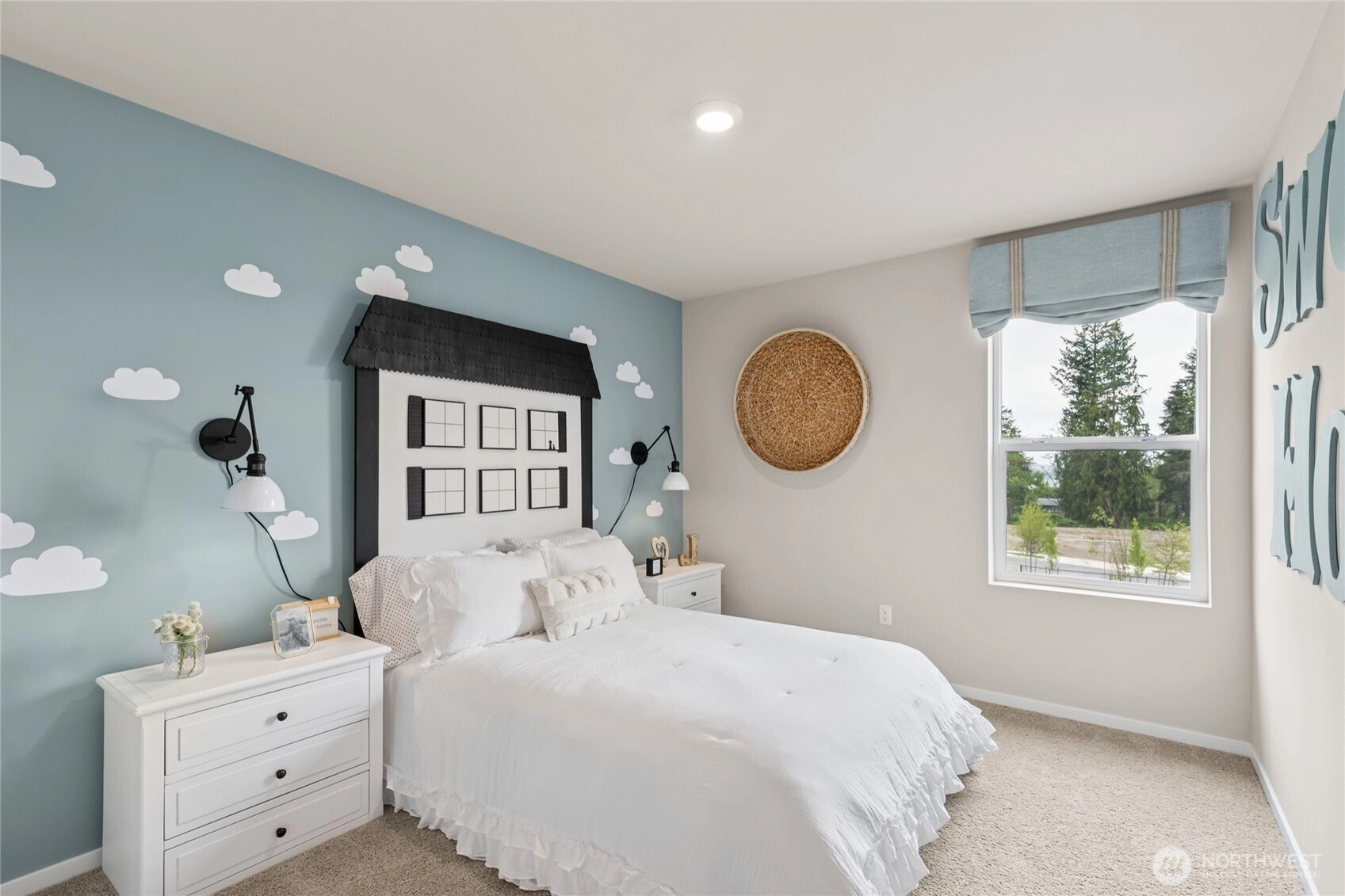 Bridgewater at Bakerview Phase 2 welcomes you to a vibrant Stanwood community featuring pickleball courts, a basketball court, playgrounds, picnic structures, and inviting tree-lined sidewalks—perfect for outdoor activities and social gatherings. Inside this spacious home, you'll discover a highly sought-after main floor bedroom paired with a ¾ bath, offering flexibility for guests or multigenerational living. The home is elegantly finished with light-colored painted cabinets and laminate flooring, creating a bright and welcoming atmosphere. Enjoy year-round comfort thanks to air-conditioning, while a 240Volt outlet in the garage provides convenient charging for electric vehicles. Effortless control of your home is at your fingertips with an advanced automation package. The kitchen boasts timeless appointments, including a large island, stainless steel appliances, and slab quartz counters, making it both stylish and functional. Additional perks include a 1-2-10 year builder warranty, a generous $20,000 buyer bonus, and below-market interest rates available through DHI Mortgage for qualified buyers. Buyers are reminded to register their broker onsite at their first visit, including open houses.