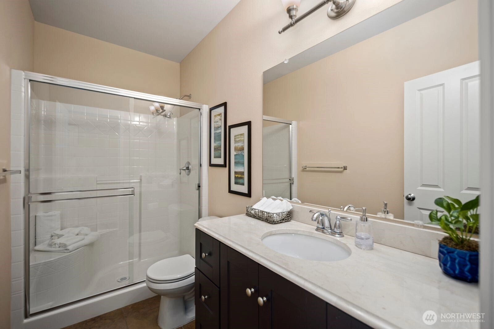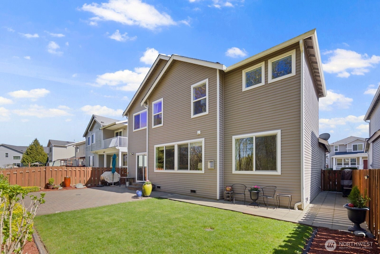 Experience the perfect blend of elegance and tranquility in this light-filled 5-bedroom Craftsman, nestled in the sought-after Creekside on Riverview community. The home’s centerpiece is a custom-designed chef’s kitchen, anchored by a commercial-grade 6-burner gas range and professional hood, complemented by rich cherrywood cabinetry, slab granite counters, and upscale stainless appliances. Designed for modern versatility, the main level features a secluded bedroom and adjacent three-quarter bath, offering an ideal setup for a long-term guest suite, private home office, or accessible main-floor living. The upper level is highlighted by an expansive Primary Suite with a spacious walk-in closet and generous 5-piece bath, plus three additional bedrooms, a full bath, and a convenient laundry room. The open-concept Great Room flows seamlessly to a private, level backyard where a brick-paved patio overlooks a lush, quiet greenbelt. Parking is effortless with separate 2-car and 1-car garages, offering ample space for vehicles and storage. Residents enjoy premium amenities including a community playground and basketball court, with the Green River Trail system just moments away. This prime location offers effortless access to Southcenter's abundant shopping options, dining, transit, and the Sea-Tac Airport.