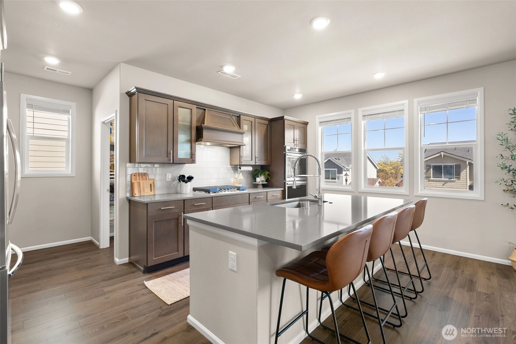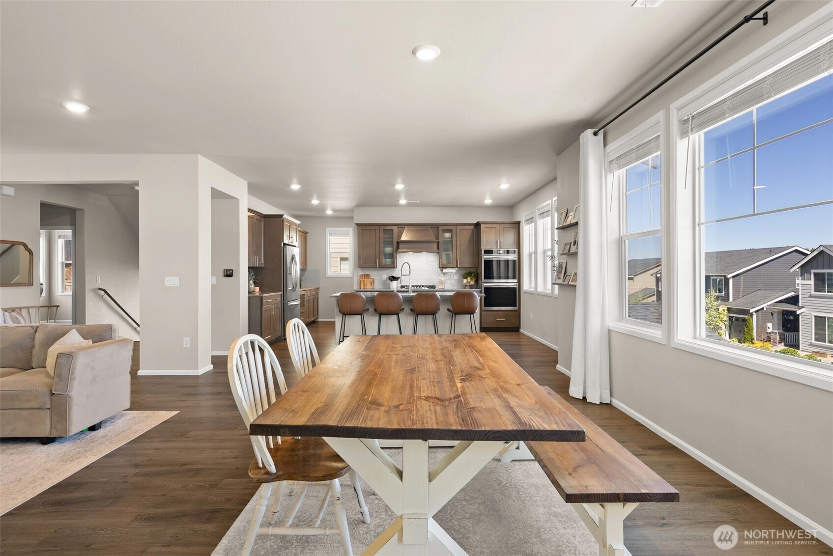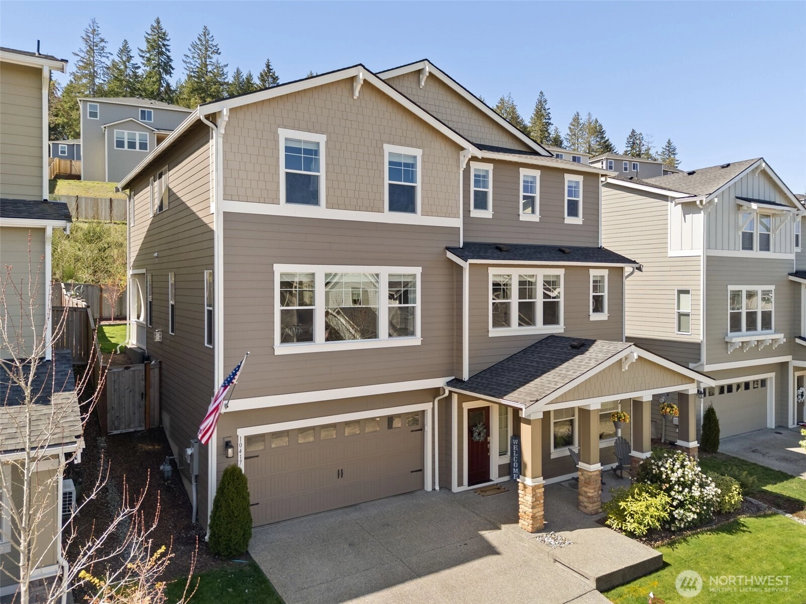 Beautiful, luxurious, meticulously kept home in one of Silverdale's most sought after neighborhoods; Sterling Hills Estates neighborhood. With over 3300 square feet, this flexible, well designed floorplan is the perfect blend of the comfort and convenience of everyday living, including A/C, with an ideal space for entertaining. Open concept where light abounds in the open living room and dining room, overlooked by the gorgeous and dreamy chef's kitchen with chic, wood cabinetry, Quartz countertops, SS appliances (gas stove!) and spacious walk-in pantry. The Primary Suite offers a peaceful,, yet stylish retreat with dual closets, and spa-like attached bath with soaking tub. 3 additional bedrooms, plus two full baths. Nice, sunny flat backyard is fully fenced, with the covered porch fully ready for hosting BBQ's and making memories. Sterling Hills neighborhood has several walking trails, 3 playgrounds and is ideally located in the award winning Central Kitsap School District.