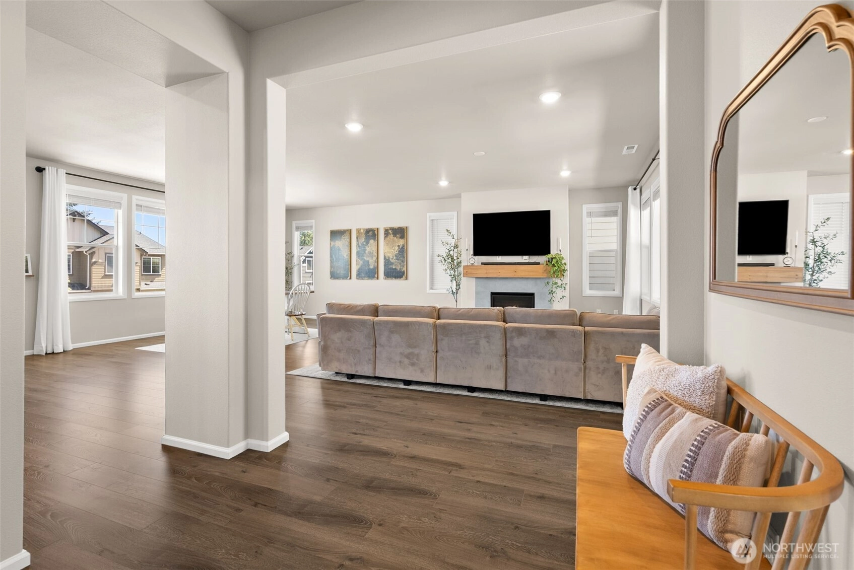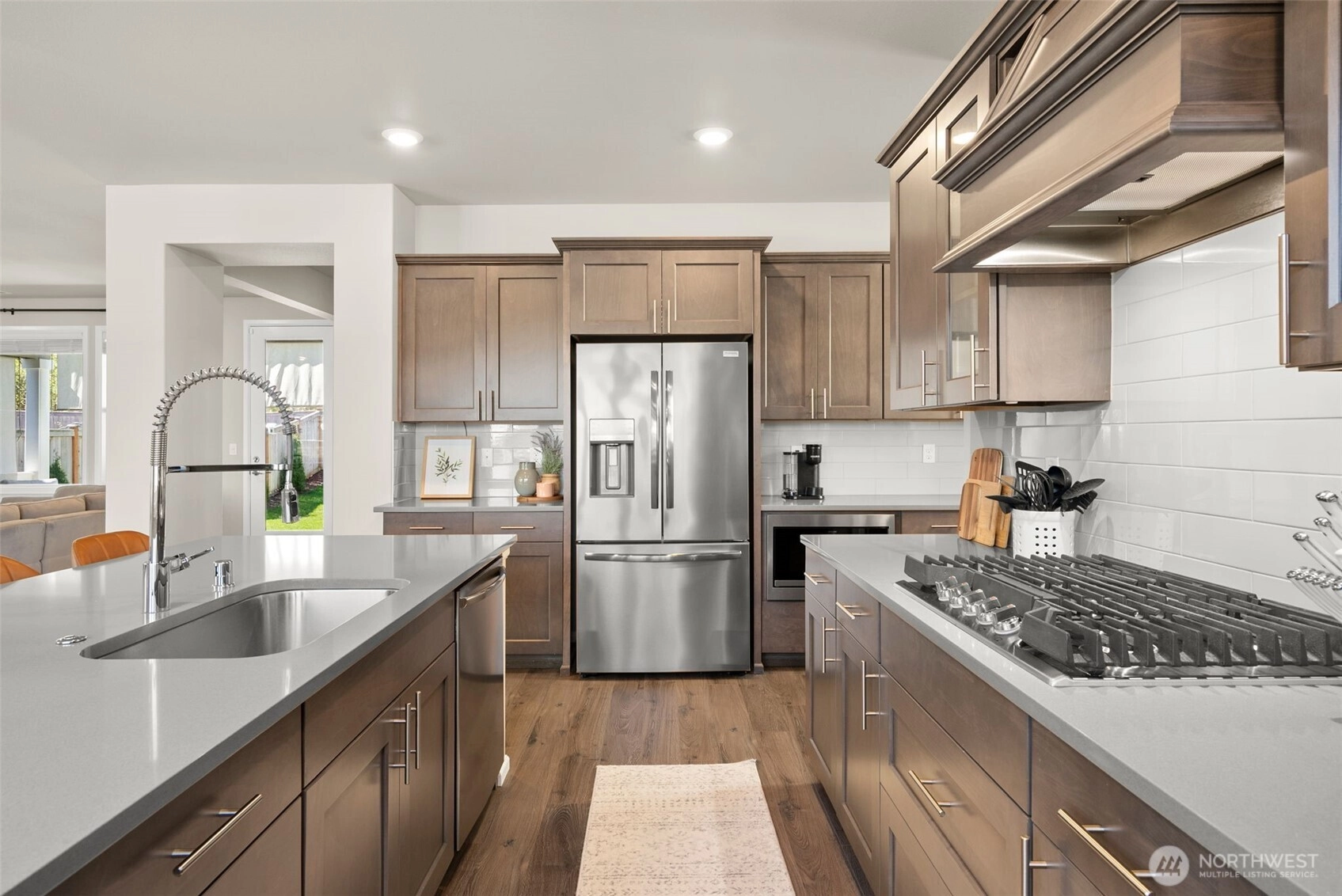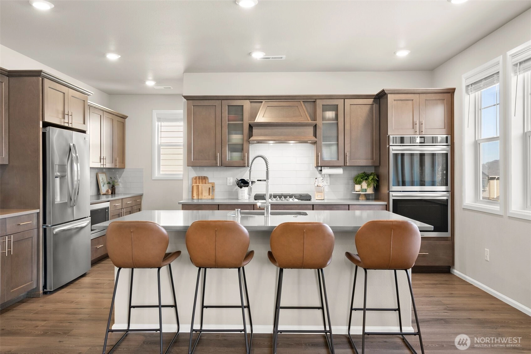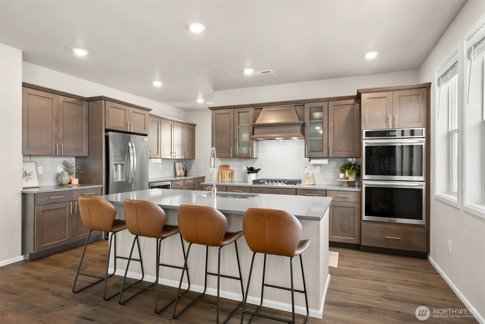 Beautiful, luxurious, meticulously kept home in one of Silverdale's most sought after neighborhoods; Sterling Hills Estates neighborhood. With over 3300 square feet, this flexible, well designed floorplan is the perfect blend of the comfort and convenience of everyday living, including A/C, with an ideal space for entertaining. Open concept where light abounds in the open living room and dining room, overlooked by the gorgeous and dreamy chef's kitchen with chic, wood cabinetry, Quartz countertops, SS appliances (gas stove!) and spacious walk-in pantry. The Primary Suite offers a peaceful,, yet stylish retreat with dual closets, and spa-like attached bath with soaking tub. 3 additional bedrooms, plus two full baths. Nice, sunny flat backyard is fully fenced, with the covered porch fully ready for hosting BBQ's and making memories. Sterling Hills neighborhood has several walking trails, 3 playgrounds and is ideally located in the award winning Central Kitsap School District.