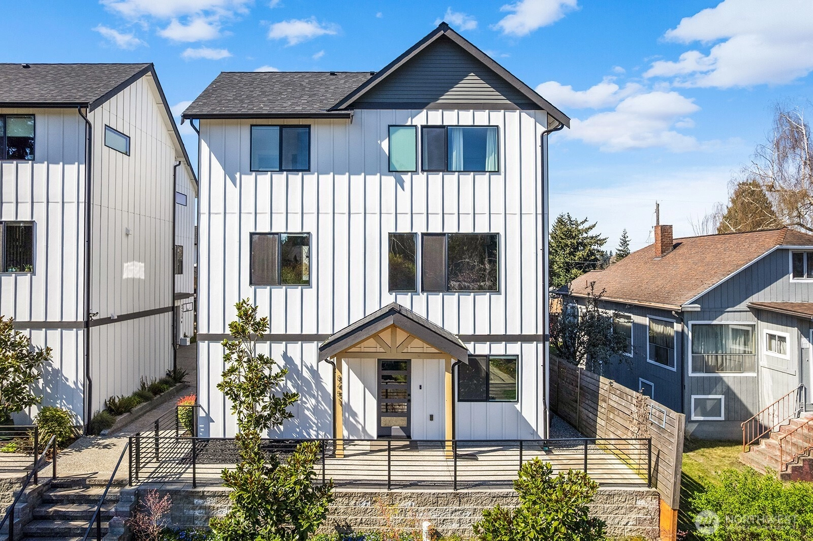 Welcome to this just like-new home built in 2023 in Highland Park of West Seattle. Home has a modern farmhouse vibe and is perched above the street, allowing glorious morning light to fill the space. Modern aesthetics throughout the home, with an open living and dining area. The kitchen has plenty of storage, SS appliances, and white quartz countertops. Primary suite with 2 walk-in closets w/ built-ins. There is a second en-suite bedroom on the third floor. Reading nook or office space on the 3rd floor. One-car garage off the alley, heated and wired for multiple TVs or gaming stations. The lower level has 2 bedrooms and a full bath. Entry to home is gated, and pet-friendly-there is a pet door off side yard! Plenty of room for your BBQ and storage off the gated front entrance. Low-maintenance front garden space. Close to H & C bus lines, Westwood Village, Westcrest Dog Park, and the vibrant White Center restaurant scene. A few miles from Puget Sound and downtown Seattle.