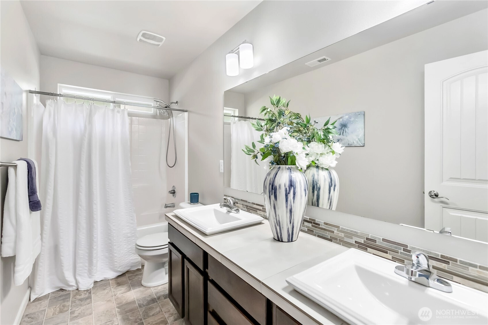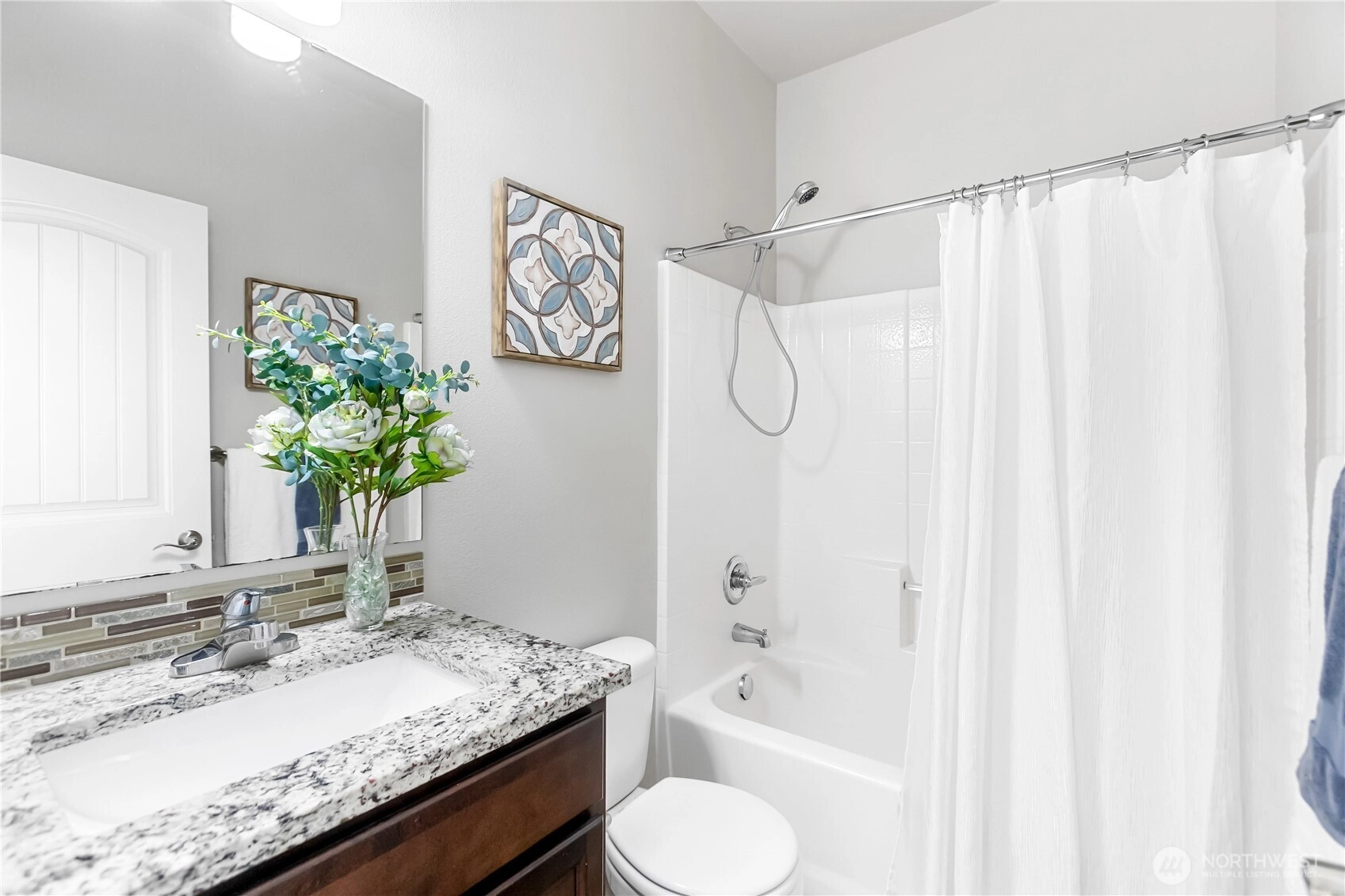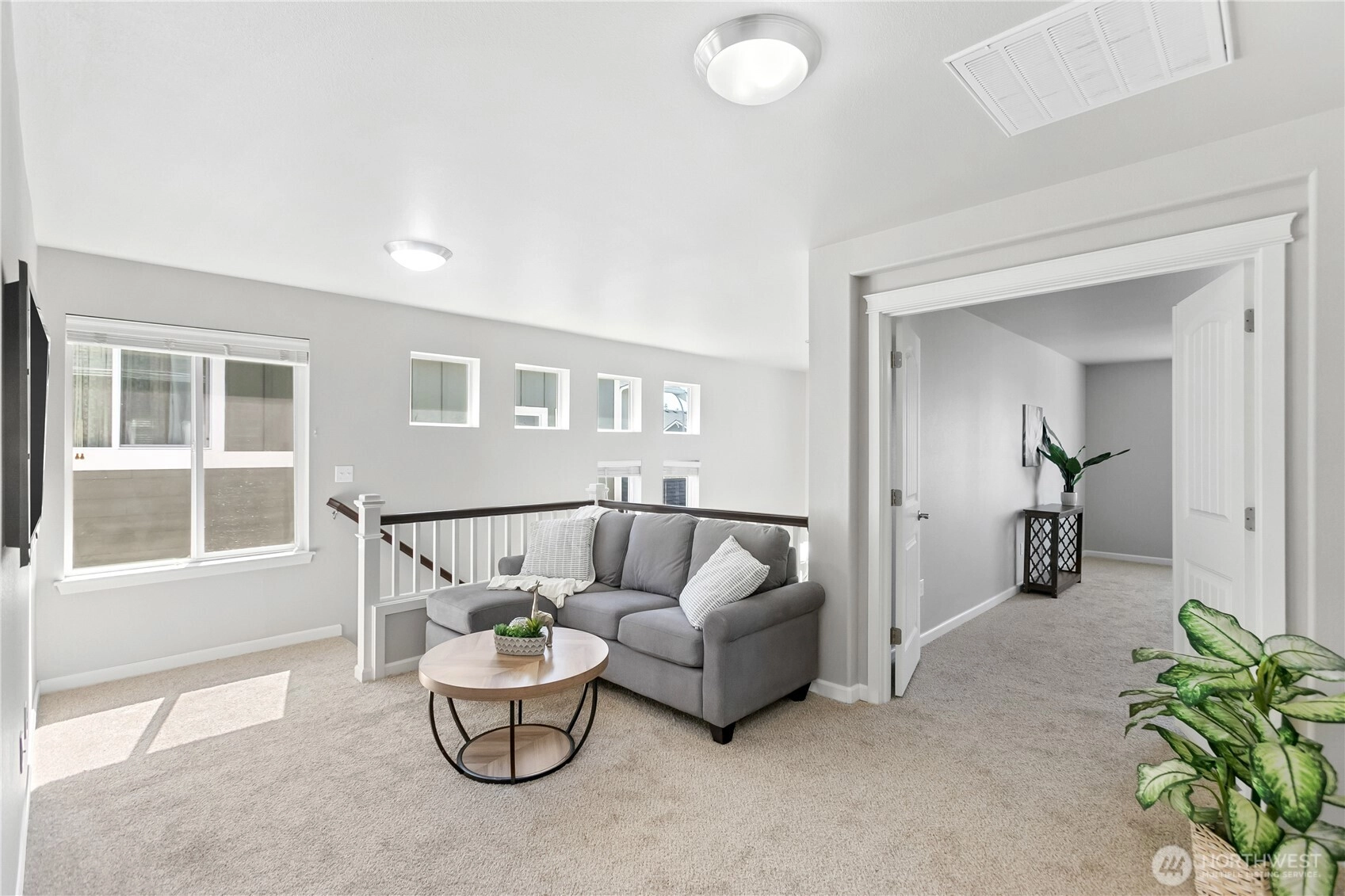 Welcome to the highly sought-after Freestone at Bayside! This beautifully maintained 4-bedroom home shines with brand-new carpets and an impressive vaulted entry that floods the space with natural light. The functional open floor plan is anchored by a cozy gas fireplace with elegant custom built-ins, perfect for gatherings. A versatile main-level den offers the ideal setup for a home office or guest space. Upstairs, discover a flexible loft and a spacious primary suite featuring a large walk-in closet and en-suite bath. Modern essentials include a tankless water heater and a dedicated laundry room. Step outside to your private, fully fenced yard and covered patio—perfect for year-round entertaining. Conveniently located near local parks, golf, highways, and easy commuting routes to nearby bases and ferries.