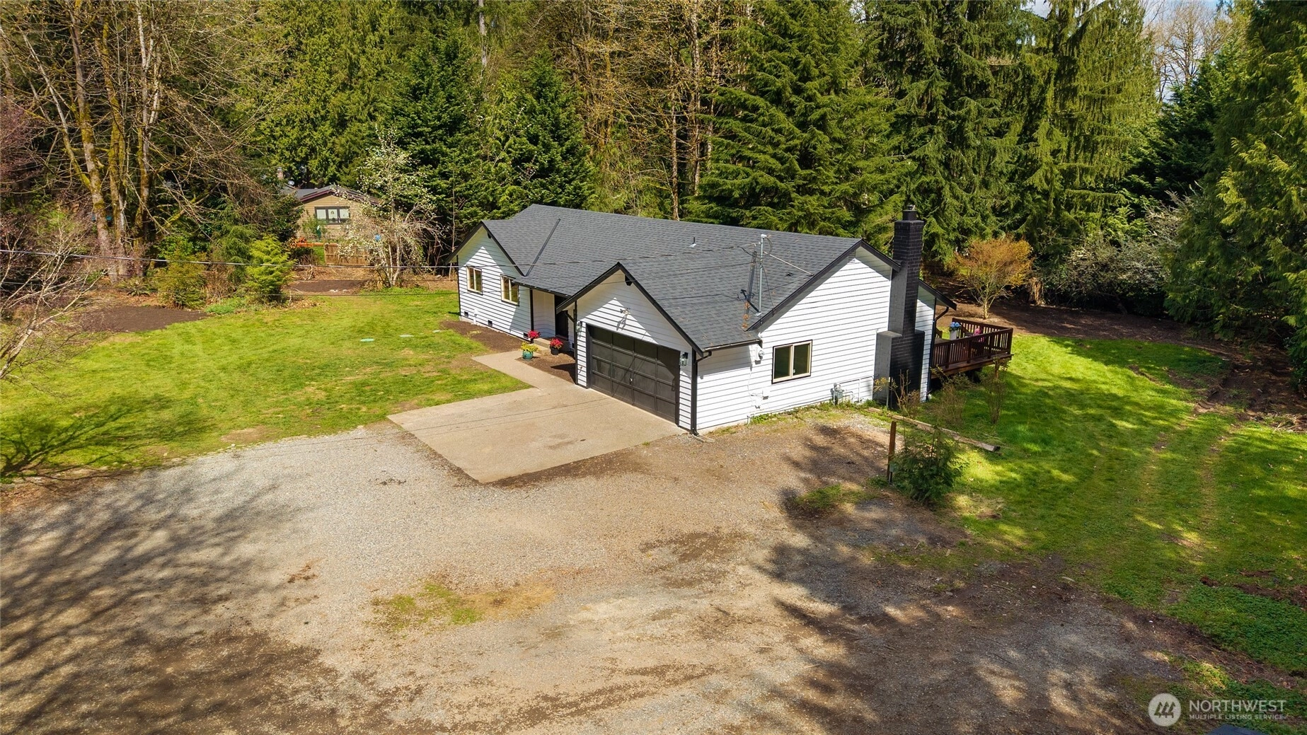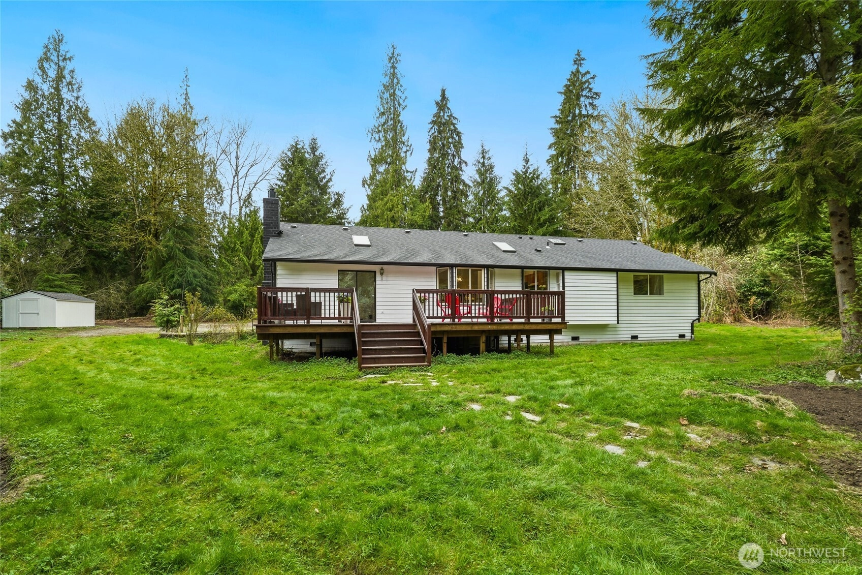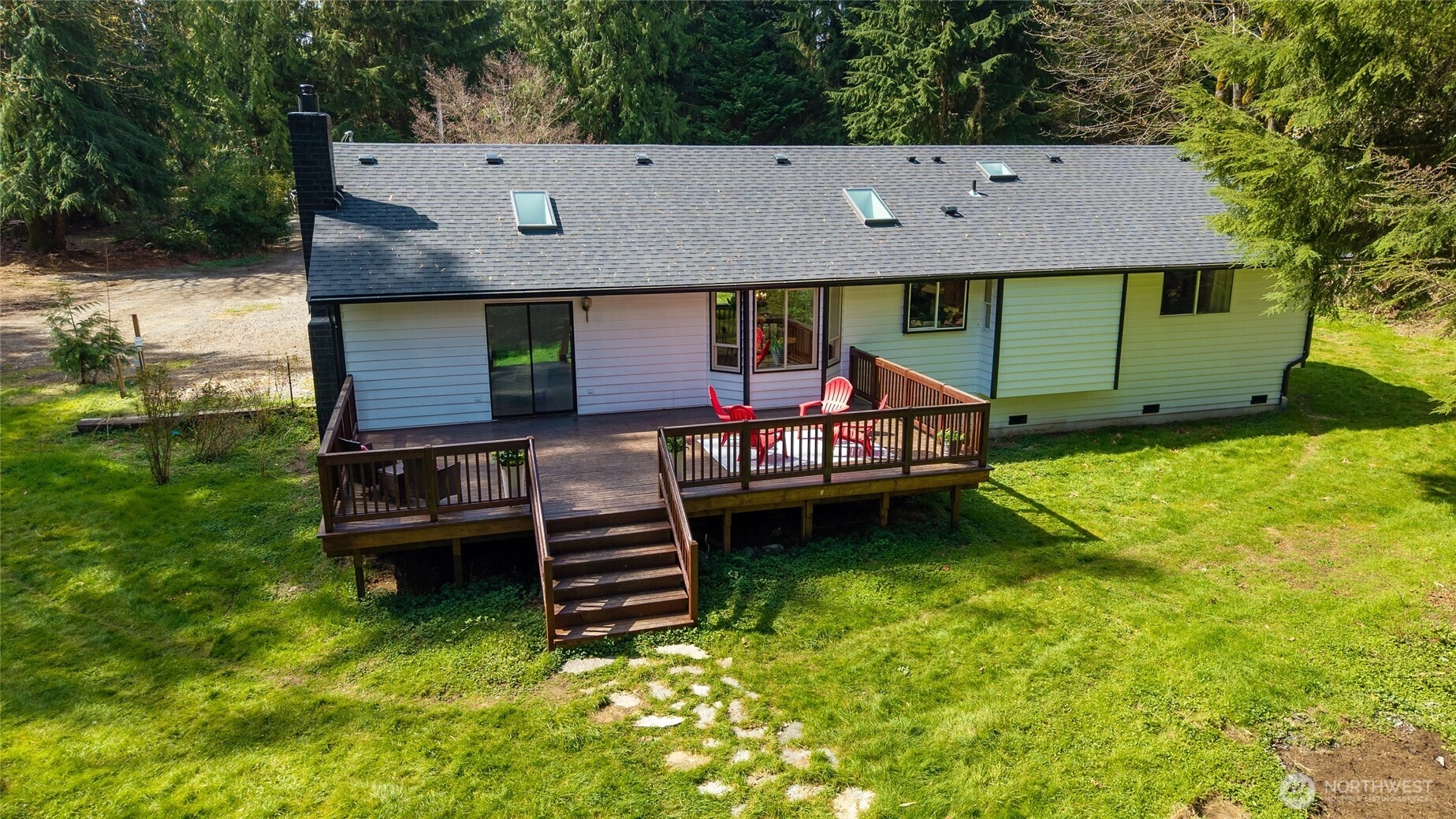 Feel the stress melt away as you enter your single level home in serene Echo Lake! This beautifully refreshed rambler offers 3 bedrooms and 1.75 baths with an easy, flowing floor plan. A welcoming living room plus a versitile family room with fire place and vaulted ceilings create areas for entertaining and relaxing while skylights provide additional light throughout. The dedicated dining space adjacent to kitchen is perfect for meals while enjoying the view from the bay window. Relax in the lovely front garden, or host summer BBQs on the 500+sf deck overlooking 1.51 acres. Bring your kayak, paddleboard or fishing gear to enjoy the lake life at both Lost Lake and Echo Lake! Outdoor lovers will appreciate being located near the many hiking trails. Minutes away you will find the Echo Falls Golf Course, wine tasting in Woodinville, or shopping and dining in the historic district of downtown Snohomish. Easy connection from hwy 522 to I 405.