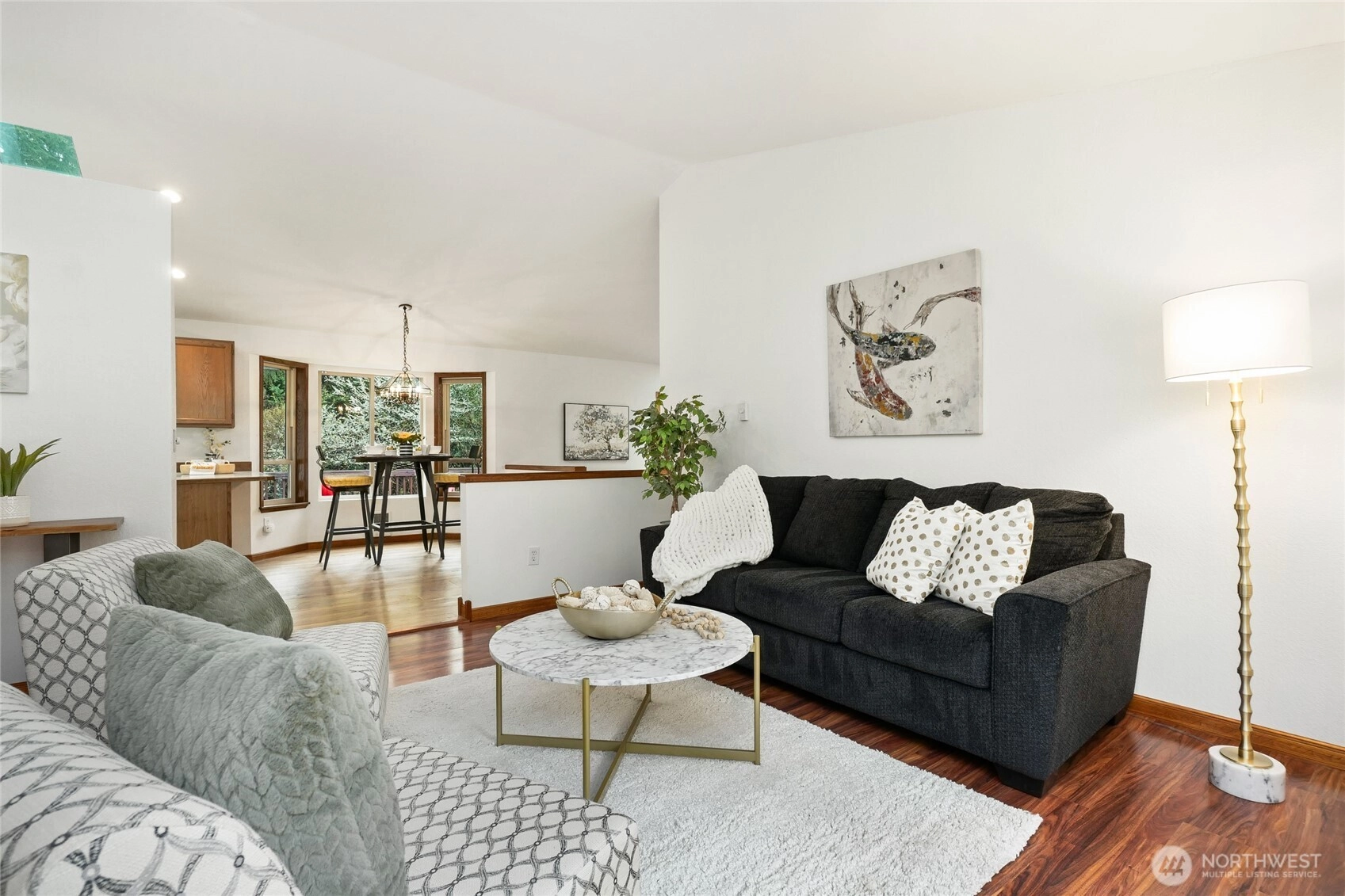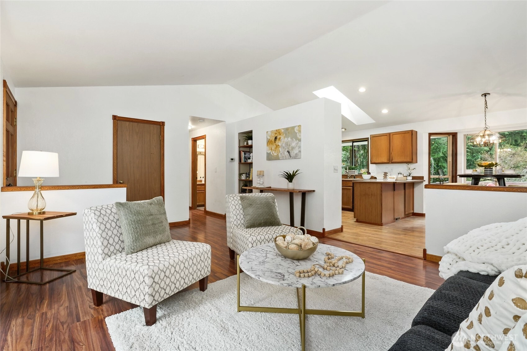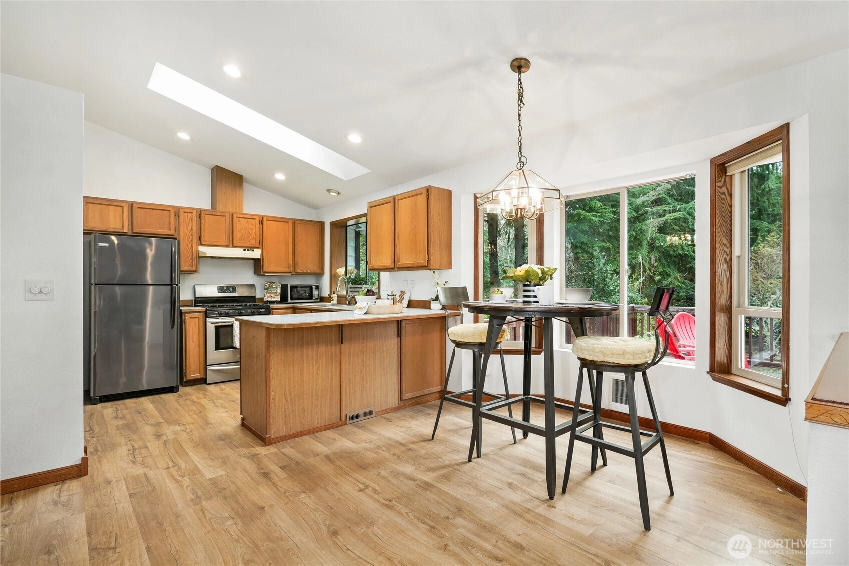 Feel the stress melt away as you enter your single level home in serene Echo Lake! This beautifully refreshed rambler offers 3 bedrooms and 1.75 baths with an easy, flowing floor plan. A welcoming living room plus a versitile family room with fire place and vaulted ceilings create areas for entertaining and relaxing while skylights provide additional light throughout. The dedicated dining space adjacent to kitchen is perfect for meals while enjoying the view from the bay window. Relax in the lovely front garden, or host summer BBQs on the 500+sf deck overlooking 1.51 acres. Bring your kayak, paddleboard or fishing gear to enjoy the lake life at both Lost Lake and Echo Lake! Outdoor lovers will appreciate being located near the many hiking trails. Minutes away you will find the Echo Falls Golf Course, wine tasting in Woodinville, or shopping and dining in the historic district of downtown Snohomish. Easy connection from hwy 522 to I 405.