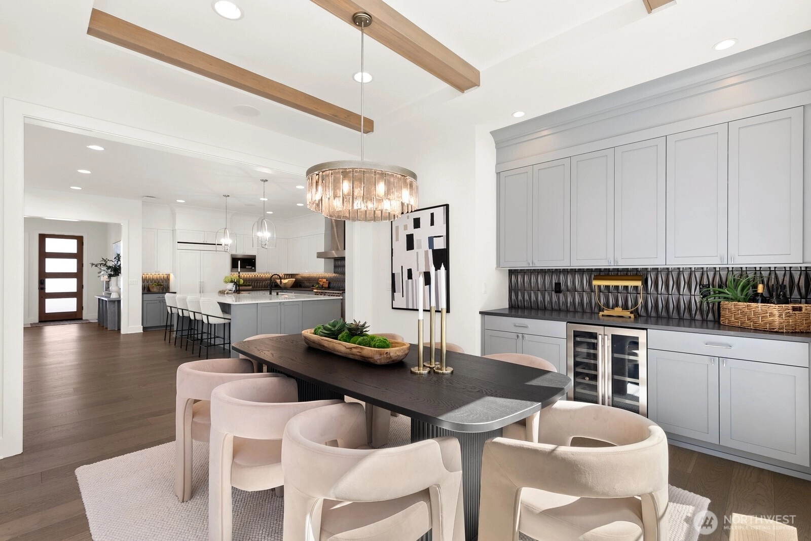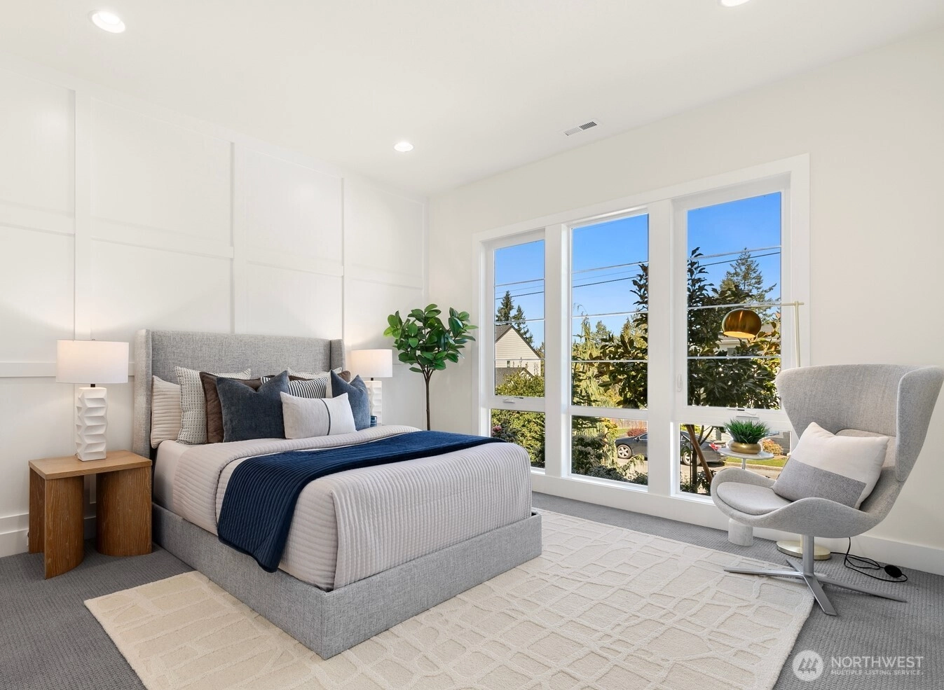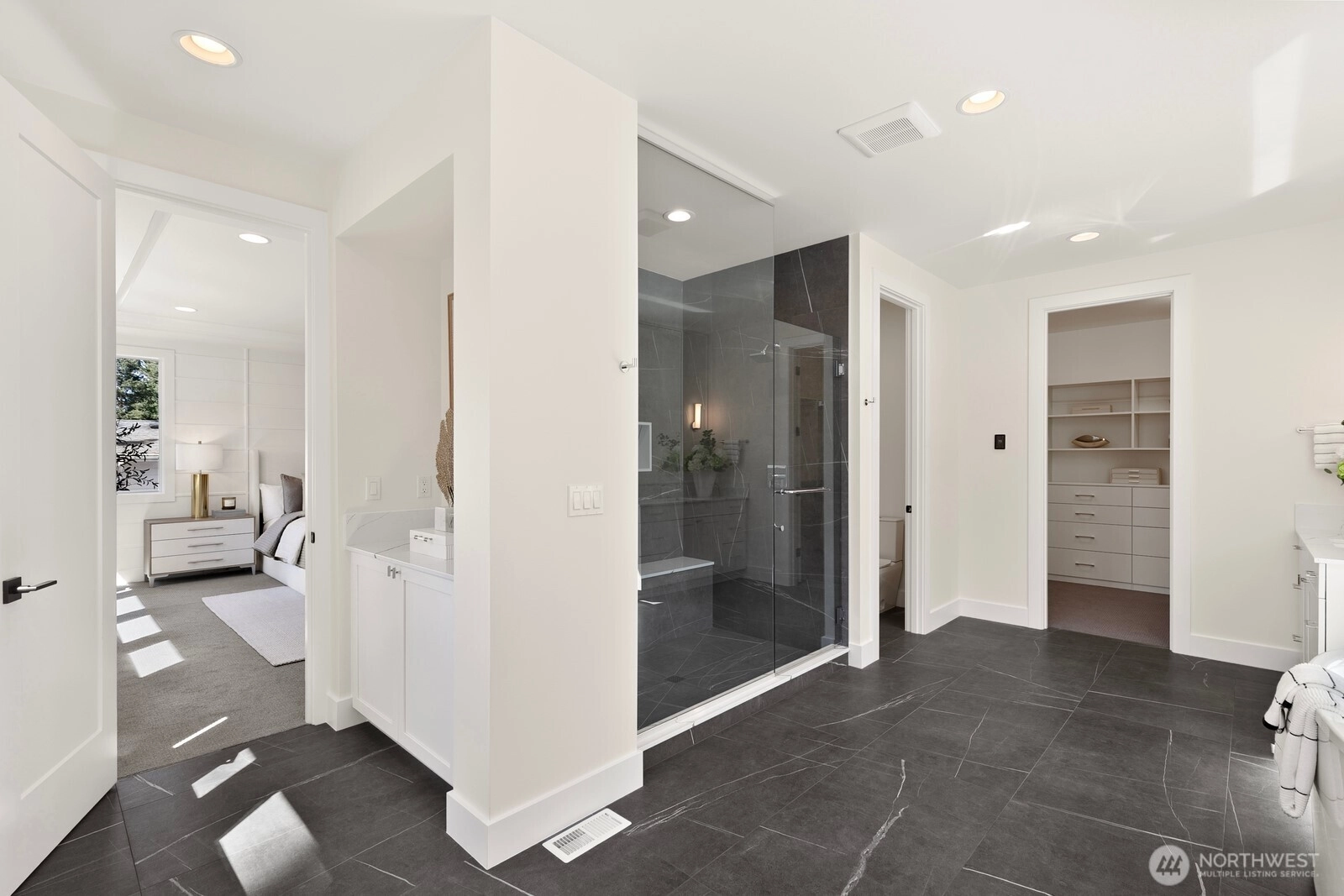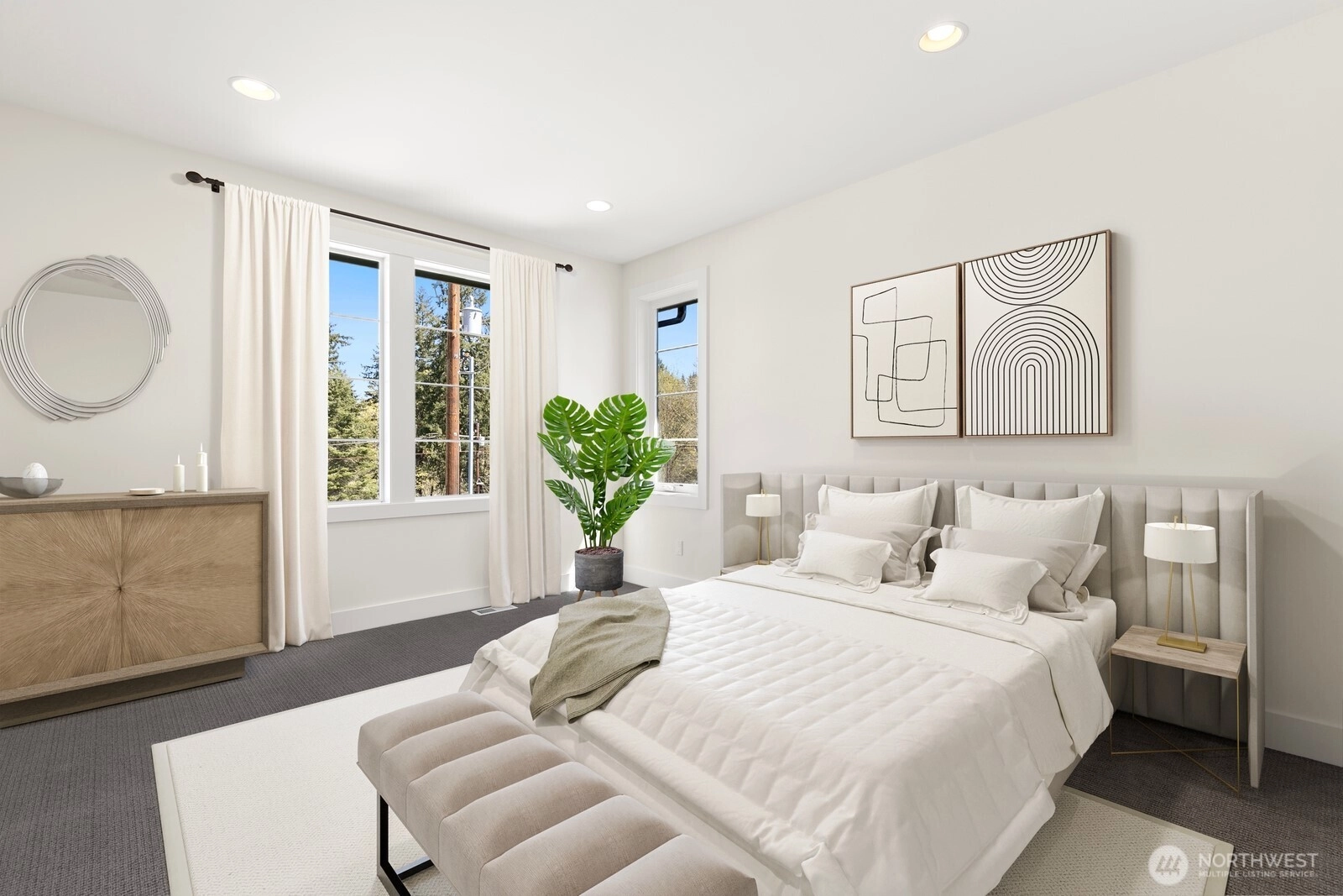 Experience elevated living on the coveted Street of Dreams, where exceptional design meets a pristine setting. A JayMarc new construction build perfectly positioned in a sought-after enclave of new construction homes - blending luxury, comfort, and location seamlessly. Wide-plank brushed oak hardwoods span the main level, staircase, and upper hall, creating a seamless, refined flow. Custom soft-close cabinetry, curated millwork, and integrated smart home features—including video doorbell, smart deadbolt, and in-home display. A versatile main-level bonus room with beverage cooler, mudroom and a well-appointed laundry room. The covered outdoor patio—complete with a fireplace and integrated Sonos audio—offers a true year-round retreat, while rooftop solar panels add both efficiency and modern appeal. The dining area impresses with statement lighting, ceiling beams, and an architectural accent wall, plus a service station with quartz, artisan tile backsplash, and built-in wine cooler. The chef’s kitchen features quartz surfaces, a large island, professional-grade appliances, and a sunlit dining nook. The great room showcases a dramatic two-story porcelain fireplace with custom mantel allowing for optimal natural light. The primary suite offers a spa-inspired bath, soaking tub, walk-in shower, and custom closet. Award winning Bellevue School District and commute with ease to your favorite destinations.