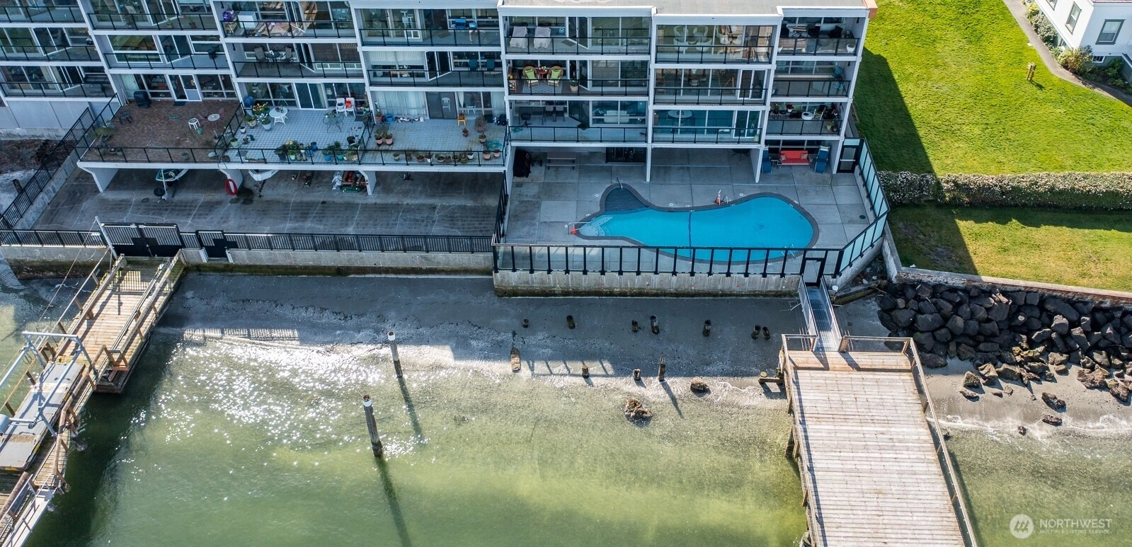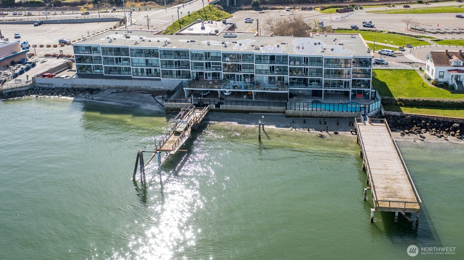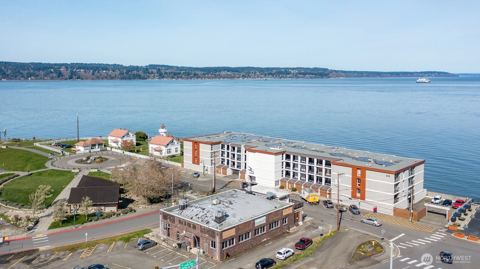 Welcome to The Losvar—one of Mukilteo’s most coveted waterfront location—where refined coastal living meets breathtaking, ever-changing views. This exceptional corner unit offers 2 beds/1.75 baths, thoughtfully designed to maximize light, privacy & scenery. A dramatic wall of windows & three private balconies showcase sweeping vistas of the Puget Sound, including the iconic Mukilteo Lighthouse, Whidbey, Hat & Camano Islands, Mount Baker & the Olympic Mountains. Enjoy front-row seats to passing ferries & boat traffic, listen to the gentle waves, and unforgettable sunset skies—all from the comfort of home. Inside, the inviting living room is anchored by a cozy gas fireplace & built-in cabinetry with glass shelving. The updated kitchen features slab granite countertops and tile flooring, blending style with everyday comfort. The generous primary suite offers a private balcony, walk-in closet, & beautiful bath w/granite surfaces & a distinctive curved, tiled shower. The second berm also captures stunning water and lighthouse views, making it ideal for guests or a home office. Residents of The Losvar enjoy a secure, amenity-rich lifestyle with elevator access, a pool, jacuzzi, sauna, fitness center, community room w/pool table, private beach & docks. This unit includes one secured, under-building parking space +dedicated boat storage. Perfectly situated in Old Town Mukilteo, near charming shops, local dining, the Mukilteo Ferry & Paine Field...Waterfront living at it's finest!