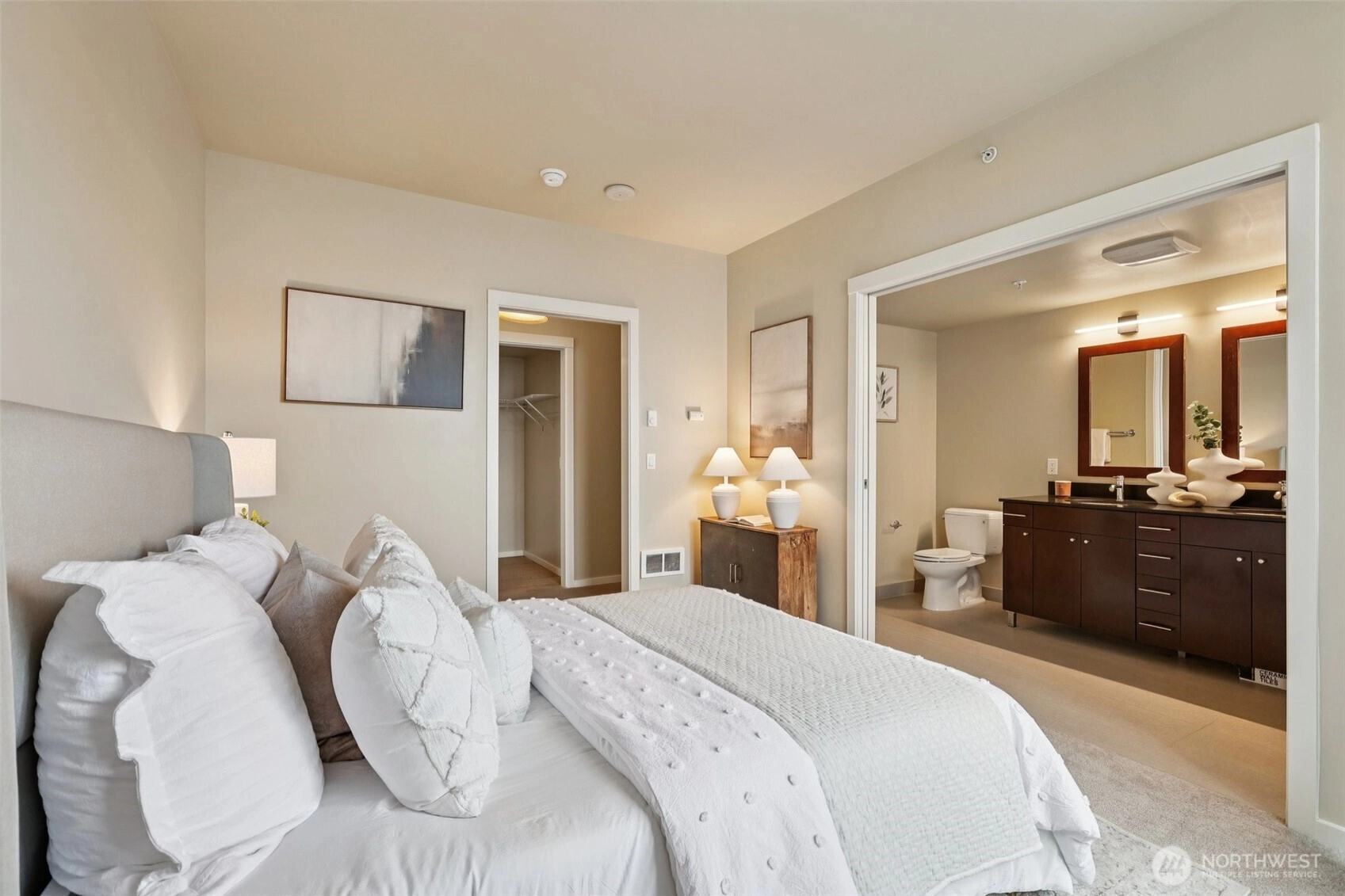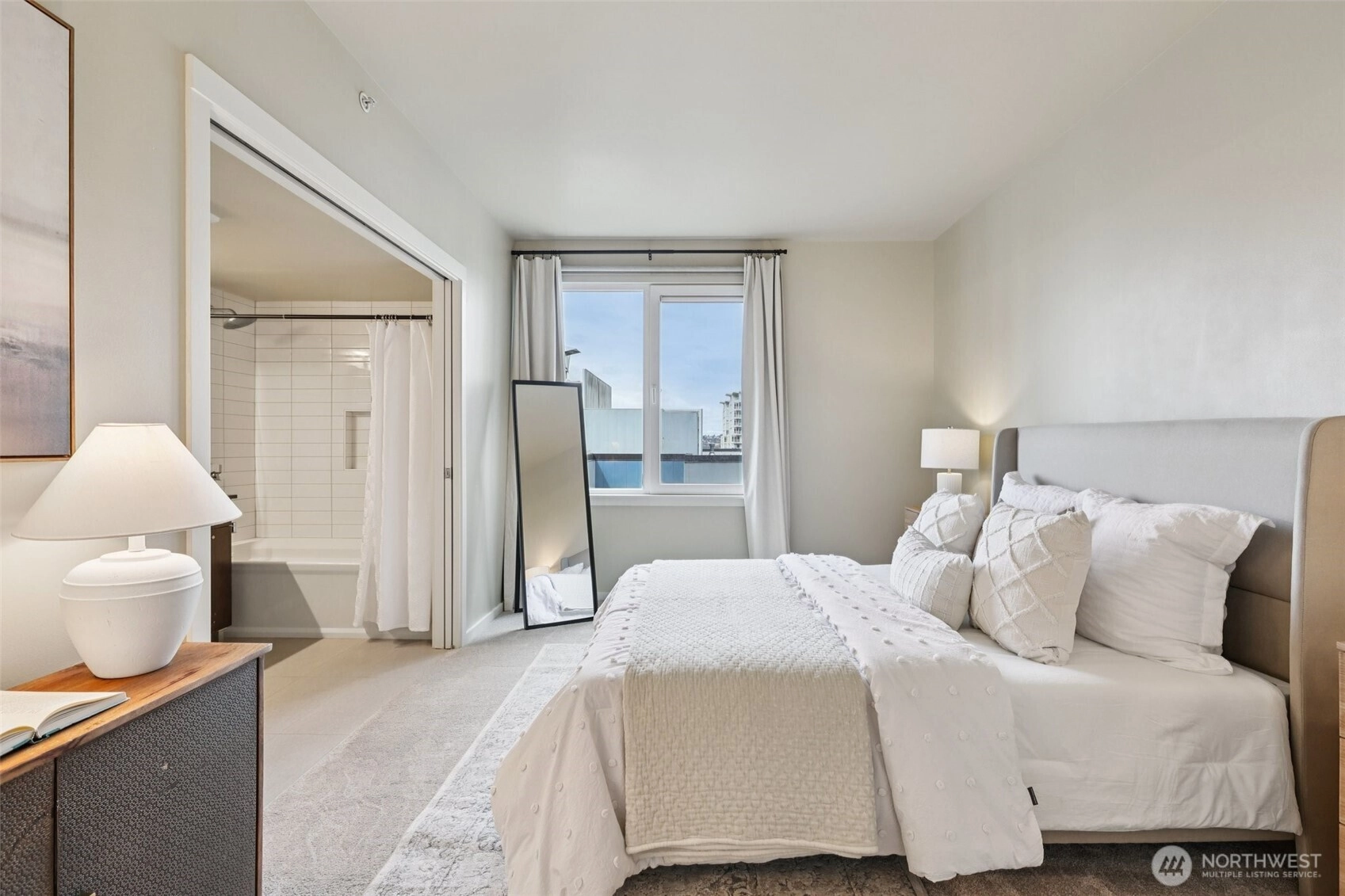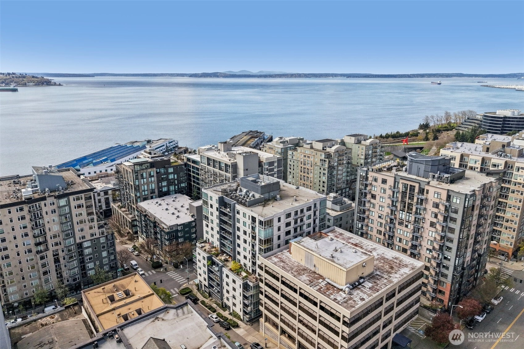 Welcome to The Parc — one of Belltown's most sought-after condo buildings. This stunning corner unit on the 10th floor offers breathtaking views and an abundance of natural light through dramatic floor-to-ceiling windows. The thoughtfully updated 1 bed, 1.5 bath layout features a fully remodeled primary suite (2024) complete with a new tub, shower, and tile — plus new carpet and fresh paint for a move-in-ready feel. The kitchen shines with a new stove range (2024), and peace of mind comes standard with a new water heater (2025) and in-unit washer/dryer. New flooring ties the space together beautifully. Building amenities are second to none: 24/7 concierge, a fully equipped gym with squat rack, free weights, and cardio machines, plus a rooftop deck with stunning Sound and city views. Assigned parking and storage included. Minutes from the waterfront, South Lake Union, Pike Place Market, and downtown Seattle — urban living at its finest.