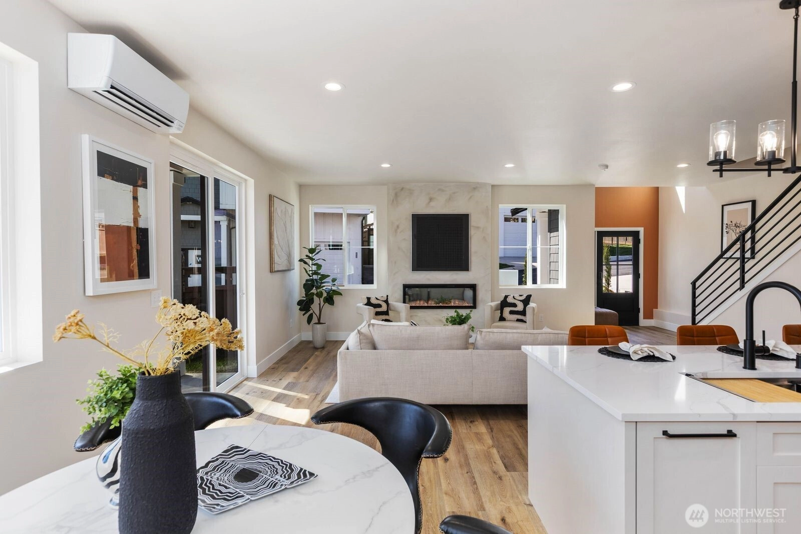 Where modern design meets timeless style in this stunning new construction home in West Seattle! This beautifully crafted residence features an inviting main level with a cozy fireplace, a sleek kitchen with quartz countertops, and an open dining area that flows seamlessly to a private patio—perfect for entertaining or relaxing. Upstairs, the second floor offers a luxurious primary suite with a spa-inspired five-piece bath, two additional bedrooms, a full bathroom, and a versatile bonus room. The third floor expands your living space even further with two more bedrooms and another full bath—ideal for guests, home office space, or multi-generational living. Garage supports EV parking. Enjoy an unbeatable Seattle location just moments from shopping, dining, parks, and recreation, with easy access to freeways and public transit. Photos are representative of the model home.
