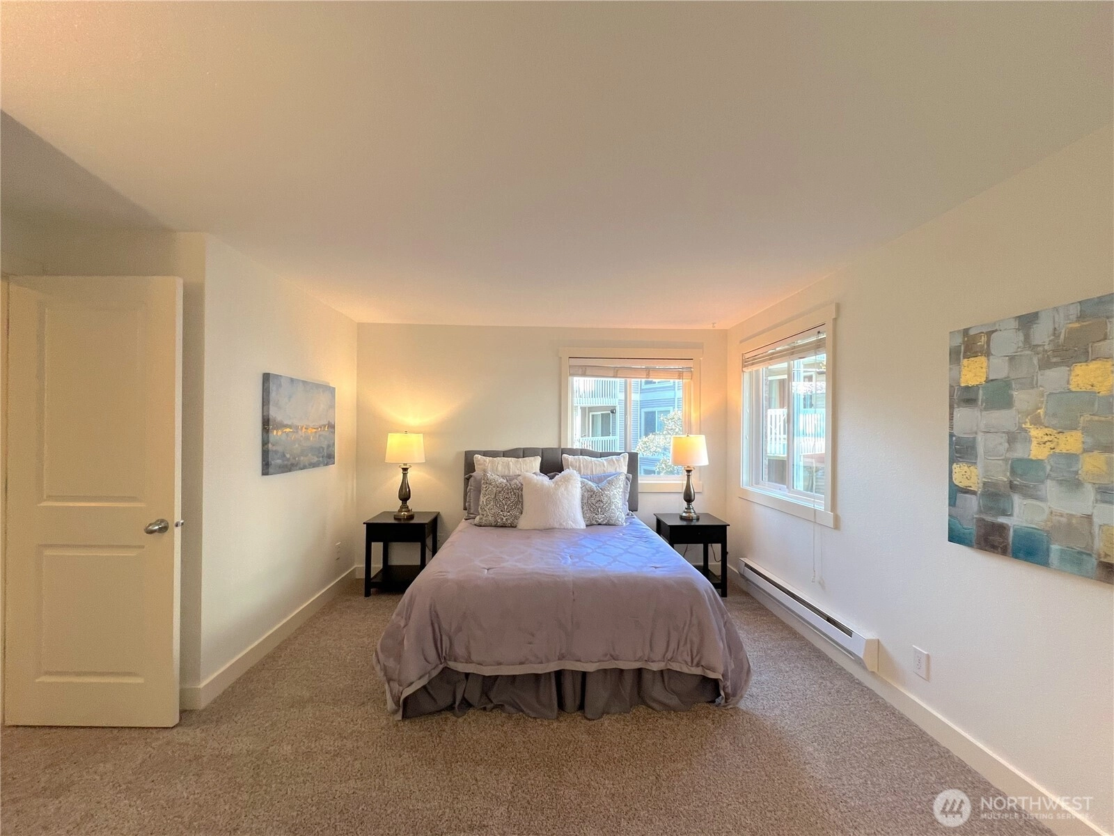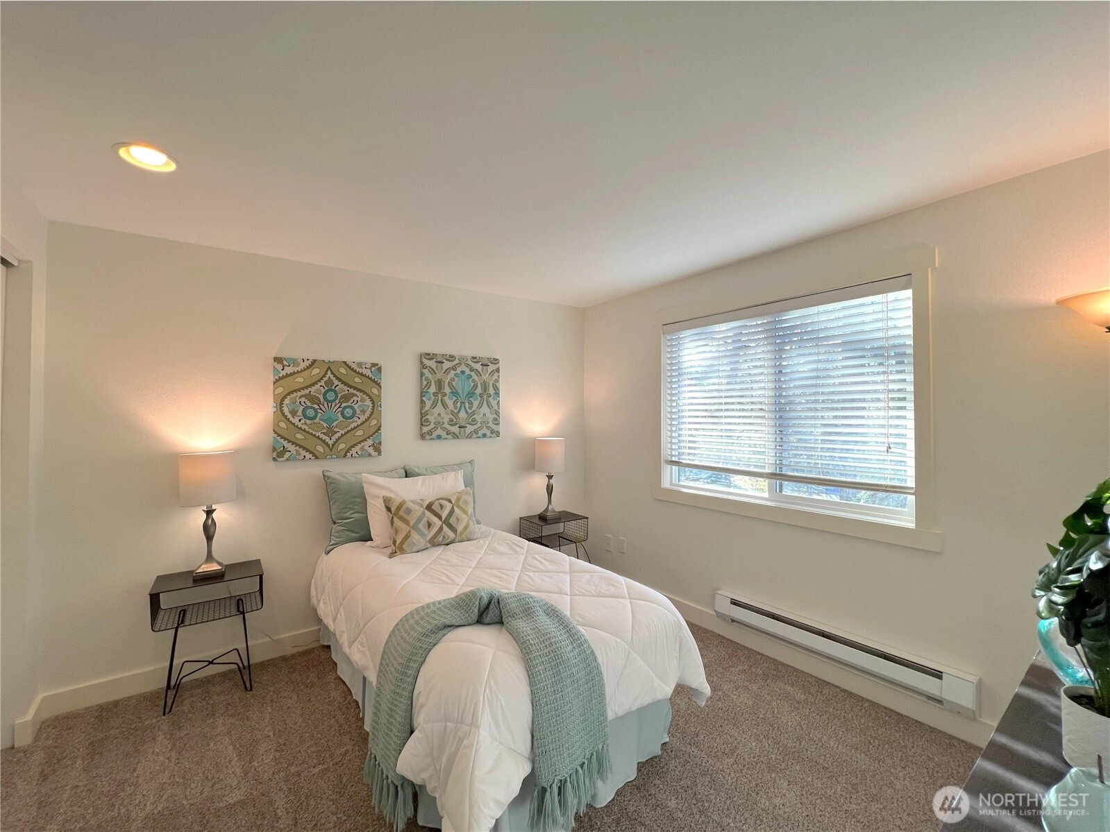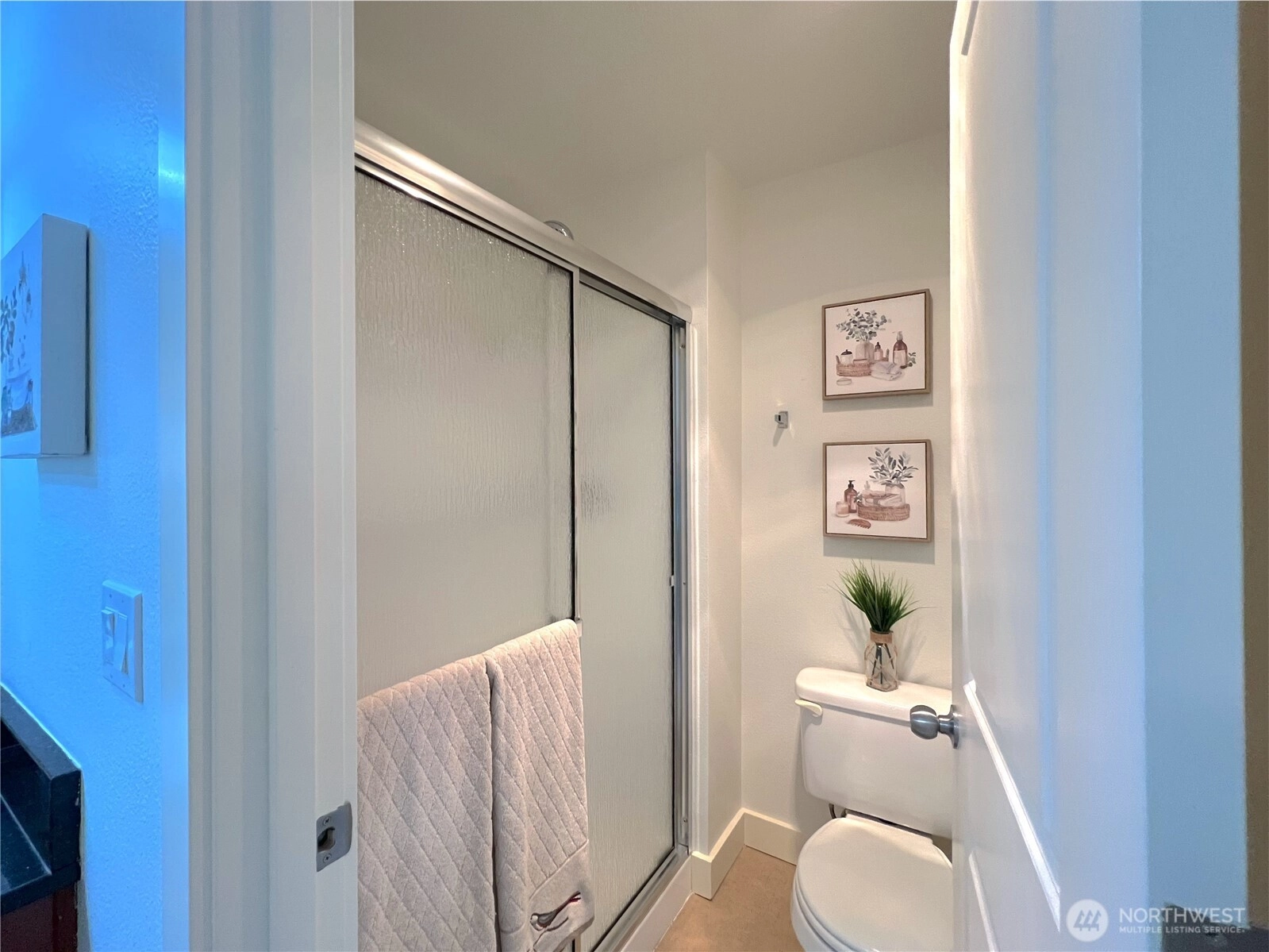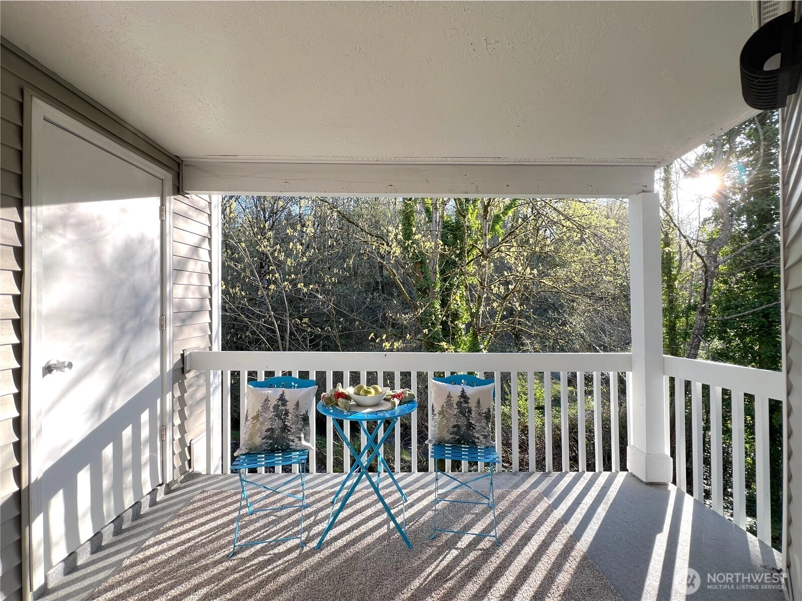 Welcome to this little oasis at Woodsong. Comfort and convenience with a calming view of the wooded creek flowing by. This 2 bedroom condo boasts a walk-in closet and second bathroom off the primary room; an open concept spacious living room, dining room, and well appointed kitchen with granite counters, SS appliances and generous shaker style maple cabinets. Easy access to downtown BLV or Seattle via the 405 / 90, and close to all that Factoria offers - shops, trails, and plenty of dining options.
