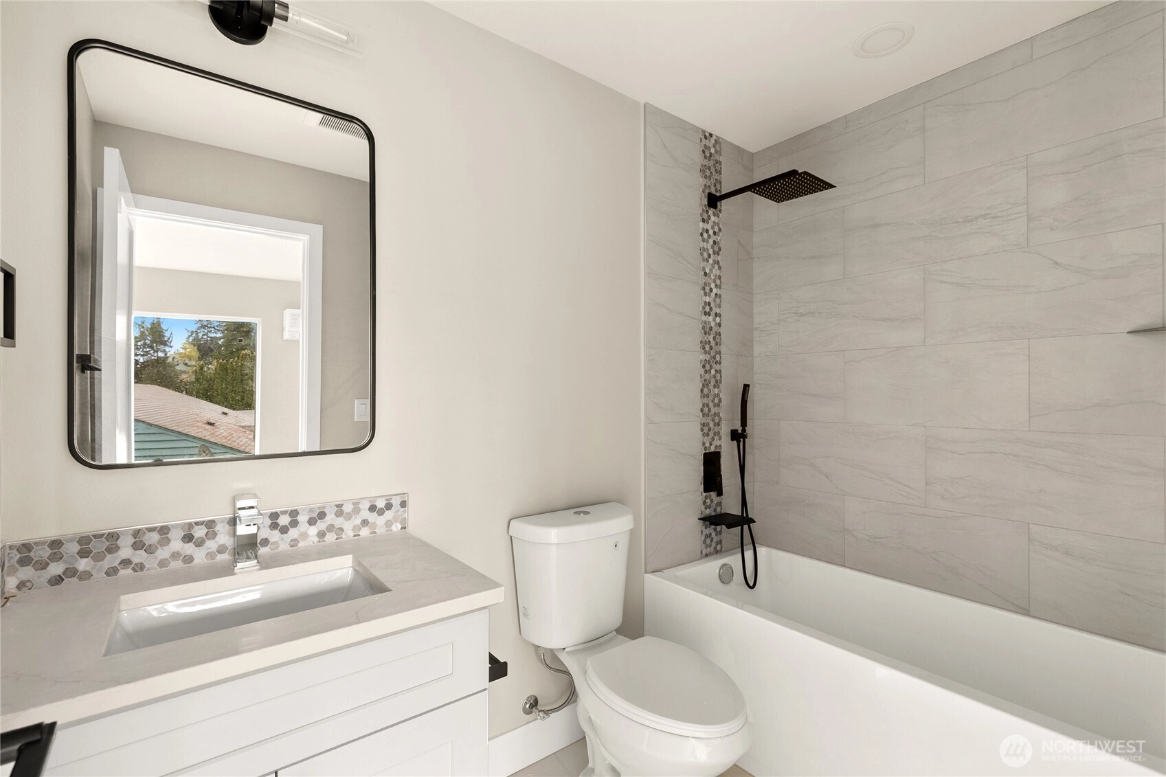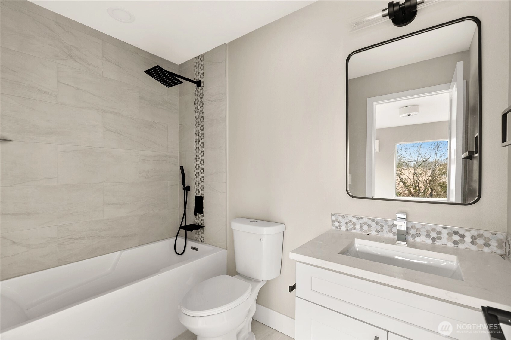 Discover the perfect intersection of modern luxury and total seclusion. Tucked away at the end of a private Haller Lake cul-de-sac, 1404 N 136th St offers a level of peace and outdoor space rarely found in Seattle new construction. Situated on an expansive 2,767 sq. ft. lot nearly double the size of typical urban builds, this home provides a tranquil retreat with zero through-traffic and dedicated off-street parking. The 1,088 sq. ft. interior is thoughtfully optimized for the sophisticated urbanite. The main level boasts a sun-drenched, open-concept living area anchored by a sleek contemporary fireplace and wide-plank flooring. The chef’s kitchen features premium Quartz countertops, a social island, custom cabinetry with integrated lighting and a signature Italian tile backsplash. The upper level is designed for maximum versatility with a rare "Dual Primary" configuration: two spacious bedrooms, each featuring its own private, full ensuite bathroom with spa-inspired Italian tile. A convenient main-floor powder room and laundry ensures guest privacy alongside daily ease. Enjoy morning coffee in your oversized private yard sitting on your expansive patio or explore nearby Northacres Park and the Northgate Light Rail. With seamless I-5 access, picturesque Haller Lake moments from your front door with tons of shopping and restaurants nearby coupled with a tucked-away location, this is the quiet side of modern living. Welcome home!