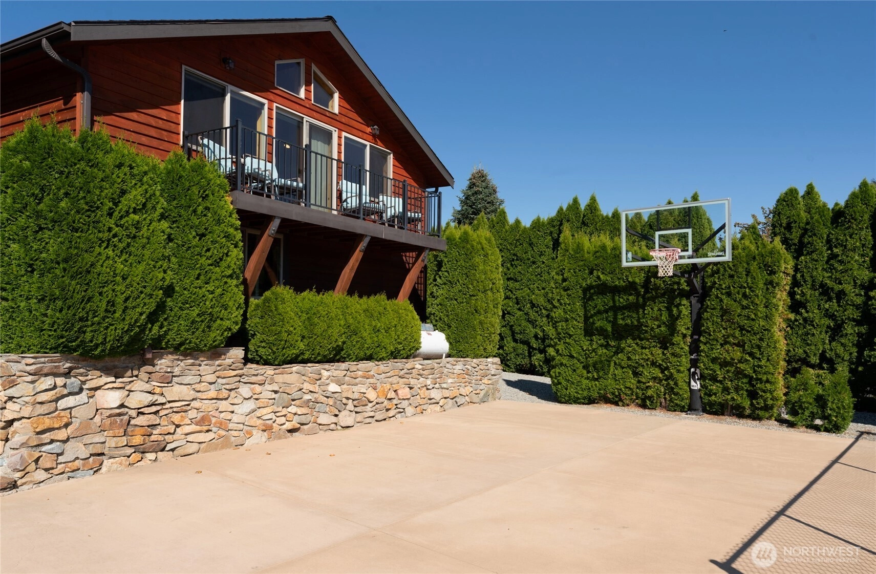 Exceptional opportunity on coveted Lakeshore Drive! This turn-key, fully furnished 4 bed, 4.5 bath, 4,164 sq ft lodge-style retreat captures breathtaking views of Lake Chelan and features an additional detached 960 sq ft carriage house with vaulted ceilings, great room, game area, kitchenette, bath, and loft—ideal for guests or multi-generational living. Designed for both entertaining and relaxation, the property features expansive outdoor living with a private heated pool, year-round hot tub, propane fire pit, basketball court, lush lawns, and multiple dining and lounge areas. The main level showcases hardwood floors, soaring cedar ceilings with exposed beams, and dramatic floor-to-ceiling windows. Enjoy a warm, inviting living room with a large river stone fireplace, chef’s kitchen with quartz countertops, and a luxurious primary suite with fireplace, spa-like bath, and French doors leading to the private lake view deck. Upstairs offers a flexible bunk/guest room and bath, while the lower level includes two bedrooms, a bath, and a spacious living area/media room with dining area plus a full second kitchen that opens onto the lower level patio and pool area. Known as “Willow Point Hideaway,” this property comfortably sleeps 12 with 3 living areas, 3 kitchens, and 2 laundry spaces. Just a short stroll to lake access for swimming, kayaking, and paddleboarding. Ample parking for up to 8 vehicles plus boat/trailer space. Minutes to Manson’s wineries, dining, and shopping.
