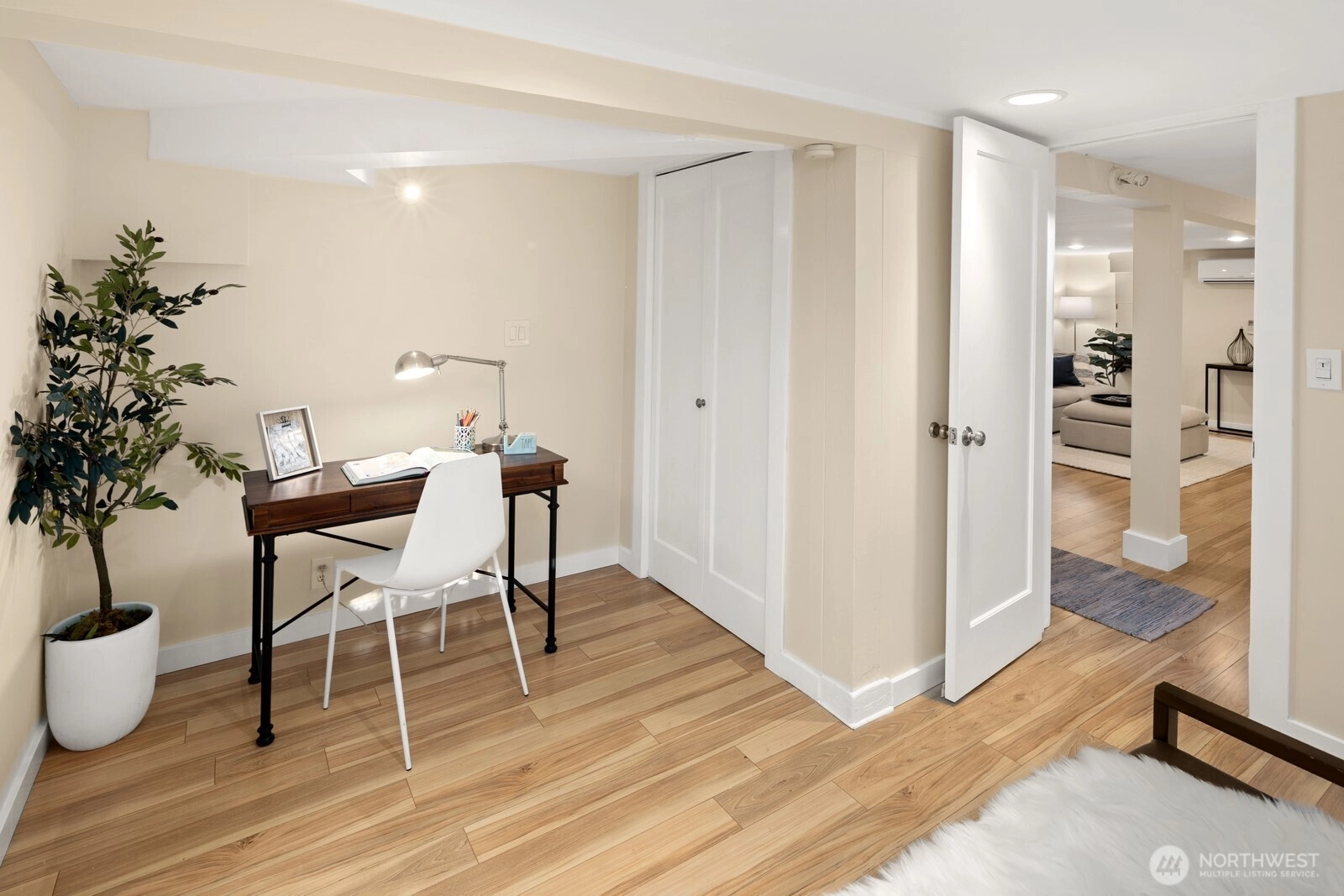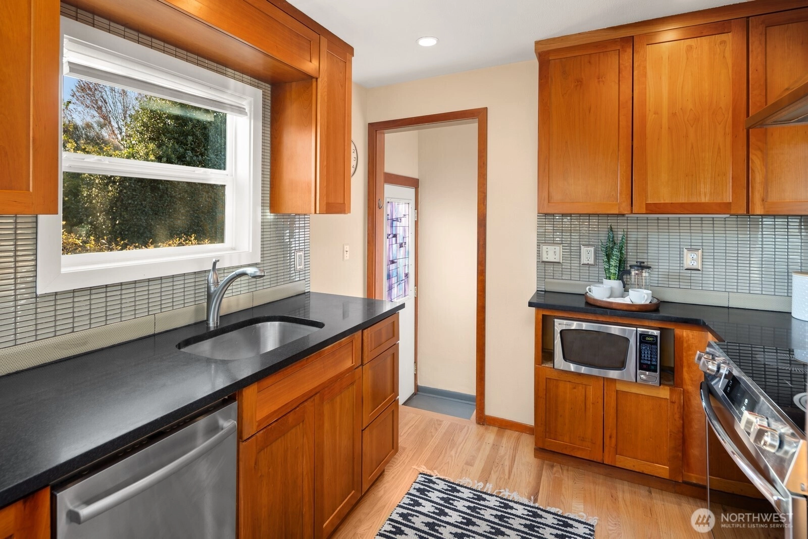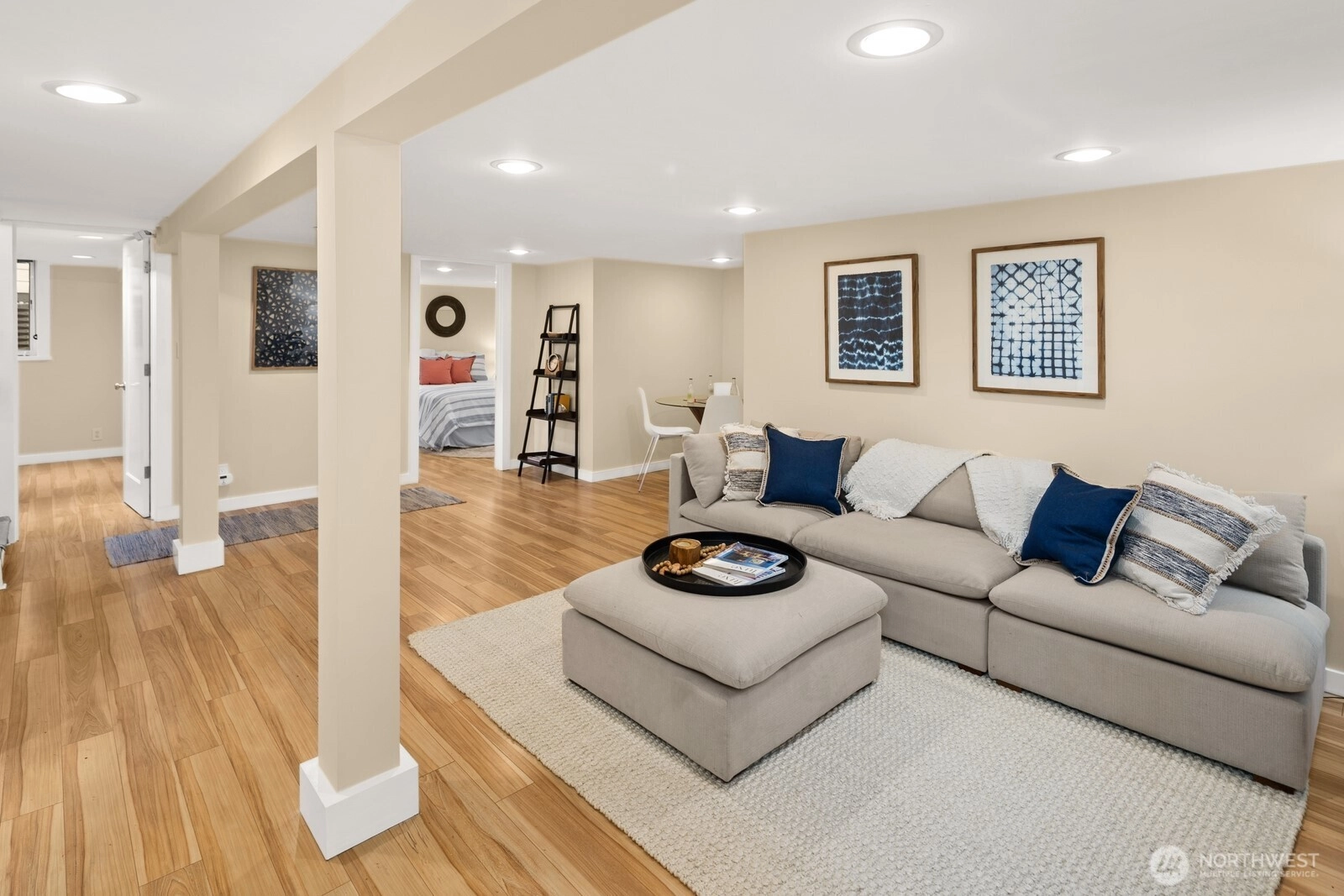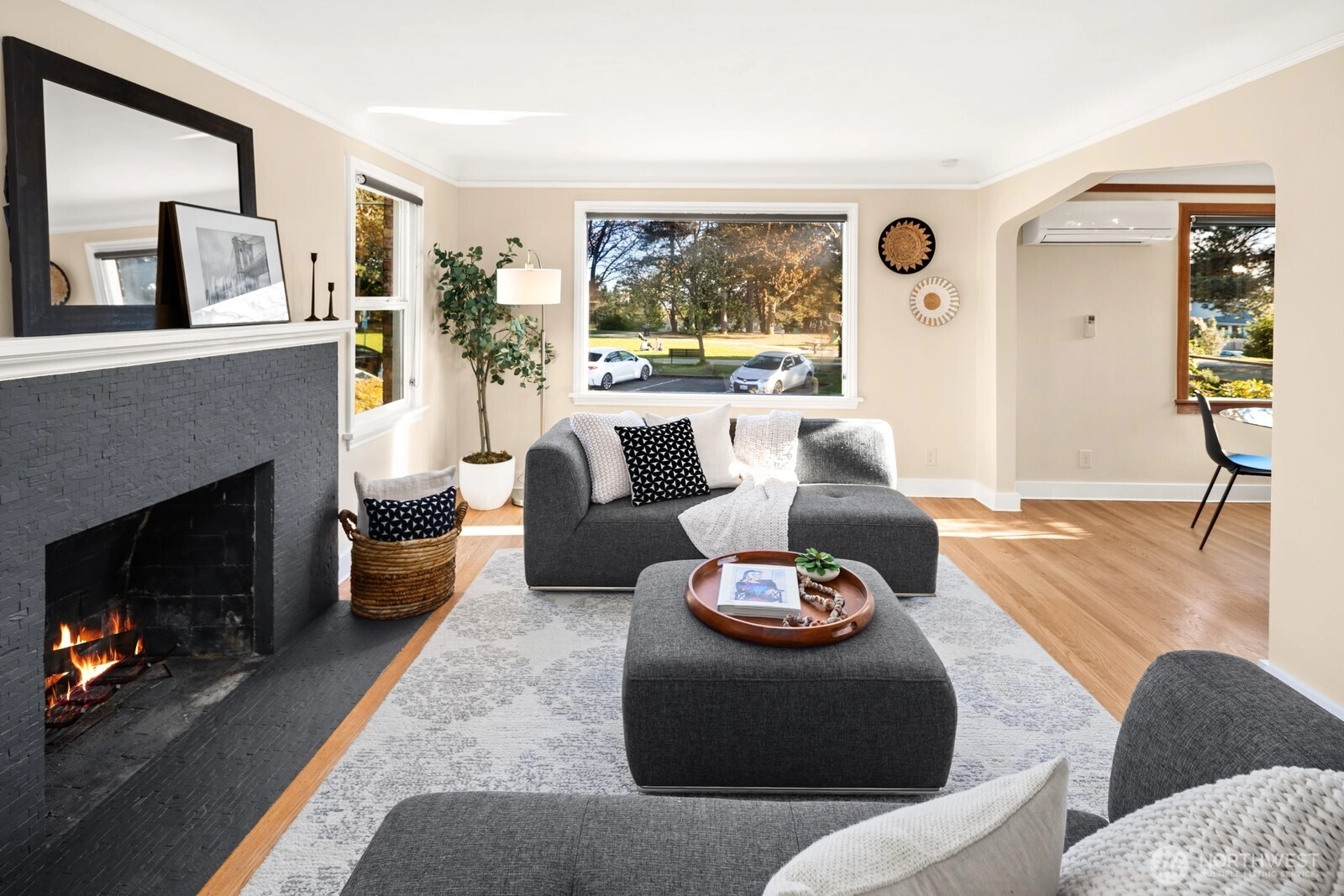 Perched above the street across from Loyal Heights Park, this 1940s charmer feels like home the moment you arrive. Sunlight pours through expansive south-facing picture windows, warming freshly refinished oak hardwoods (2026) and drawing you into a cozy living space anchored by a wood-burning fireplace. The remodeled kitchen strikes the right balance of style and function, while fresh interior and exterior paint (2026) add to the home’s move-in ready feel. With 4 bedrooms, 1.75 baths, and a spacious lower-level rec room, there’s room to gather, unwind, and spread out. Out back, a thoughtfully designed, low-maintenance yard with hardscaping and raised beds sets the scene for summer dinners, morning coffee, and that long-planned vegetable garden finally taking shape. Detached 1-car garage with alley access. Heat pump + mini splits for year-round comfort. Just blocks to the heart of Loyal Heights at 24th Ave NW & NW 80th where you'll find iconic shops like: Larson’s Bakery, Beast & Cleaver, The Fish Store, The Mailbox, and other beloved neighborhood spots right there when you want them. Close to top-rated Loyal Heights Elementary and surrounded by everything that makes this North Ballard neighborhood so special.