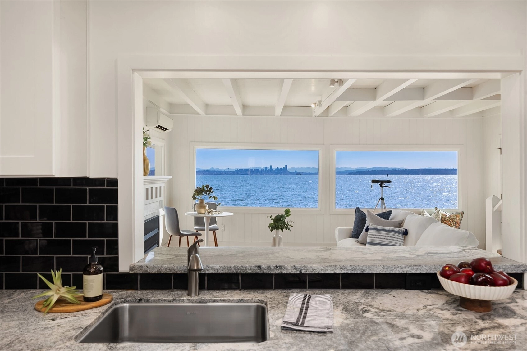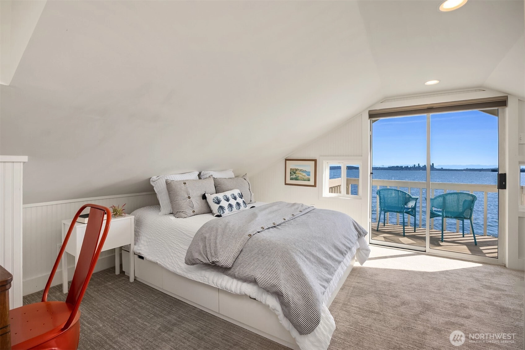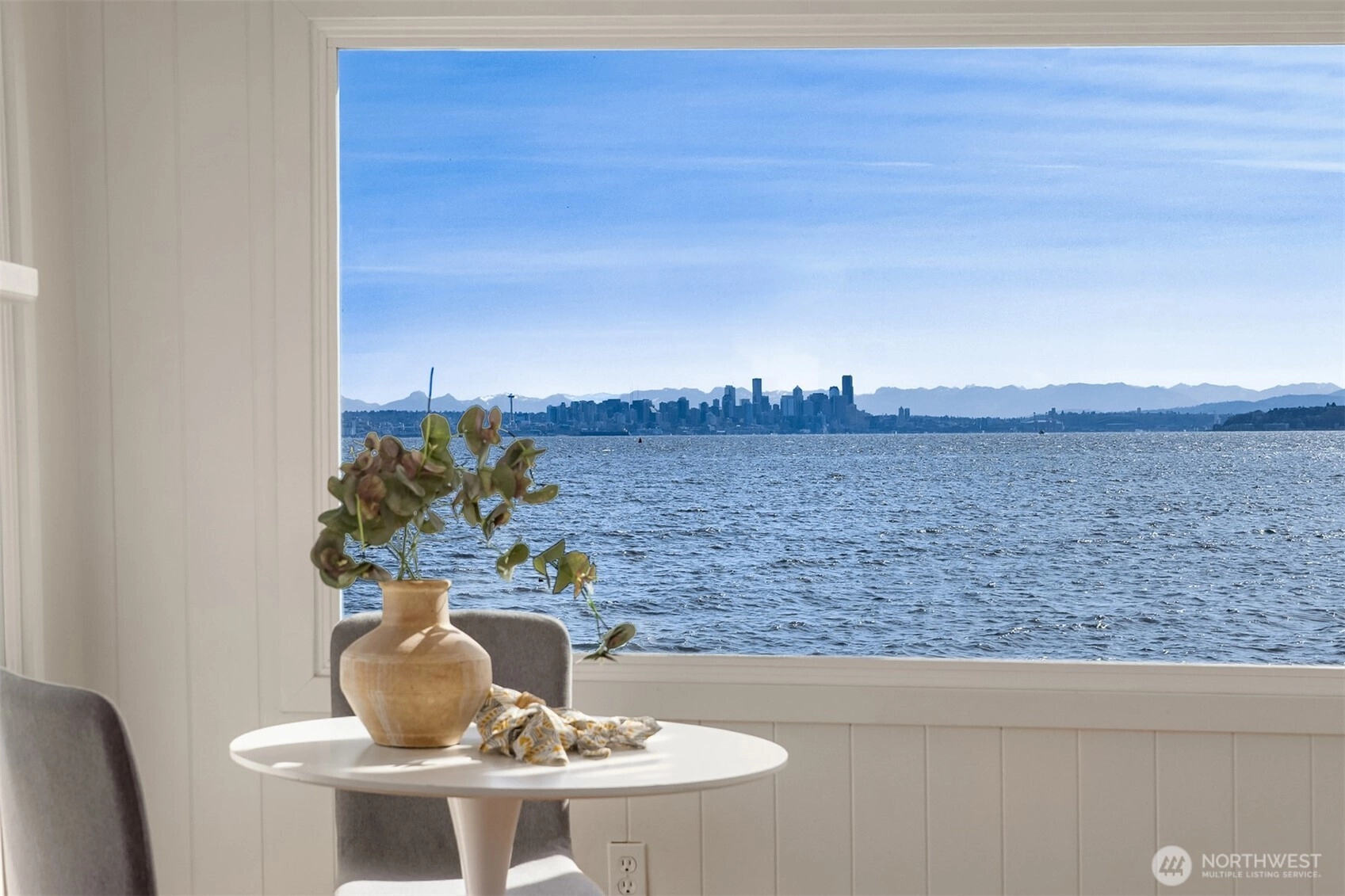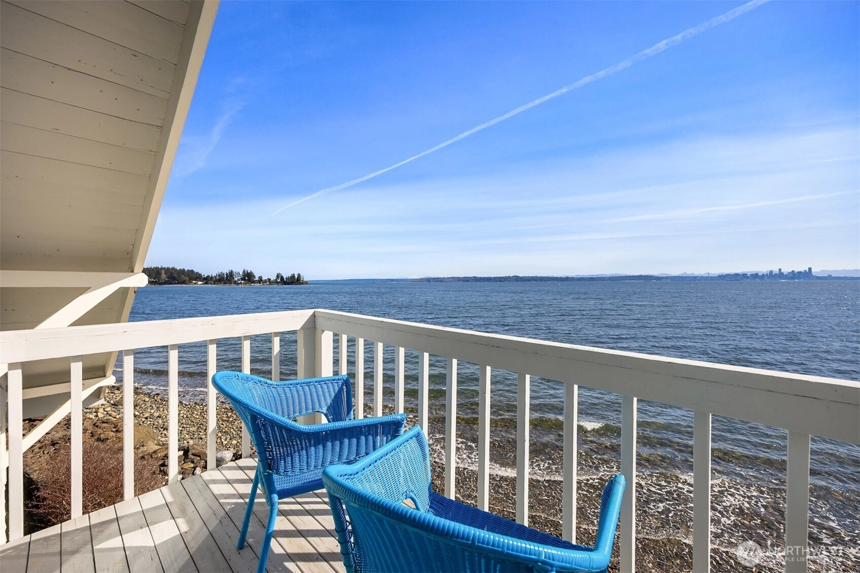 Experience breathtaking waterfront living in this charming Craftsman, where sweeping views, daily wildlife sightings, and ever-changing scenery create a truly unforgettable setting. Nestled at the water’s edge, this inviting cottage captures panoramic 180-degree views stretching from Mt. Baker to Mt. Rainier, with Eagle Harbor and the Seattle skyline beautifully framed across the water. Inside, timeless character meets thoughtful updates. This 3-bedroom, 1.75-bath home features remodeled laundry and office spaces, new carpeting, integrated heating and cooling for year-round comfort, and convenient sewer access. The kitchen flows seamlessly into the living area, where a cozy wood-burning fireplace insert, exposed beam ceilings, and expansive windows showcase the stunning surroundings. Outdoor living is exceptional, offering multiple spaces to relax and entertain — including a covered porch, beachside deck, upstairs balcony, and a rooftop deck with incredible vantage points. Enjoy front-row views of ferries gliding by and the shimmering Seattle skyline, day and night. Ideally located near walking trails and public parks, this home offers both tranquility and access to outdoor recreation. A rare opportunity to own a piece of waterfront charm you’ll never want to leave. Co-agent is the homeowner.