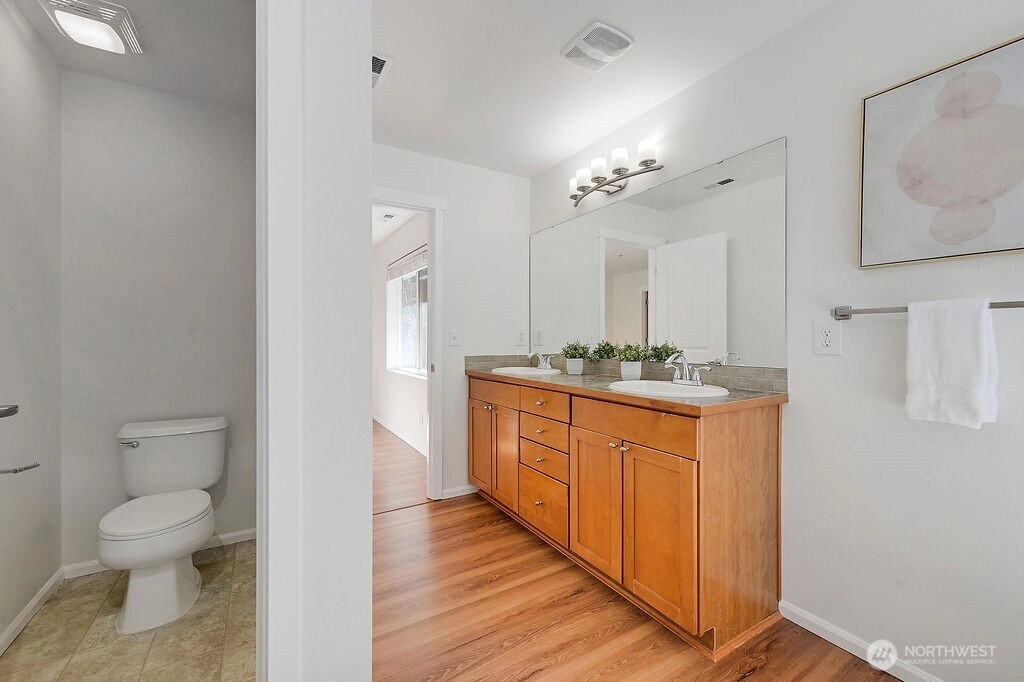 Welcome to this exceptional Viewcrest resale - one of the community’s rare stand-alone townhomes offering the privacy of a single-family feel. Recently refreshed with luxury vinyl plank flooring, modern interior paint, and a brand-new washer and dryer, this home is bright, stylish, and move-in ready. The expansive kitchen features custom cabinetry, granite countertops, and stainless-steel appliances, flowing seamlessly into the great room and adjoining family room - perfect for everyday living and effortless entertaining. Upstairs offers two spacious bedrooms and a beautiful primary suite with a spa-like 5-piece bath and walk-in closet. The lower level adds flexible living space, a large laundry room, and a convenient half bath. Enjoy a fully fenced backyard backing to a peaceful greenbelt, creating a private retreat. With thoughtful updates and a rare stand-alone design, and a new roof in 2025, this home offers elevated living in the heart of Viewcrest. Seller to pay up to 1 year of monthly HOD's. Welcome home.