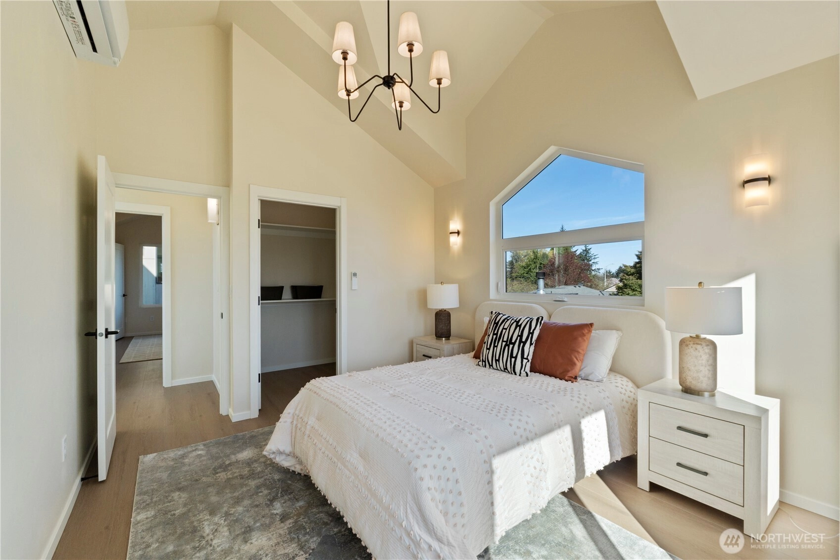 A new collection of standalone residential homes located on a quite street adjacent to Blue Ridge. Walking distance to Carkeek Park, Swansons Nursery. Close to shopping and Restaurants. This standalone townhome is warm and inviting with large windows flood the home with natural light. The Kitchen offers custom Bellmont cabinets Quartz counter top and tile back splash, Laminate hardwood floors through-out the home, stainless steel appliances and custom lighting. Half bath located on the main floor and nice office. Second floor has two bedrooms both with private baths and vaulted ceilings and custom lighting, primary has walk-in closet, laundry located on this floor as well. Mini-splits will keep warm in the winter and cool in the summer. A private fenced and landscaped yard. One designated parking space off the alley with EV hook-up.
