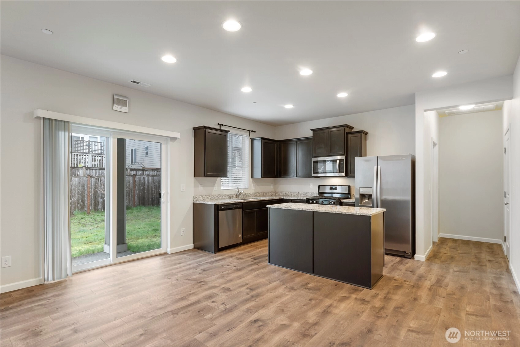 Welcome Home! This spacious 3 bed, 2.5 bath home in Evergreen Pointe offers over 2,100 sqft of comfortable and functional living space. The open-concept main level provides seamless flow between the living, dining, and kitchen areas—ideal for both everyday living and entertaining. Step outside to a fully fenced backyard featuring fruit trees and space to relax, garden, or host. Conveniently located in West Olympia near parks, and schools, this home offers a strong combination of space, location, and value.