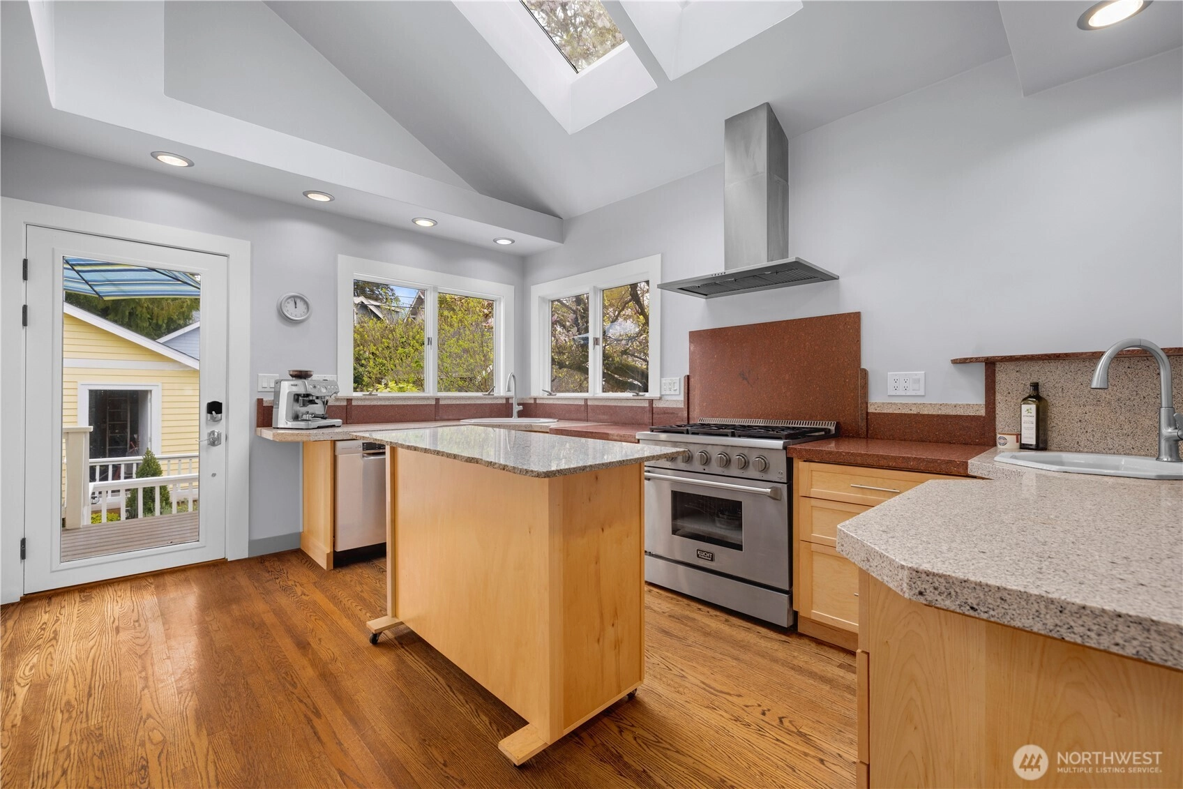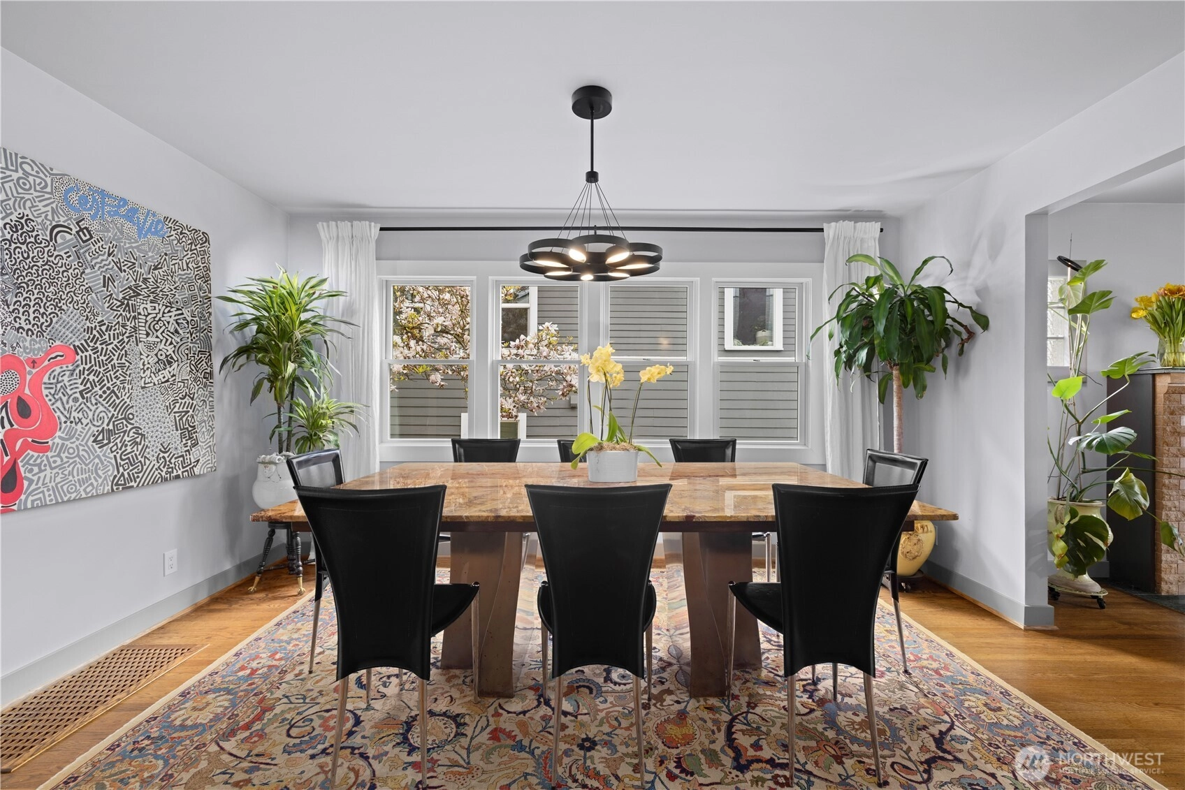 Tucked into beloved Queen Anne, this 3,000+ sqft Craftsman delivers effortless livability with 4 beds and 2-car garage with potential to convert to DADU. Brick-framed landscaping and a welcoming pathway lead you home, where the covered porch sets the tone for slow mornings, quiet evenings, and everything in between. Sunlight floods the living room, with a brick fireplace at its heart that earns its place as the soul of the home. The dining room flows naturally from the living room, ideal for dinner parties and everyday gatherings alike. Rich hardwoods carry you through the main level and into a skylit kitchen with a gas range, updated stainless steel appliances, and custom cabinetry that gives everything a home. Upstairs, a bright, expansive level offers a bedroom with large walk-in closet, and generous den, tucked away for optimal focus on work or creative pursuits. On the lower level, retreat to a grand primary suite featuring a beautifully renovated bath and a spacious, thoughtfully organized walk-in closet. Step outside to your private backyard oasis: soak in the hot tub, feel the outside world melt away, and let pets run free in the fenced yard. Just beyond, a steel-framed two-car garage begs to become a shop, art studio, or DADU, with two dedicated alley parking spaces ensuring you never have to give up convenience for potential. All of this just moments from the boutiques, cafes, and restaurants that make Queen Anne one of Seattle's most sought-after neighborhoods.