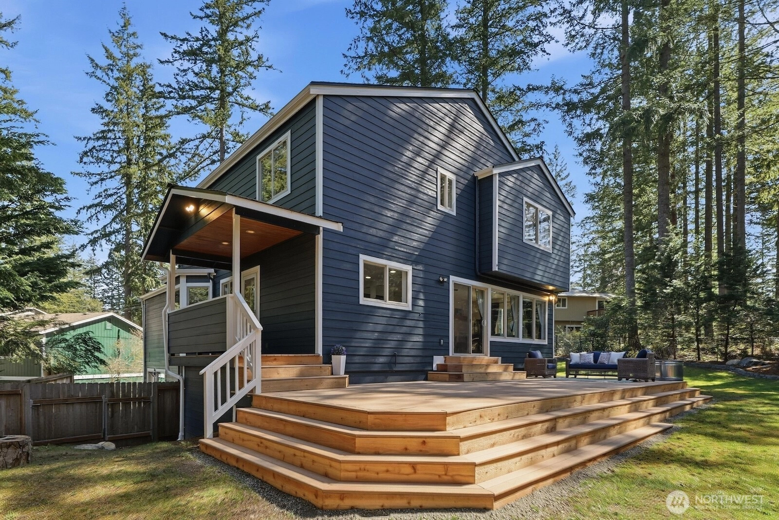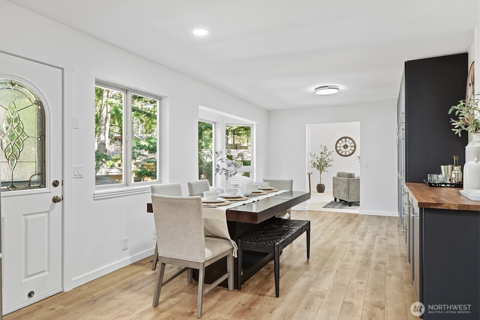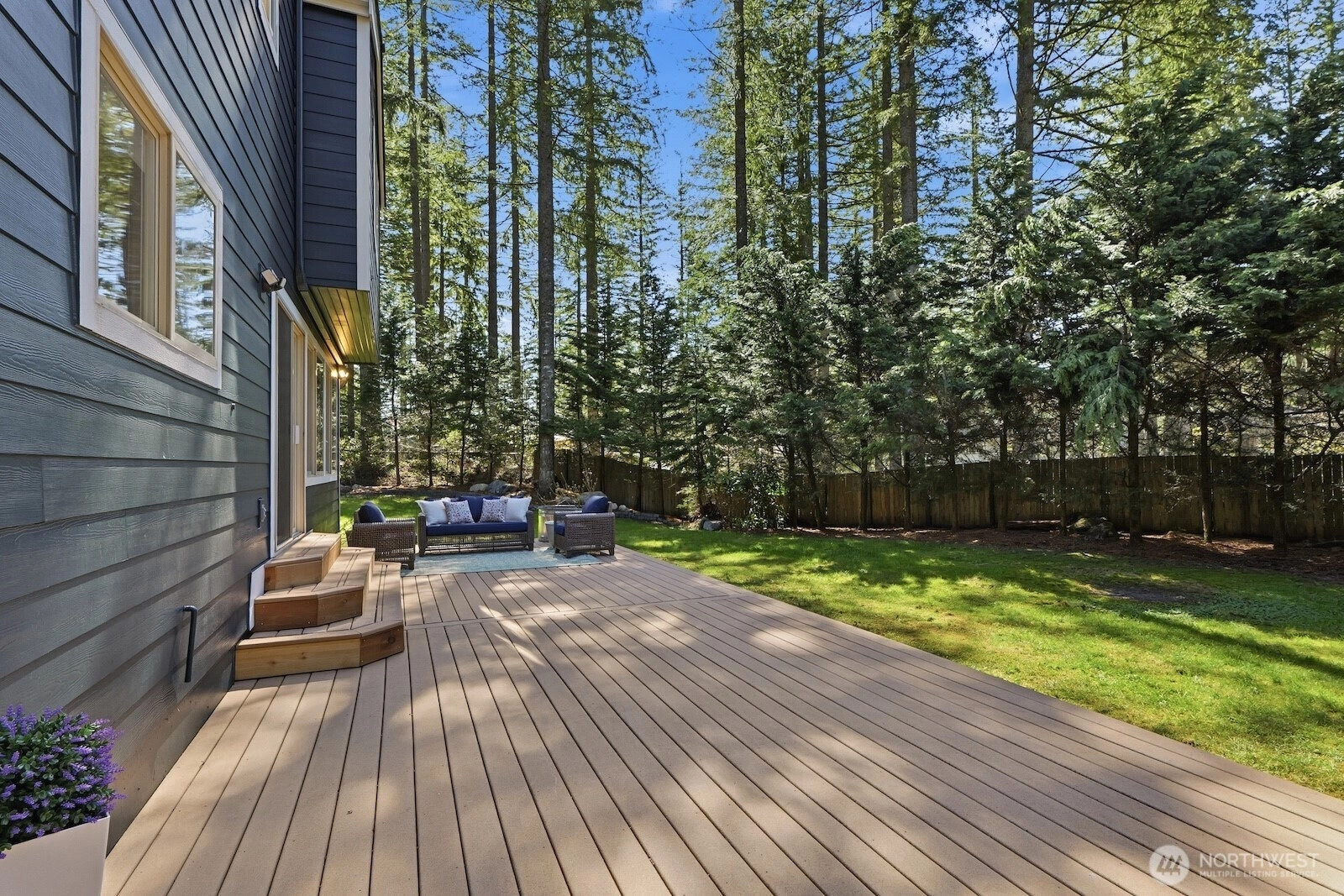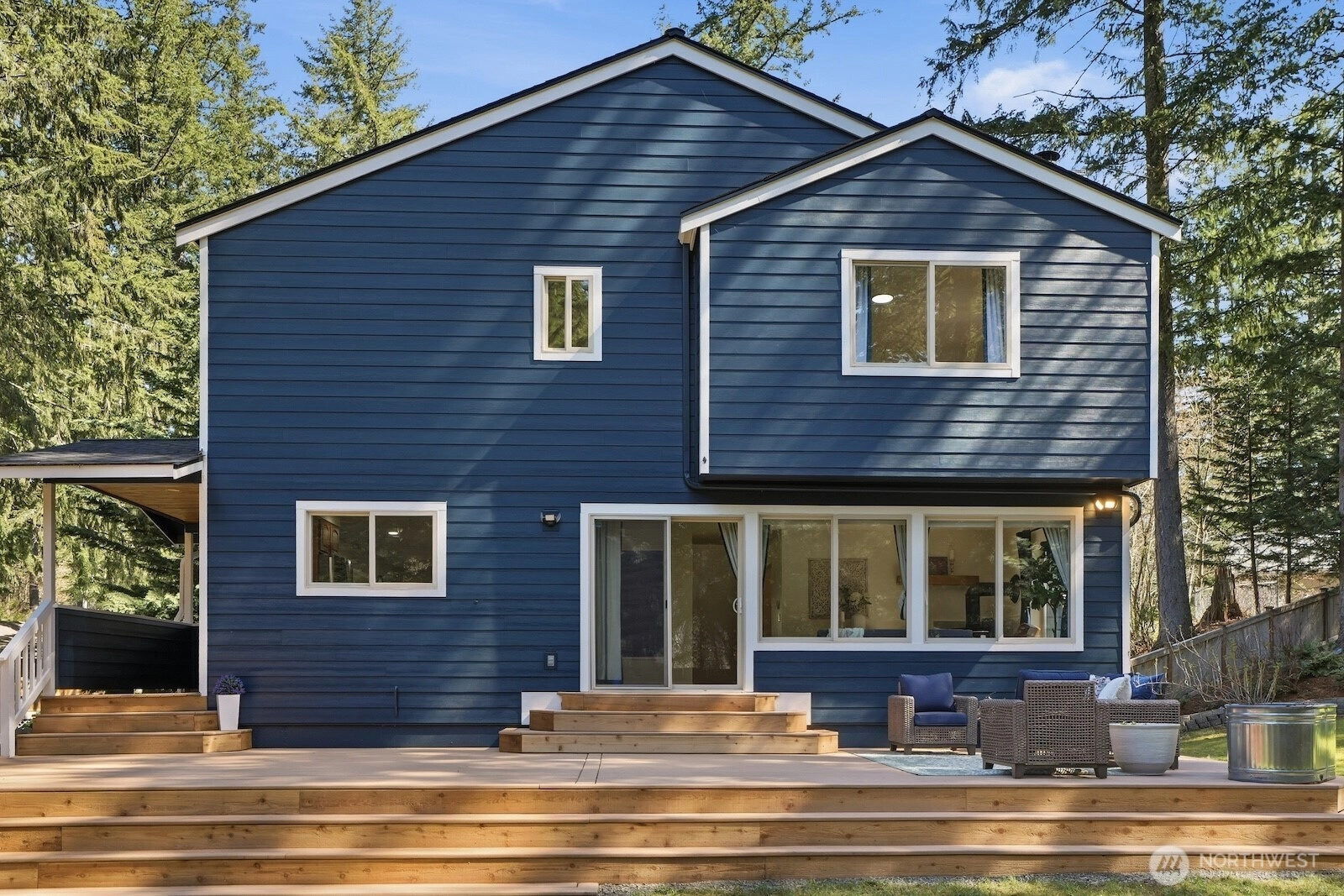 Welcome to your dream home in North Bend's sought-after Wilderness Rim community—ideal for seamless indoor-outdoor living. This updated 3,150 sq ft home sits on a peaceful cul-de-sac & features 5+ bedrooms, 3.5 baths, & a huge, flat, fully fenced backyard with a view of Rattlesnake Ridge. Step inside to an inviting & very spacious layout with vaulted ceilings, a cozy wood stove in the family room, as well as a kitchen equipped with stainless steel appliances, custom wall to ceiling pantry cabinets with a hidden refrigerator & a spacious dining area. Cool All -In-One Washer & Dryer! The upstairs primary suite includes a walk-in closet & beautifully updated en-suite, while the versatile basement offers a separate entrance, 2 bedrooms, an extra nonconforming room and a ¾ bath—perfect for multi-generational living, guests, or possible rental income. Outside enjoy your private park-like oasis w/ an expansive deck, fire pit, RV parking & direct access to greenbelt trails leading to Brewster Lake & the community park. Recent upgrades include new Hardie plank siding & underground gutter drainage ('25), new roof & central A/C ('23), 2 EV chargers & basement expansion ('24), new LVP flooring, updated bathrooms, fresh paint, & light fixtures throughout. Perfect for outdoor enthusiasts, this home is minutes from Rattlesnake Lake, Snoqualmie Valley Trail & Iron Horse State Park. Top-rated Snoqualmie Valley schools & an assumable $796K VA loan @4.75% make this an exceptional find.
