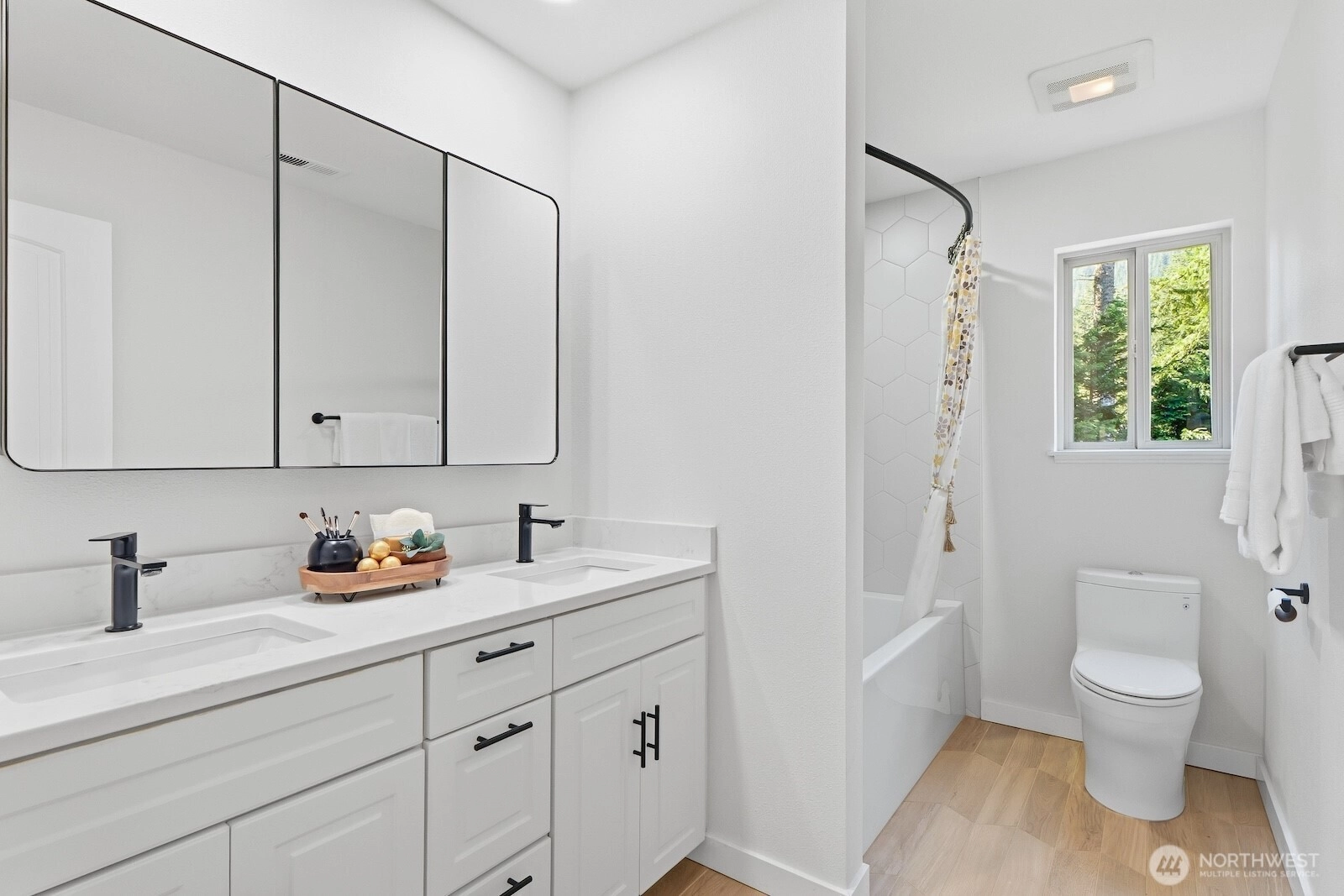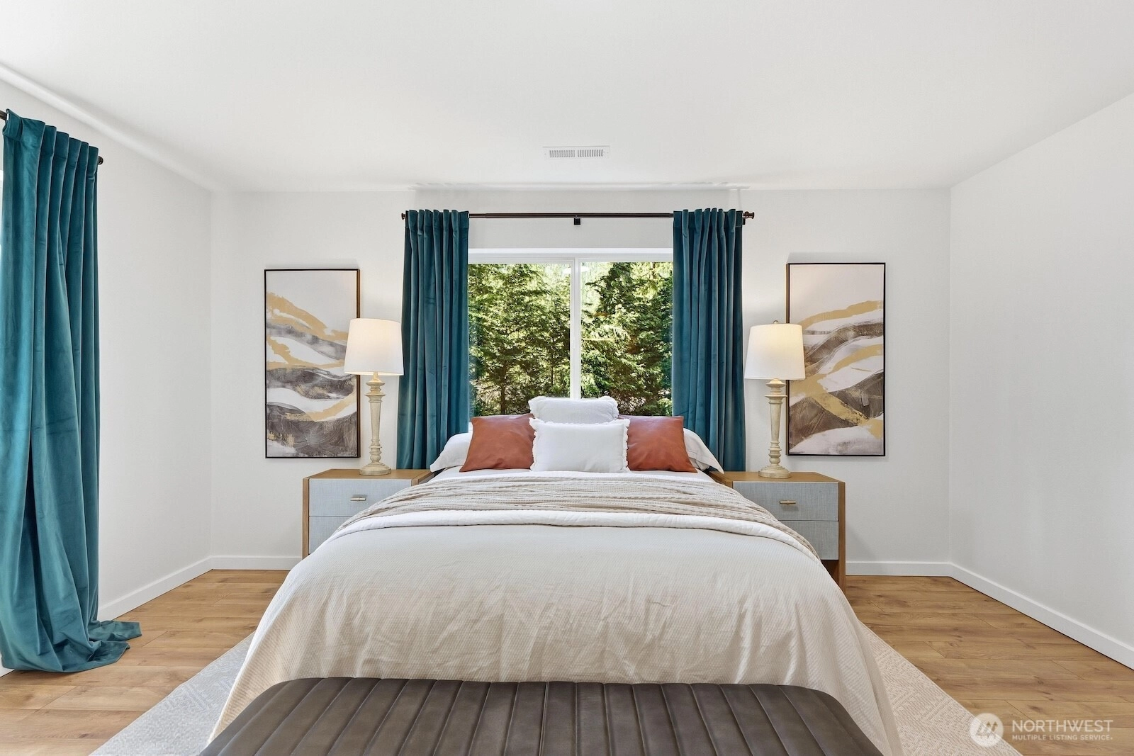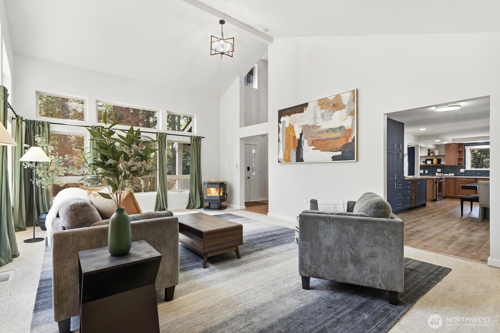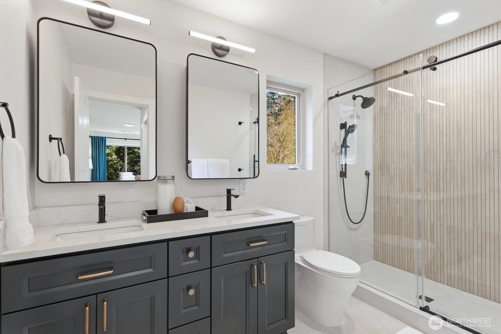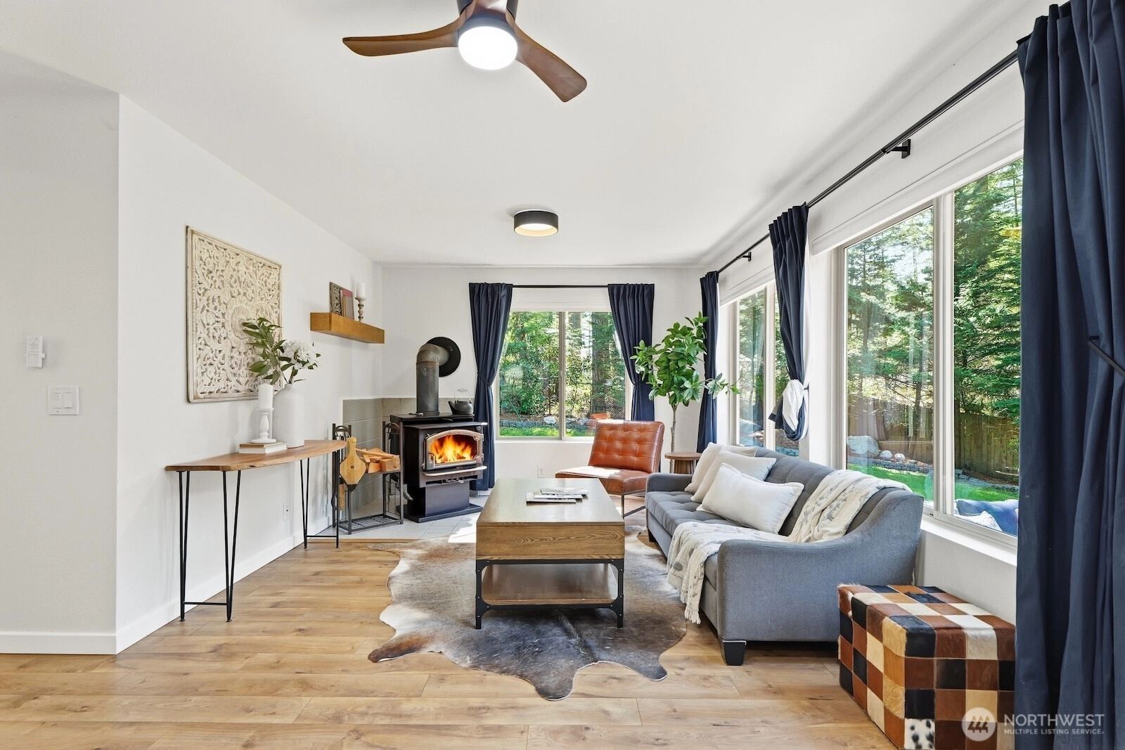 Welcome to your dream home in North Bend's sought-after Wilderness Rim community—ideal for seamless indoor-outdoor living. This updated 3,150 sq ft home sits on a peaceful cul-de-sac & features 5+ bedrooms, 3.5 baths, & a huge, flat, fully fenced backyard with a view of Rattlesnake Ridge. Step inside to an inviting & very spacious layout with vaulted ceilings, a cozy wood stove in the family room, as well as a kitchen equipped with stainless steel appliances, custom wall to ceiling pantry cabinets with a hidden refrigerator & a spacious dining area. Cool All -In-One Washer & Dryer! The upstairs primary suite includes a walk-in closet & beautifully updated en-suite, while the versatile basement offers a separate entrance, 2 bedrooms, an extra nonconforming room and a ¾ bath—perfect for multi-generational living, guests, or possible rental income. Outside enjoy your private park-like oasis w/ an expansive deck, fire pit, RV parking & direct access to greenbelt trails leading to Brewster Lake & the community park. Recent upgrades include new Hardie plank siding & underground gutter drainage ('25), new roof & central A/C ('23), 2 EV chargers & basement expansion ('24), new LVP flooring, updated bathrooms, fresh paint, & light fixtures throughout. Perfect for outdoor enthusiasts, this home is minutes from Rattlesnake Lake, Snoqualmie Valley Trail & Iron Horse State Park. Top-rated Snoqualmie Valley schools & an assumable $796K VA loan @4.75% make this an exceptional find.