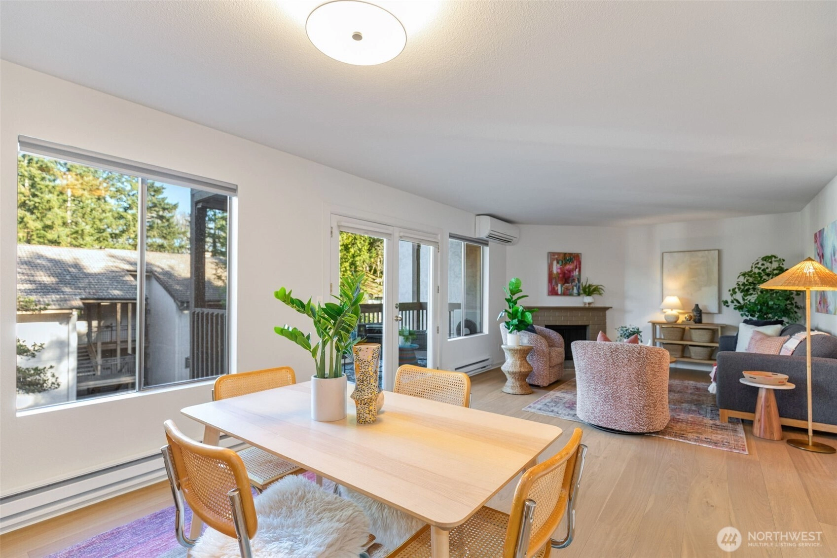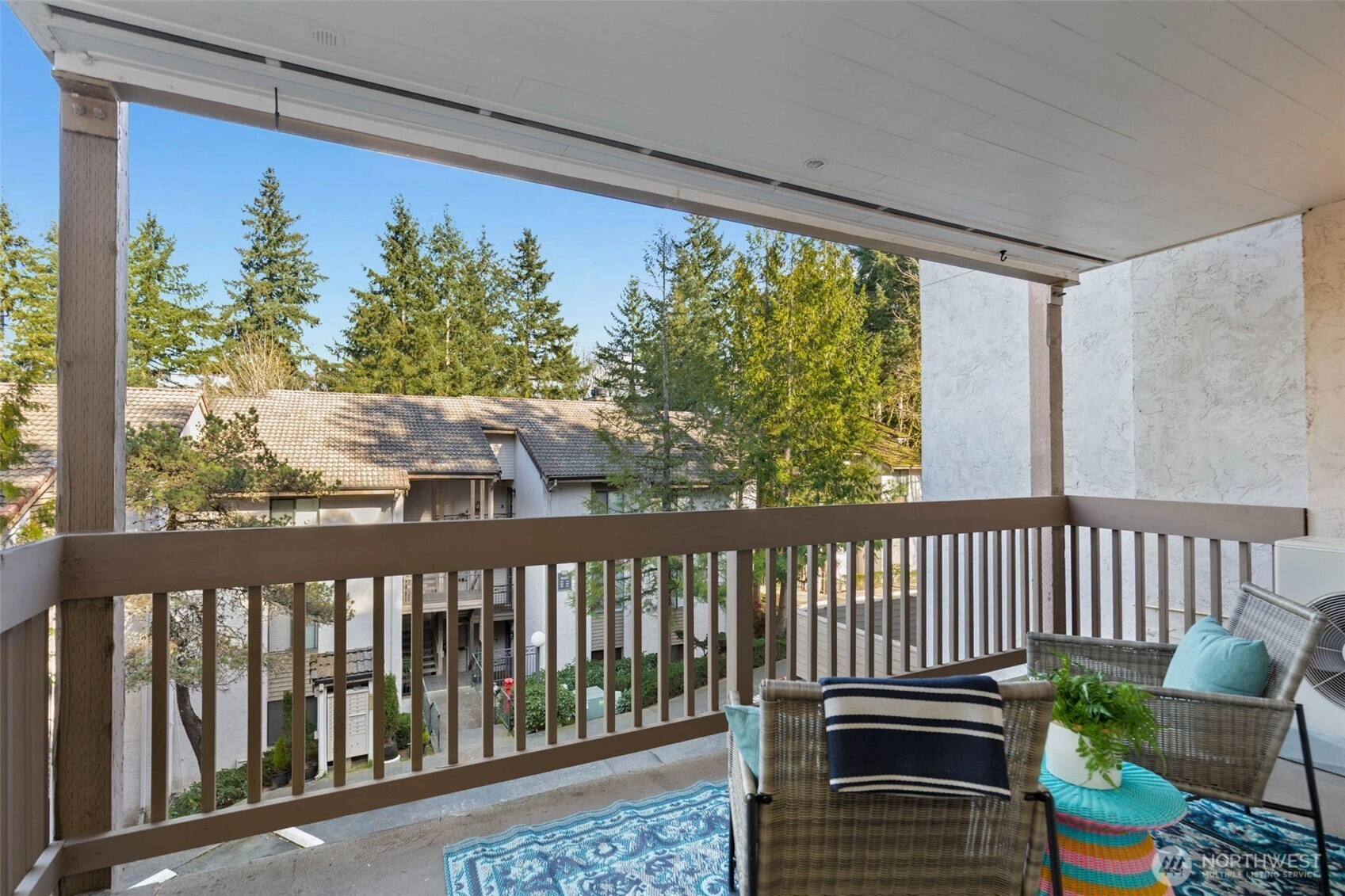 Nestled where the best of the Eastside converges, The Ridge Bellevue is highly sought after and it is easy to see why. This bright, move-in ready 2 bed / 2 bath has been done right with new hardwood floors, new wool carpet, fresh paint, all new stainless appliances, and a ductless mini-split for those warm summer days. The wood-burning fireplace takes care of the rest of the year. A private covered deck looks out over a canopy of Pacific Northwest firs, the kind of morning coffee spot that makes you forget you are minutes from 405, 520, Bellevue Square, and every major Eastside campus. Two parking spaces mean life stays easy with a secured garage and dedicated storage for your gear and a second reserved spot right outside your door for daily use. Community pool and cabana, no rental cap, top-rated Bellevue Schools. A rare opportunity for owner-occupancy and investment alike