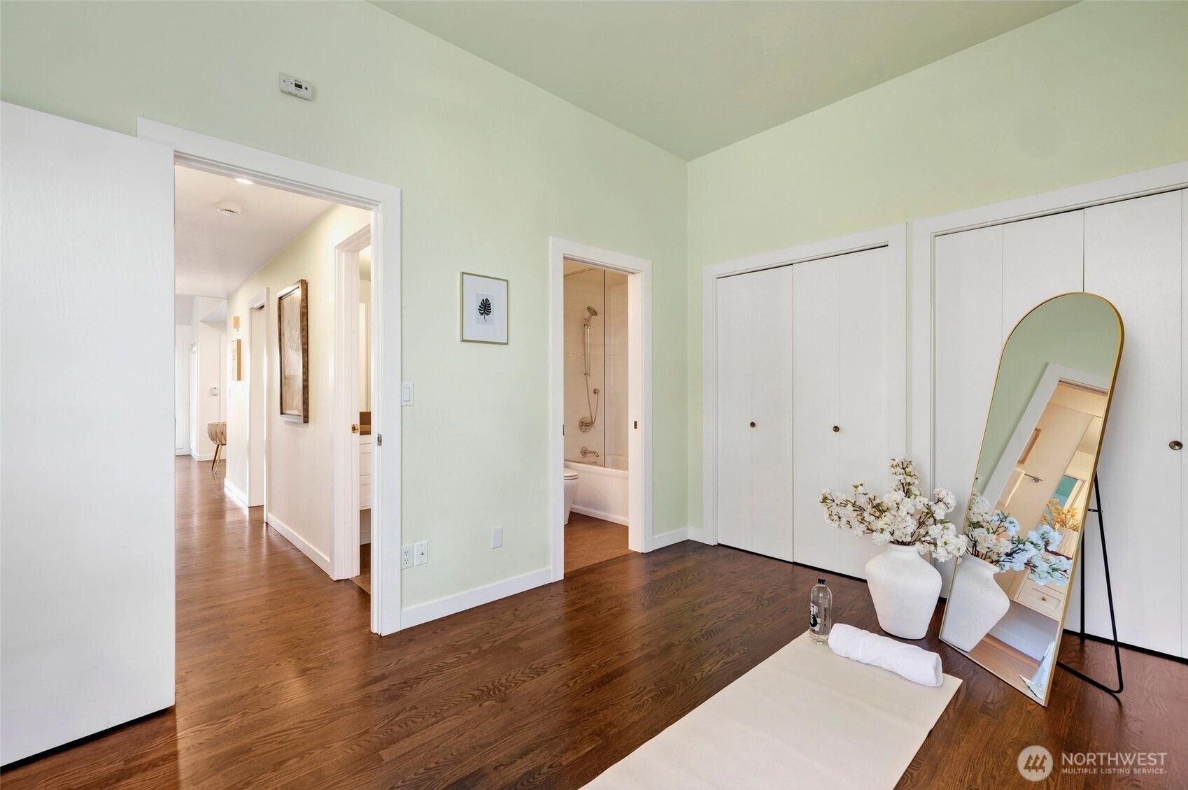 Experience a lock-and-leave lifestyle in this sun-drenched Craftsman townhouse, nestled within the serene Inglebrook community. Sharing only a garage wall, this 2BR/2BA residence lives like a single-family home, offering rare privacy and a sprawling floor plan just 12 blocks from Microsoft. Stepping inside, you are greeted by an open, airy layout featuring soaring vaulted ceilings, elegant oak hardwood floors throughout, and a large living room anchored by a cozy gas fireplace. Renovated kitchen boasting granite countertops, hardwood cabinetry, and a spacious dining area. A main-floor bedroom with a Murphy bed sits next to a full bathroom, easily converting into a gym or home office. The second floor is dedicated to the primary suite, featuring a steam shower retreat. Both bathrooms are beautifully updated with contemporary floating cabinets, sleek quartz counters and designer glass shower doors. HOA dues covers everything from siding replacement, exterior painting, roof/skylight/gutter replacement (2019) to landscaping, driveway upkeep, & master insurance w/earthquake coverage. Key highlights include fresh interior paint, central A/C, a new water heater (2026), and a 2-car garage with 2 driveway spaces plus 3 guest parking nearby. Step outside to a generous private backyard—a rare find that is perfect for pets, gardening, and outdoor enjoyment. Amenity includes club house, athletic court and gym. Mins to Crossroad mall and Interlake HS, and easy access to 520 and I-405.