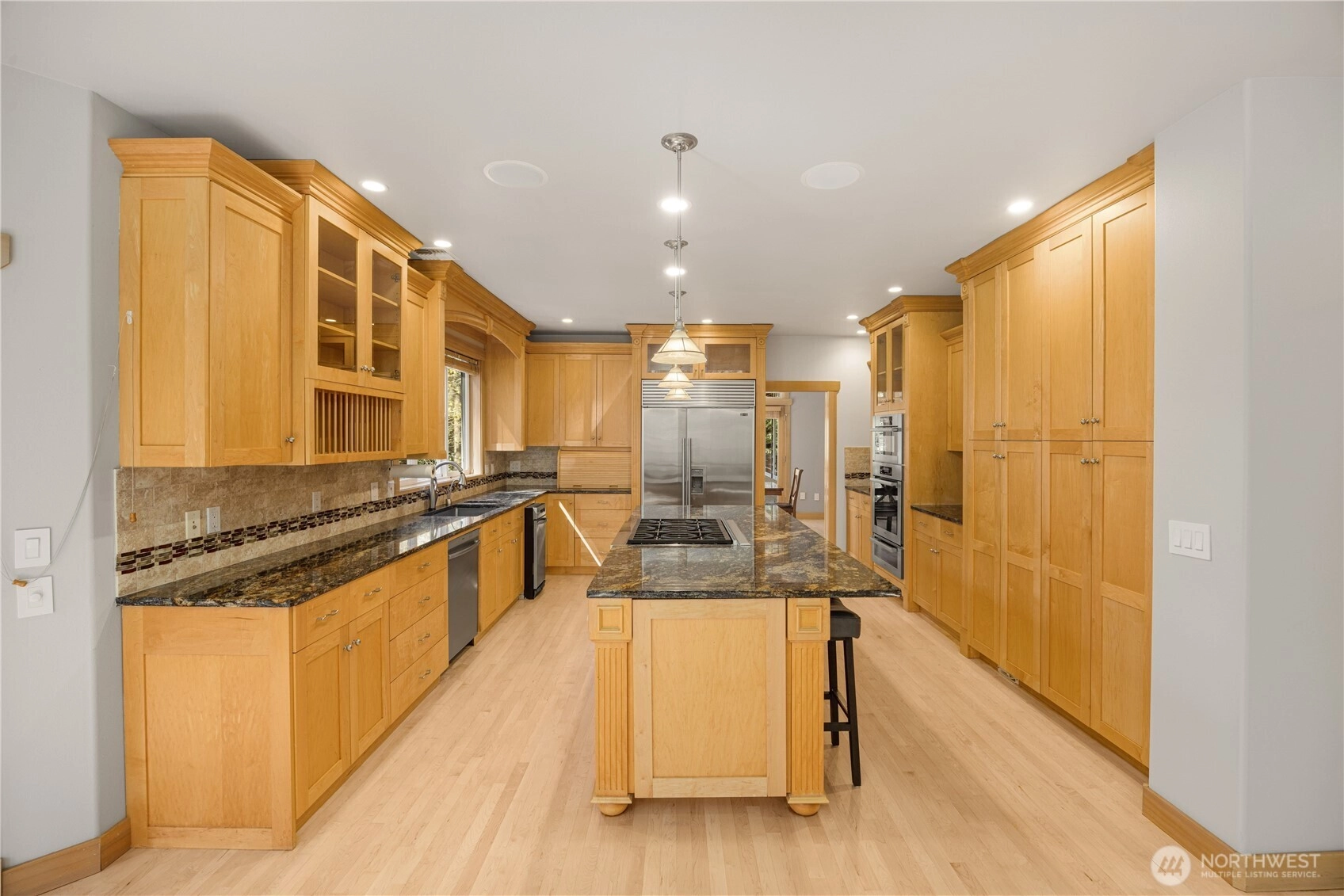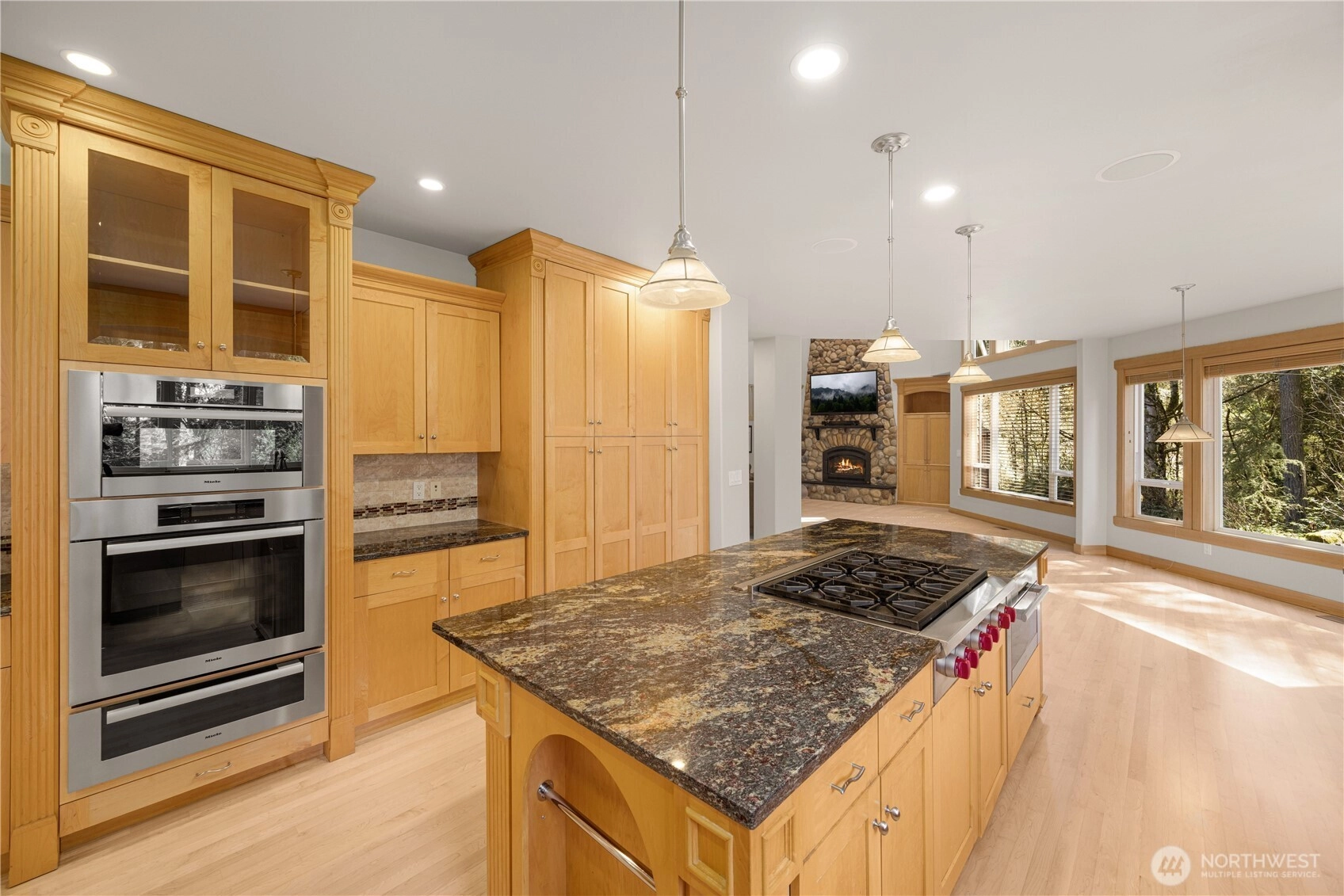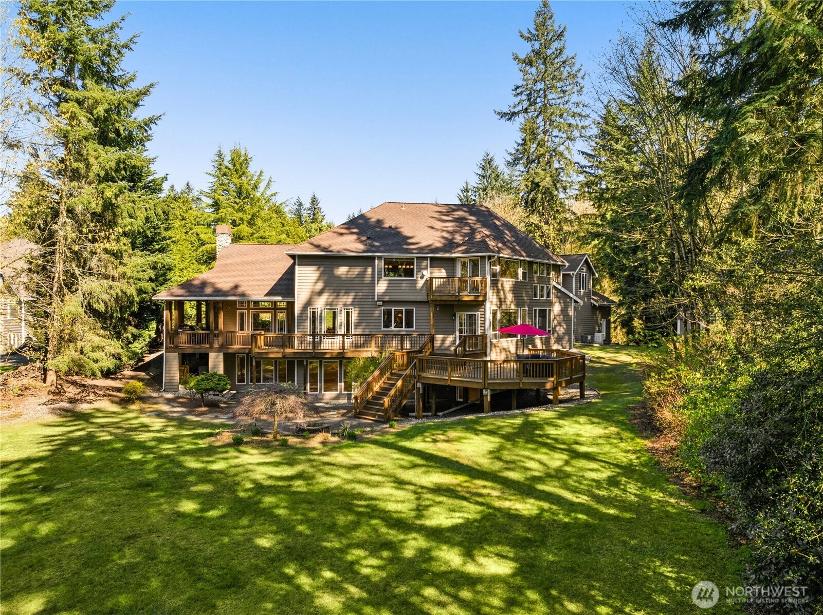 Nestled on a private cul-de-sac, this exceptional 2.44-acre estate offers a rare blend of luxury, craftsmanship, and everyday functionality. A dramatic grand entry welcomes you into a thoughtfully designed home featuring 5 bdrms-5.5 bath,a formal office, multiple living areas, and expansive bonus spaces—including two primary suites and a 900+ bottle wine cellar.Timeless elegance is showcased throughout with rich millwork, custom built-ins, hardwood floors, wood-wrapped windows, dual staircases, and three gas fireplaces.The chef’s kitchen is perfectly suited for both daily living and effortless entertaining, featuring a six-burner gas stove and double oven, Sub-Zero refrigerator, stainless steel appliances, with plenty of prep space. Multiple living areas flow seamlessly to a wrap-around deck, creating an ideal setting for indoor-outdoor living. The grand primary suite serves as a private retreat, complete with a cozy sitting area and two built-in bookcases that open to the lower level for a unique architectural touch. Expansive bonus rooms provide endless flexibility for a media room, fitness space, playroom, or studio. Designed for comfort and efficiency, the home includes two furnaces, two hot water tanks, and a 15kW gas generator (2025).The beautifully maintained grounds are equally impressive, featuring mature landscaping, fruit trees, and a native growth.This is a property where luxury, space, and tranquility come together—offering far more than can be captured in words.