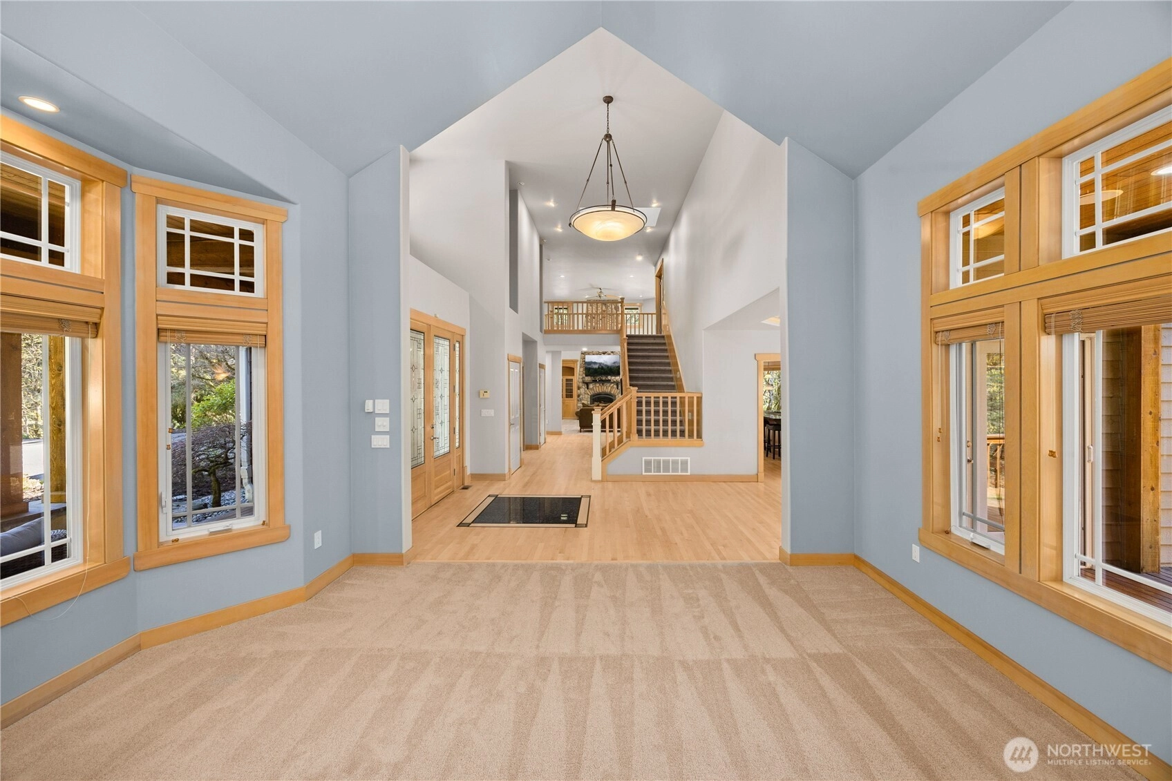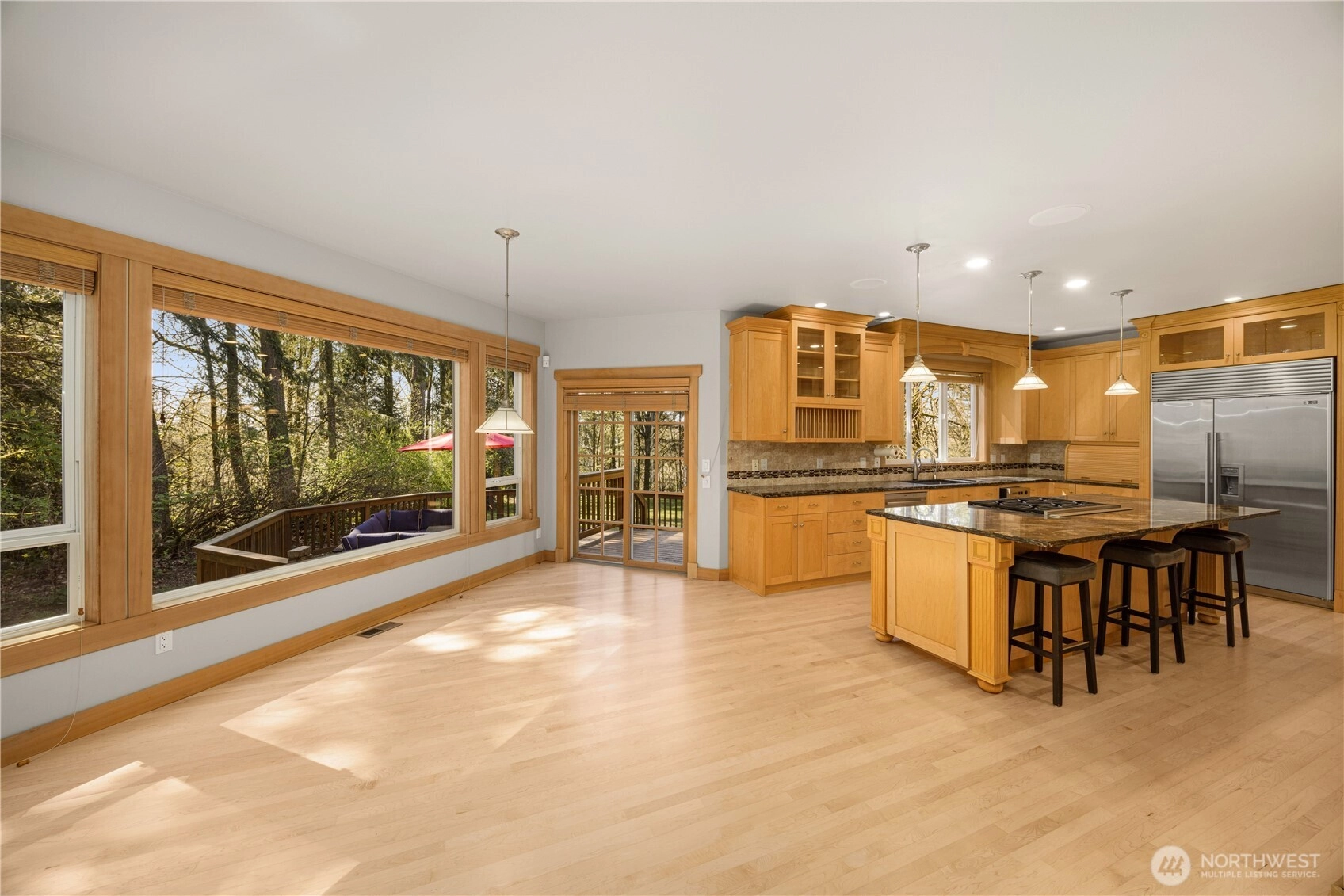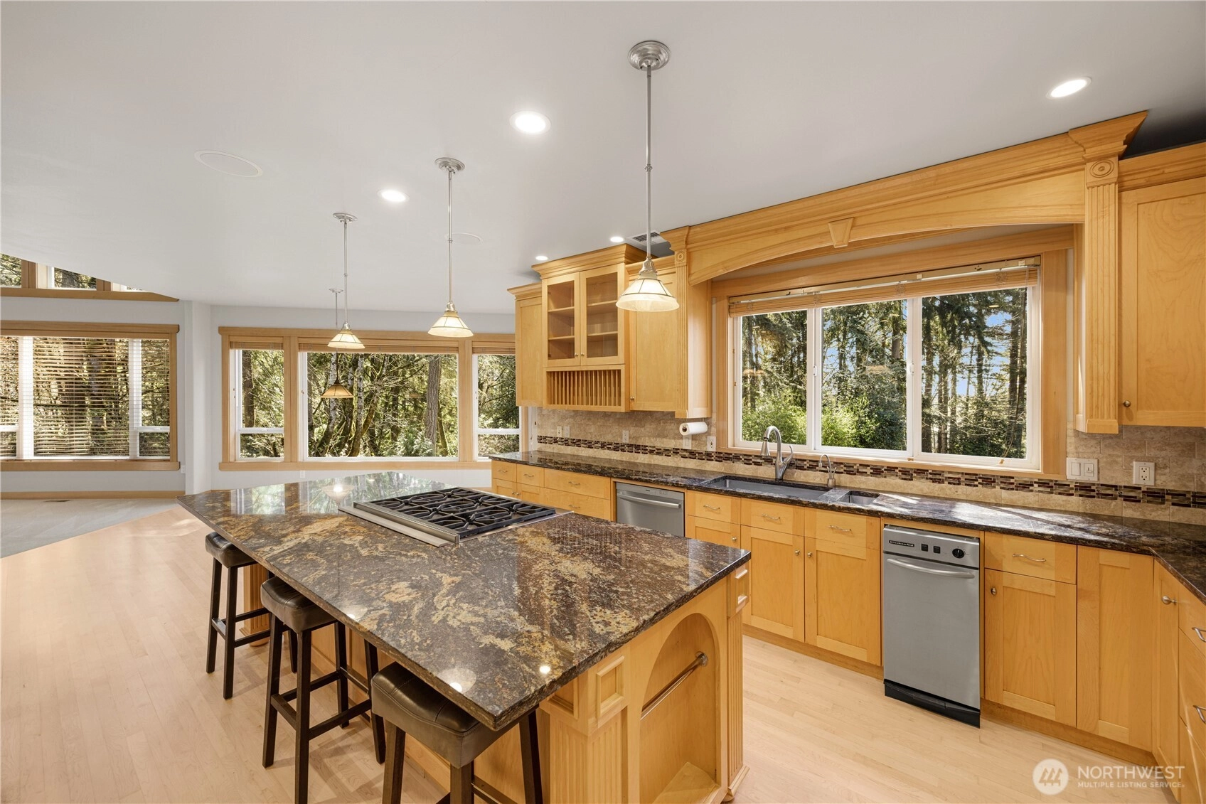 Nestled on a private cul-de-sac, this exceptional 2.44-acre estate offers a rare blend of luxury, craftsmanship, and everyday functionality. A dramatic grand entry welcomes you into a thoughtfully designed home featuring 5 bdrms-5.5 bath,a formal office, multiple living areas, and expansive bonus spaces—including two primary suites and a 900+ bottle wine cellar.Timeless elegance is showcased throughout with rich millwork, custom built-ins, hardwood floors, wood-wrapped windows, dual staircases, and three gas fireplaces.The chef’s kitchen is perfectly suited for both daily living and effortless entertaining, featuring a six-burner gas stove and double oven, Sub-Zero refrigerator, stainless steel appliances, with plenty of prep space. Multiple living areas flow seamlessly to a wrap-around deck, creating an ideal setting for indoor-outdoor living. The grand primary suite serves as a private retreat, complete with a cozy sitting area and two built-in bookcases that open to the lower level for a unique architectural touch. Expansive bonus rooms provide endless flexibility for a media room, fitness space, playroom, or studio. Designed for comfort and efficiency, the home includes two furnaces, two hot water tanks, and a 15kW gas generator (2025).The beautifully maintained grounds are equally impressive, featuring mature landscaping, fruit trees, and a native growth.This is a property where luxury, space, and tranquility come together—offering far more than can be captured in words.