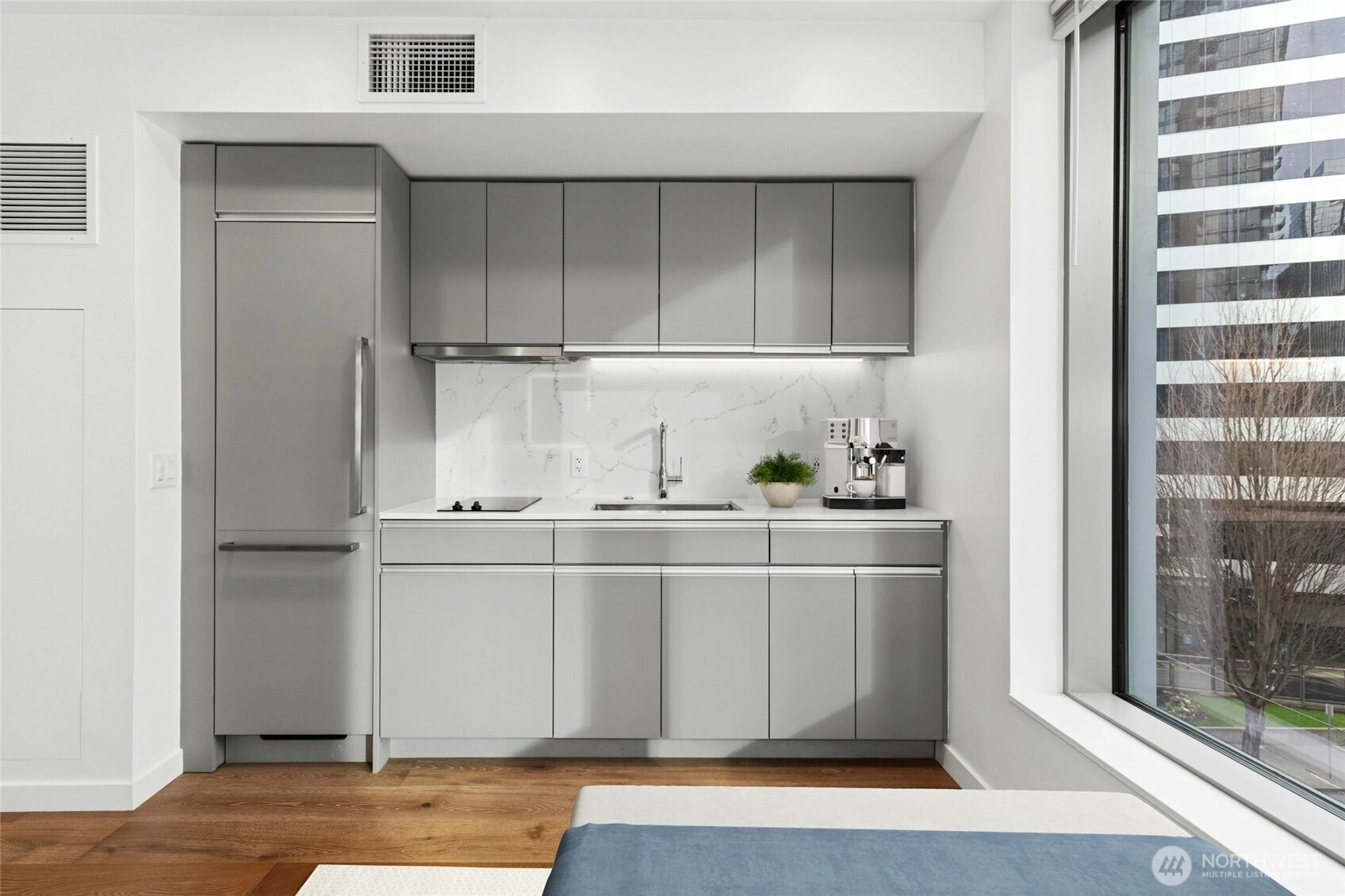 Live at the center of it all in this bright, modern studio at The Nexus, featuring breathtaking 180° views of downtown Seattle and abundant natural light from a large picture window. The smart, stylish layout offers an in-unit washer/dryer, spa-inspired bath with rain shower, and a spacious walk-in closet. Pet-friendly living with a private dog run and wash station. Enjoy three floors of resort-style amenities, rooftop Sky Club, concierge, fitness center, lounges, and entertainment spaces—just steps from dining, shopping, transit, and nightlife with a Walk Score of 98, at the heart of Seattle.