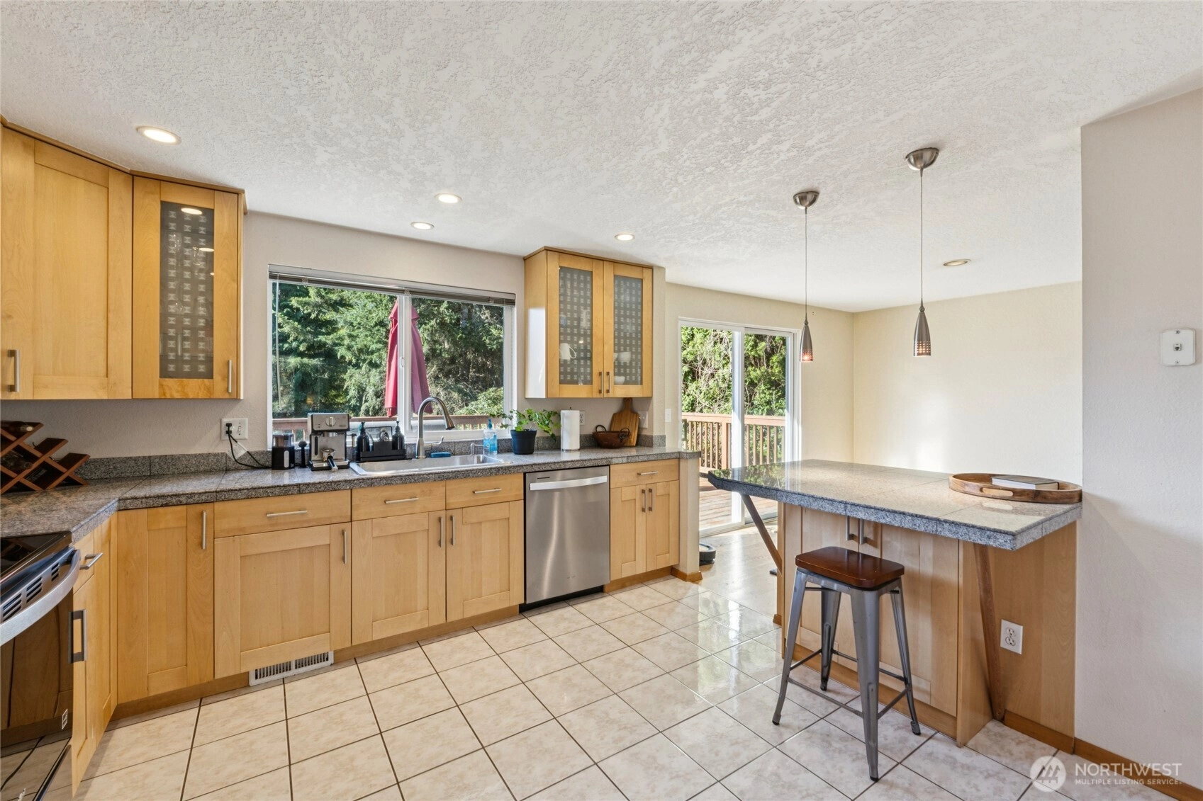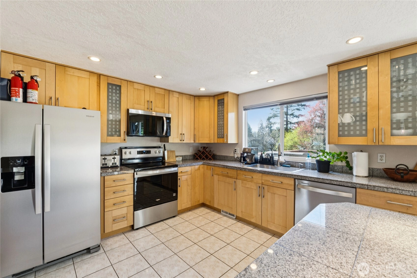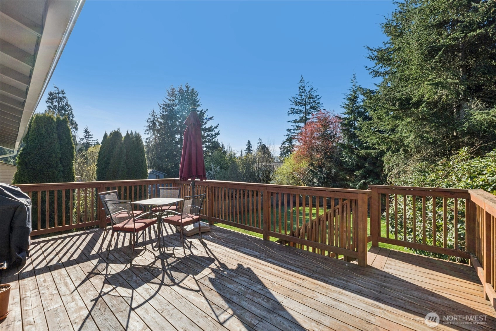 Move-in ready gem on a quiet cul-de-sac in the desirable Shoreline School District! This spacious 2,260 sq. ft. home offers comfortable living with thoughtful updates and excellent flow. The main floor features beautiful hardwood floors throughout the expansive great room, anchored by a cozy gas fireplace. The bright kitchen boasts matching stainless steel appliances, generous cabinetry and counter space, plus a convenient bar eating area. A full formal dining room opens through sliders to a large rear deck—perfect for indoor-outdoor entertaining. Upstairs, the primary suite includes a 3/4 bath, complemented by two additional generously sized bedrooms and 3/4 guest bath. The lower level is an entertainer’s dream with a large rec room featuring a warm wood-burning fireplace, 4th bedroom, a convenient full laundry room, and an additional 3/4 bath. Outside, you’ll love the huge, level .21-acre fully fenced lot—offering with mature privacy landscaping, plenty of room to play, summer BBQs, and gardening. Additional highlights include a 2-car garage and ample driveway parking. Just steps from a highly rated K-8 school and nestled in one of Lake Forest Park’s most sought-after neighborhoods—this home truly has it all!