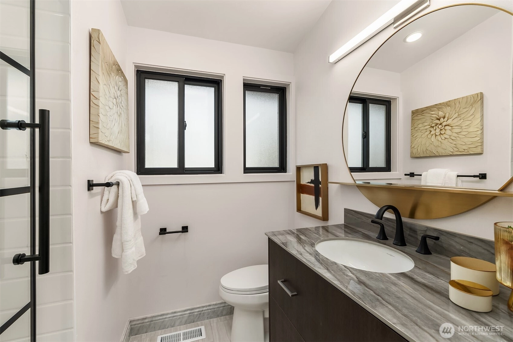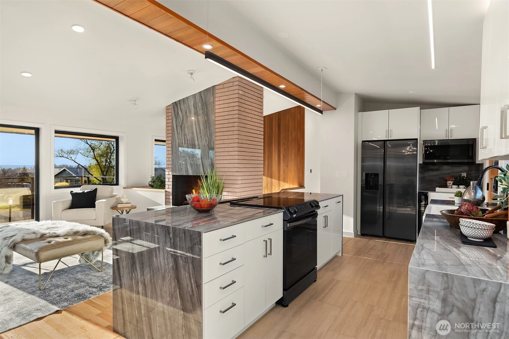 Perched at the top of Woodridge Hill, this fully renovated west-facing home offers sweeping panoramic views of Downtown Bellevue and the Seattle skyline. Rare for the neighborhood, the home blends timeless Woodridge appeal with a bright, open kitchen and great room concept designed for modern living, effortless entertaining, and everyday connection. Large windows draw in natural light and frame the views, creating a living experience that feels both elevated and inviting. With 4 bedrooms, 2.75 baths, and versatile lower-level flex space ideal for guests, a bonus room, home office, or private retreat, the layout offers exceptional flexibility. The expansive backyard backs directly to a school park, adding privacy, openness, and remarkable room to play, gather, and enjoy the outdoors. Just steps to Woodridge Elementary and close to neighborhood pools, Norwood Park, and trails, this is a rare turnkey opportunity in one of Bellevue’s most sought-after neighborhoods with the space, updates, and setting buyers are looking for.