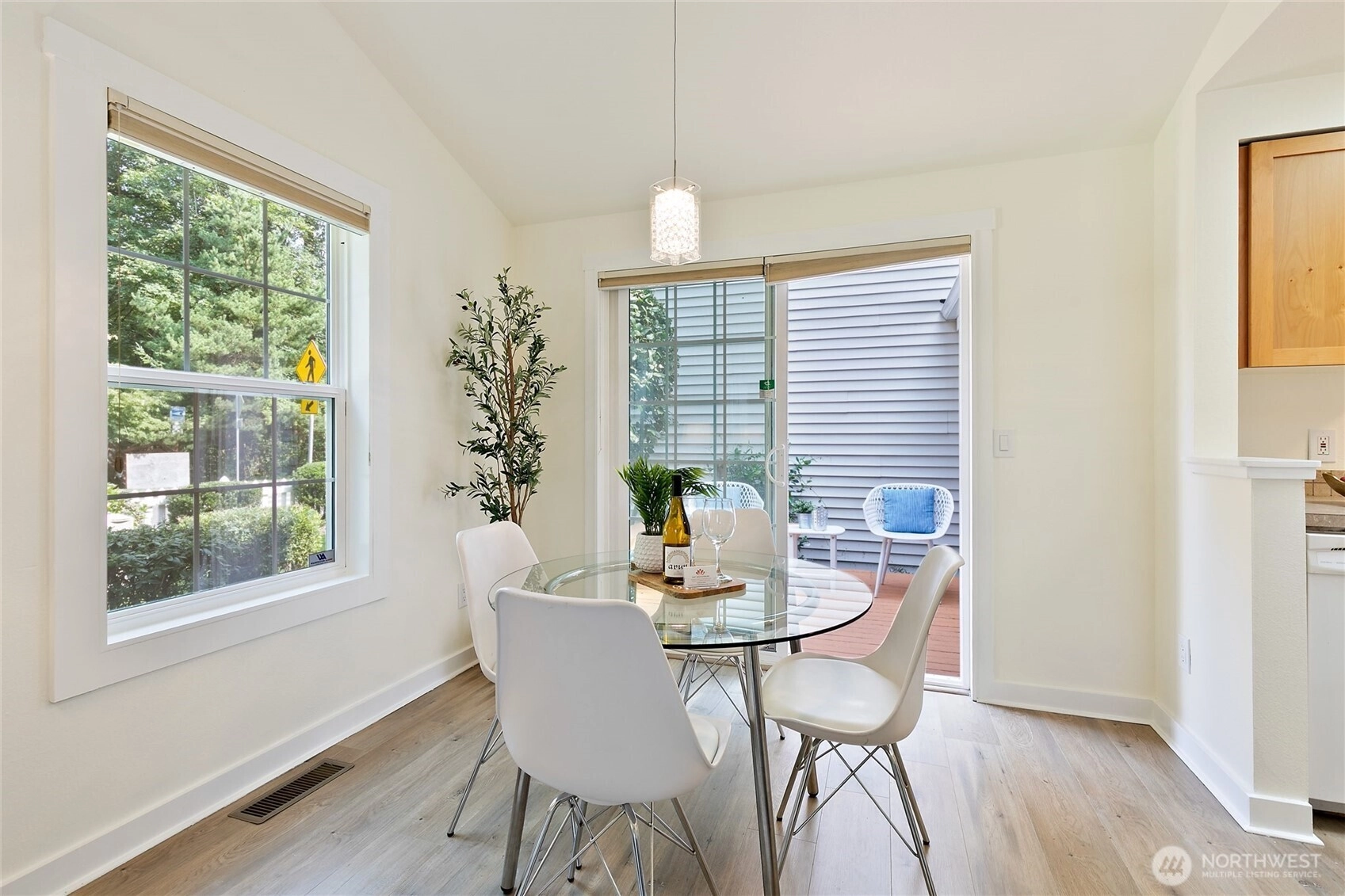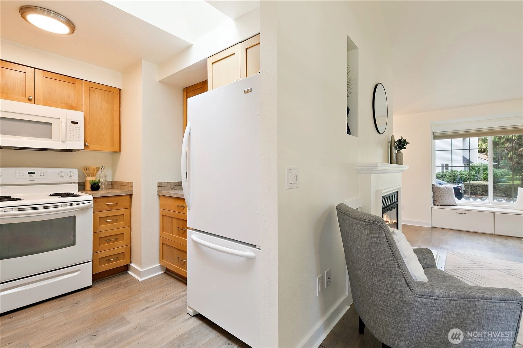 Tucked into a bright corner lot in Kirkland’s desirable Springbrook community, this delightful cottage-style home blends comfort with simplicity. Sun-filled interiors showcase laminate wood floors and a welcoming gas fireplace, seamlessly connecting the living area to the kitchen and dining space—ideal for both daily living and entertaining. Two cozy bedrooms offer restful retreats, while the deck and fully fenced yard provide a serene setting for outdoor relaxation. An attached garage plus additional parking enhances everyday convenience. Springbrook stands out with low HOA dues, as the homes are deeded as single-family residences. Enjoy easy, low-maintenance living just minutes from Juanita Village, nearby beaches and parks, Totem Lake shopping, Juanita High School, Evergreen Hospital, and quick access to I-405.