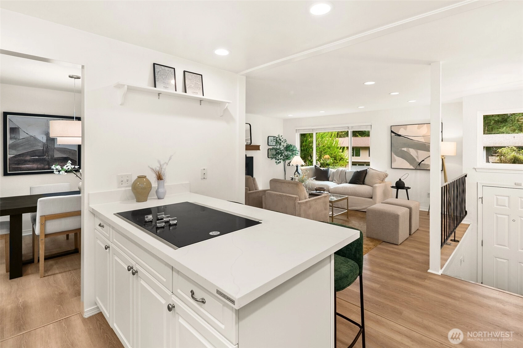 Welcome to 19044 NE 165th Place: a stunning 3 bedroom (+bonus room), 3 bath Woodinville home situated on an expansive corner lot, just steps away from the shores of Cottage Lake. A large circular drive beckons you into a refreshed interior, bathed in natural light from large picture windows: open living room, dining room & kitchen blend seamlessly together across newer wide-plank flooring, reaching throughout the 3 spacious bedrooms including a primary bedroom w/en-suite bath. Downstairs boasts an impressive, oversized 2nd living room, 3rd bathroom, large laundry room, +bonus room (office/den/gym) & access to the 2-car garage. Recent renovations include quartz countertops, updated appliances, new interior lighting, shaker-style interior doors, remodeled guest & primary bath, new front porch & full exterior repaint! Enjoy sunny days in the fully fenced back yard with plenty of room to play & space for countless toys (gated access for RV/boat parking + add’l storage shed) & warm evenings enjoying dinner & drinks on the back deck. Exclusive deeded membership unlocks Cottage Lake Beach Club’s sandy beachfront, private dock, pickle ball & basketball courts, and cabanas. Conveniently located blocks from shopping, restaurants & wineries, library, schools & parks. Preinspection is available. Award-winning Northshore School District! Welcome Home!